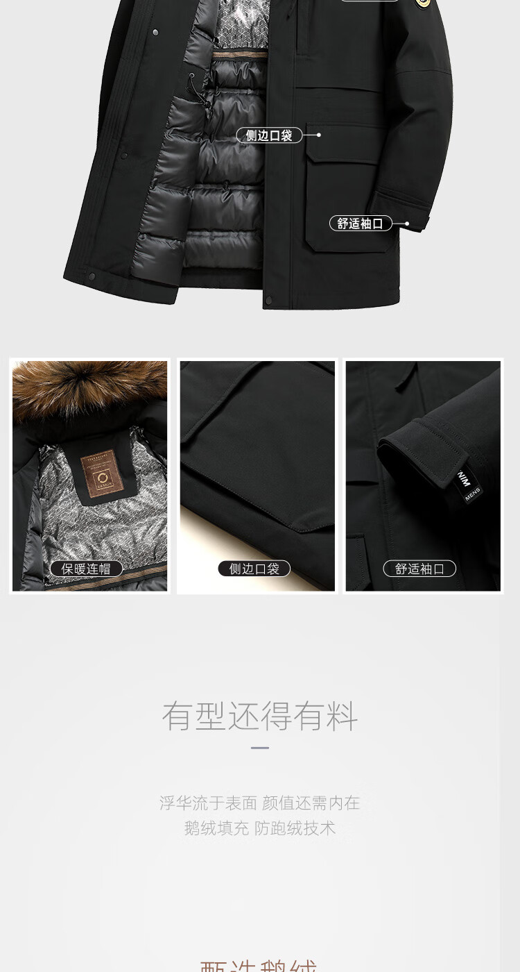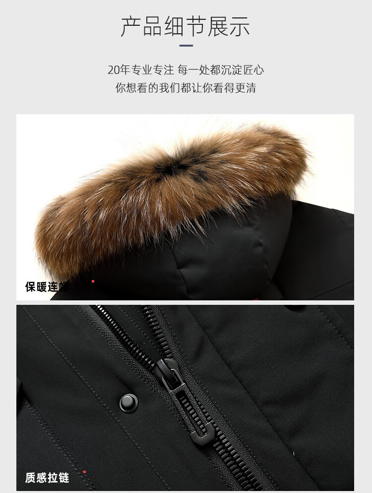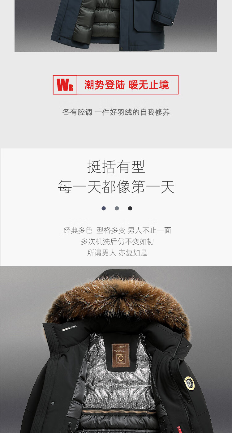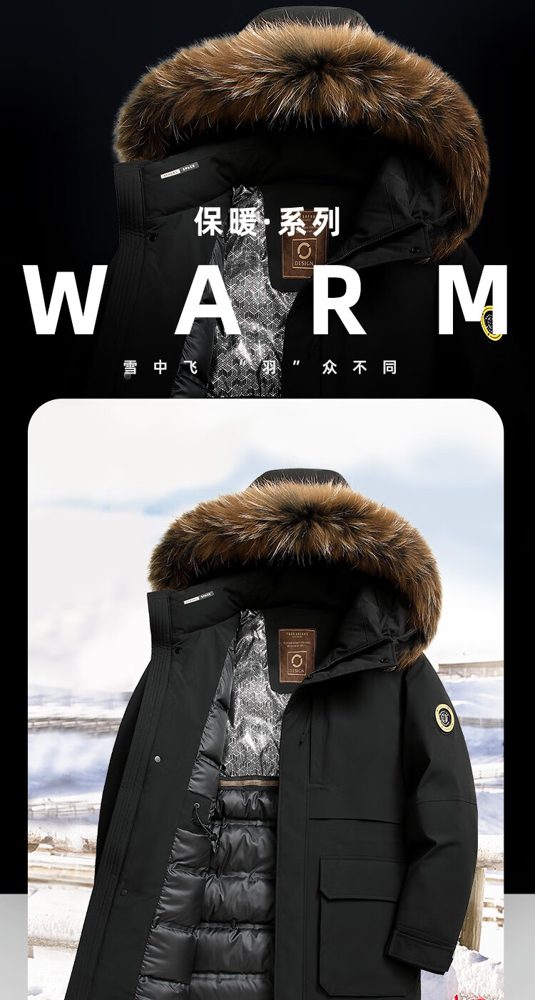 雪中飞【鹅绒系列】男士中长款连帽羽绒服时尚大毛领保暖防寒羽绒外套男
