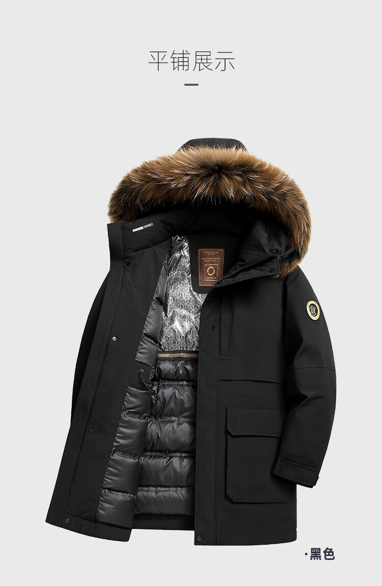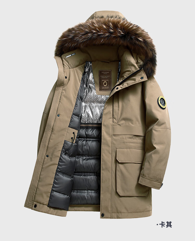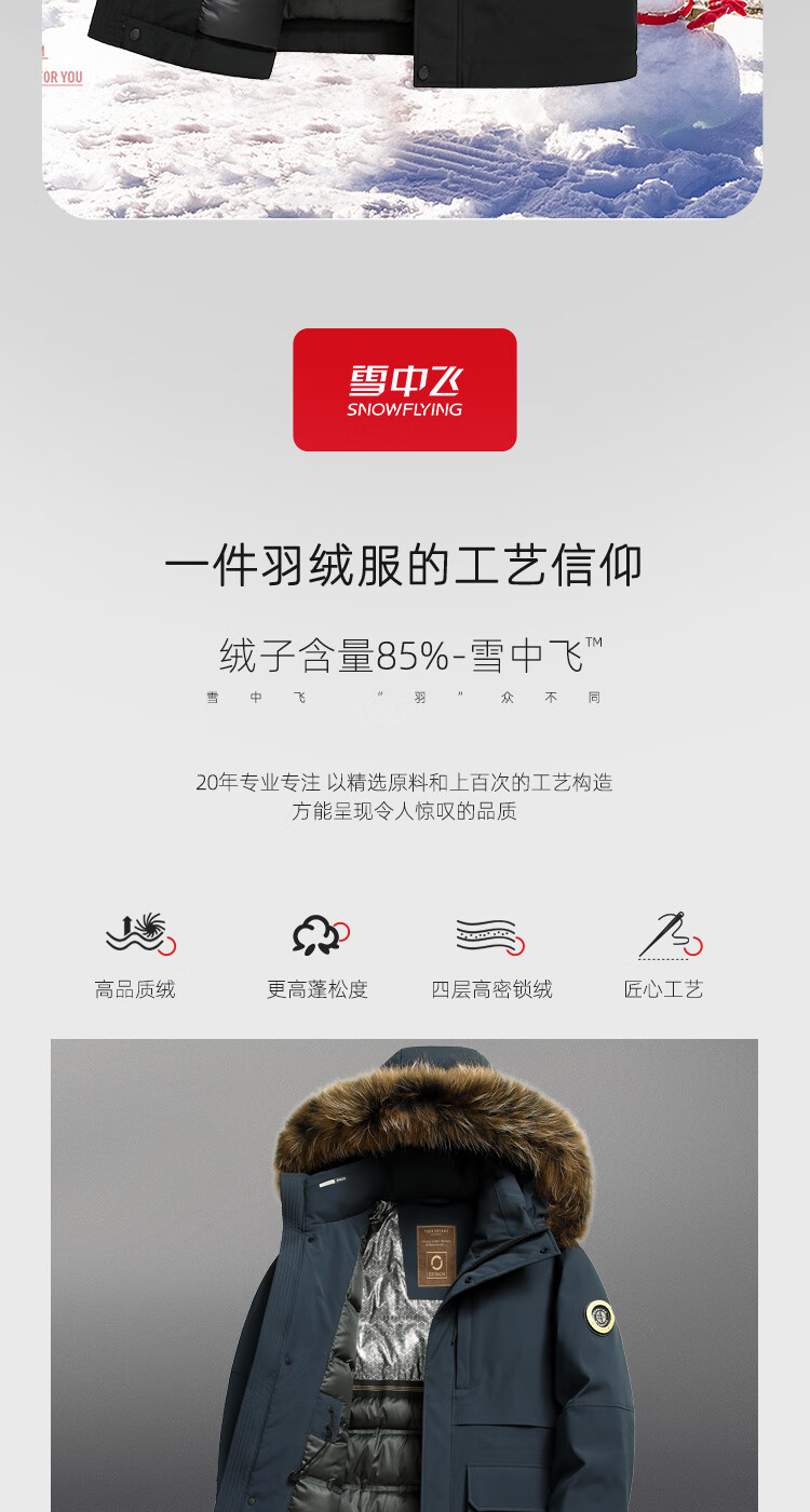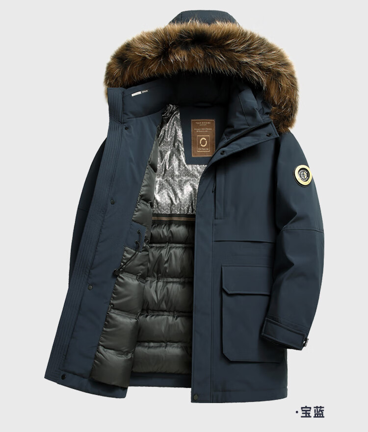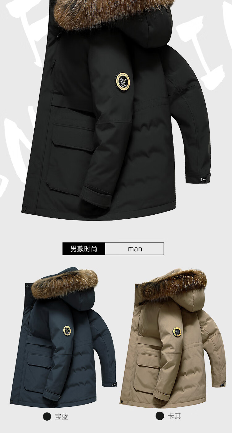 雪中飞【鹅绒系列】男士中长款连帽羽绒服时尚大毛领保暖防寒羽绒外套男