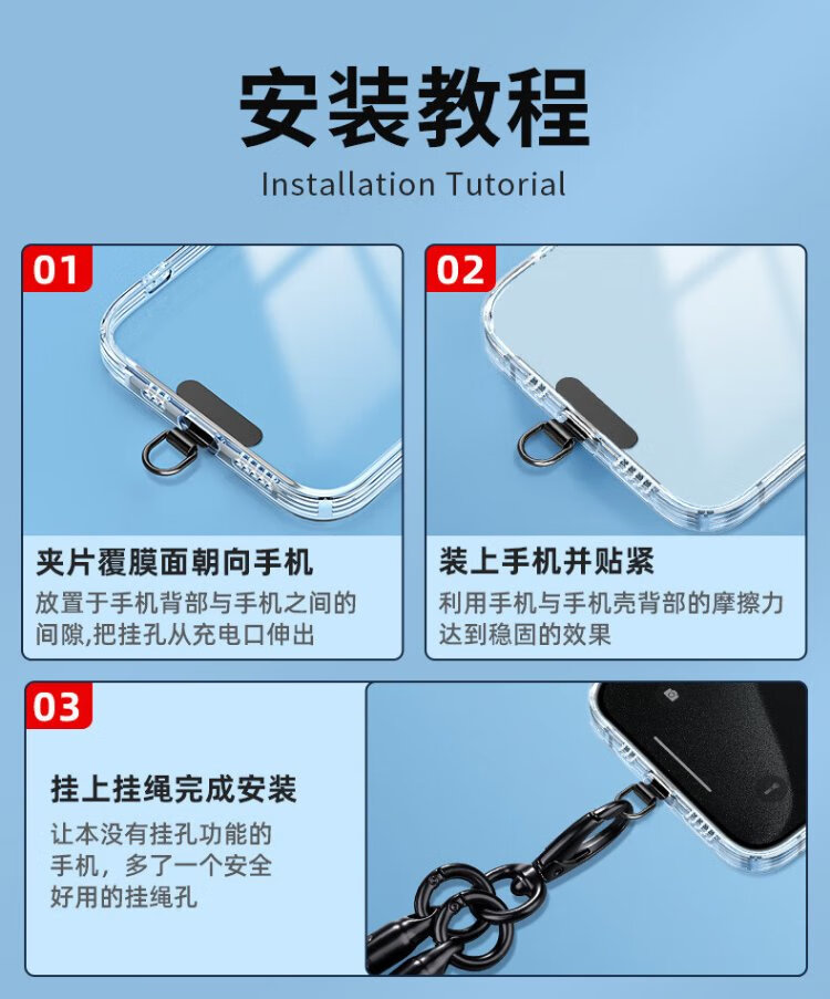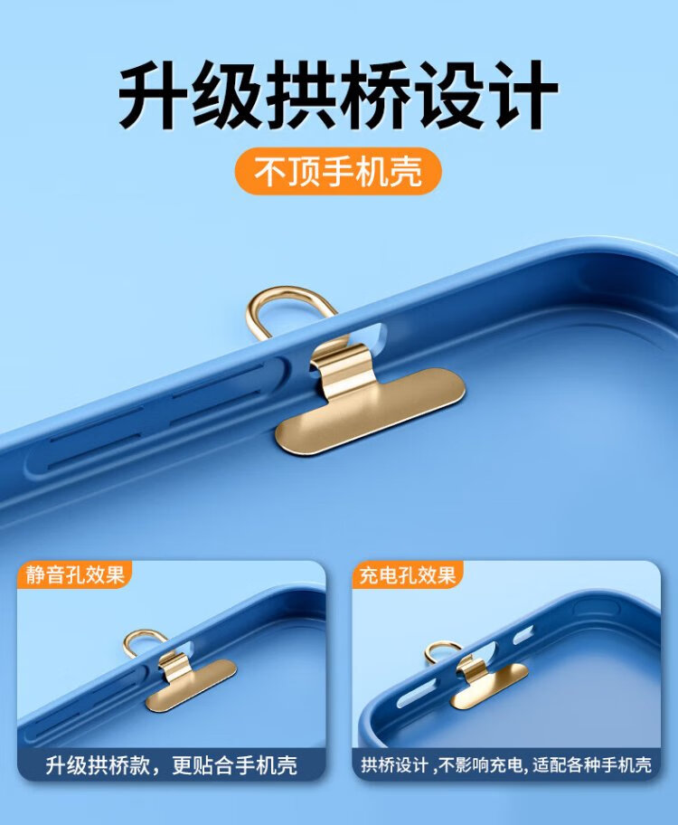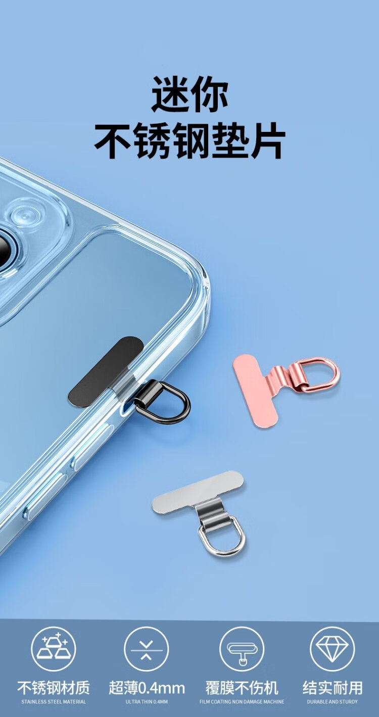 Beiyipin mobile phone lanyard clip universal mini MINI stainless steel metal mobile phone case charging port gasket mini silent hole clip ultra-thin back patch