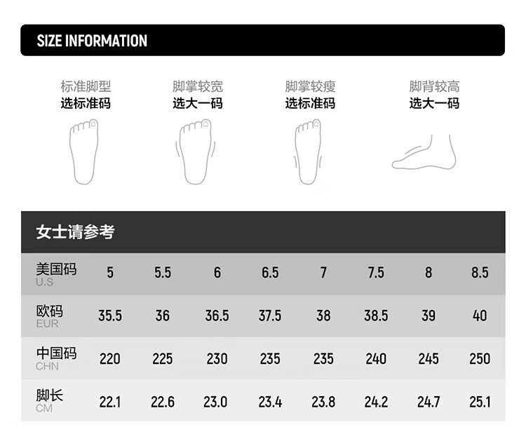 China (cm) 36 - 37 38 - 39 40 - 42 43 - 44 45 - 47