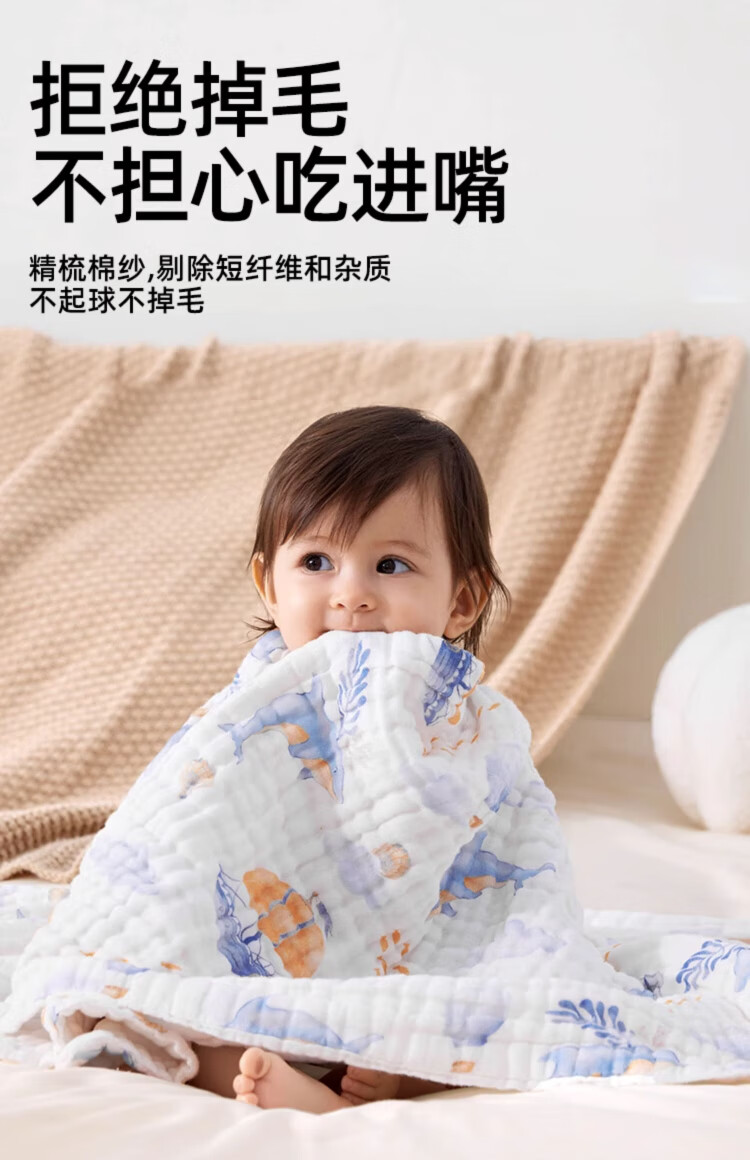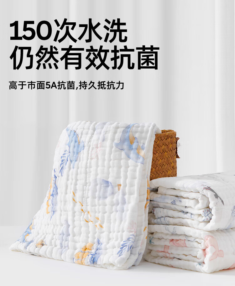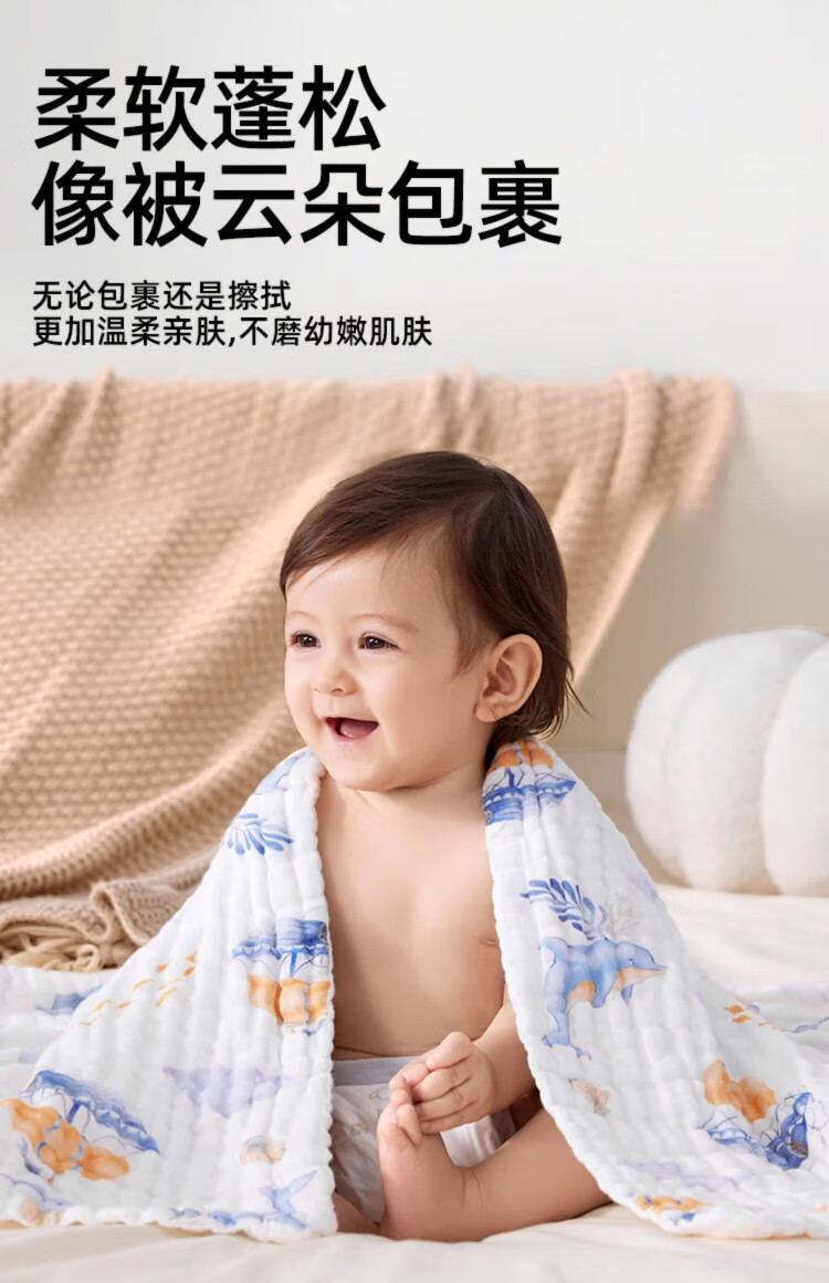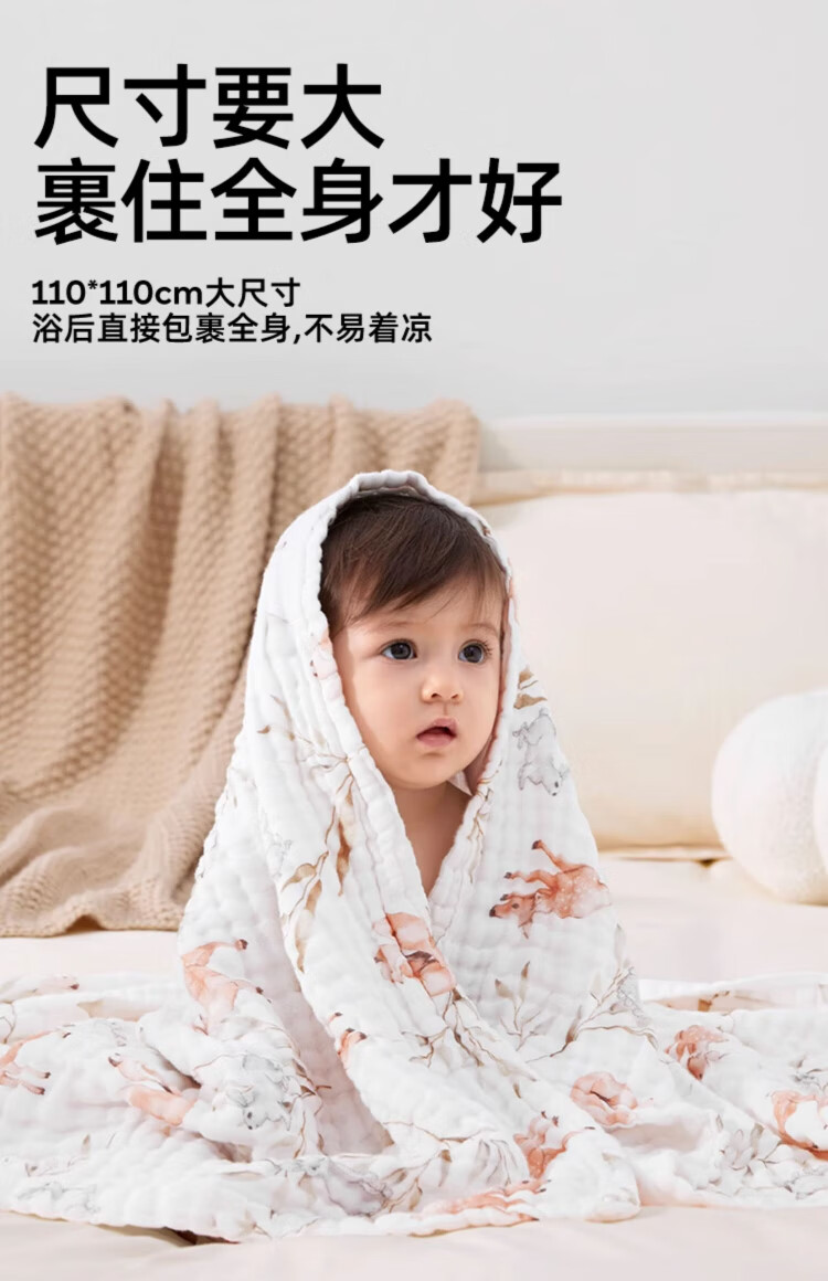 JOYNCLEON children's bath towel pure cotton breathable gauze bath towel newborn baby baby bath towel green 110*110cm