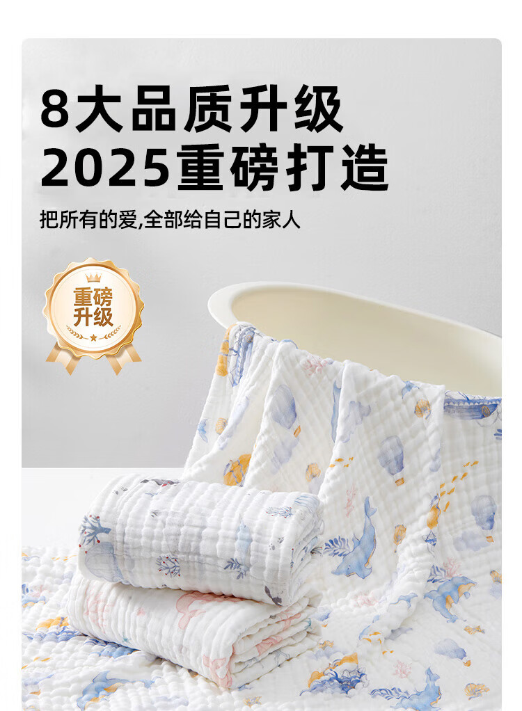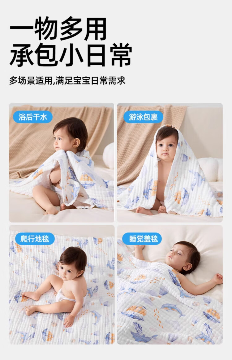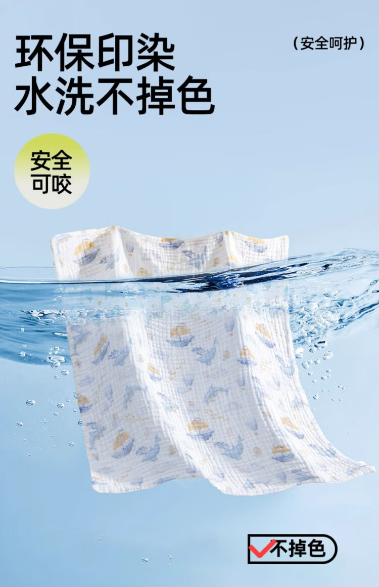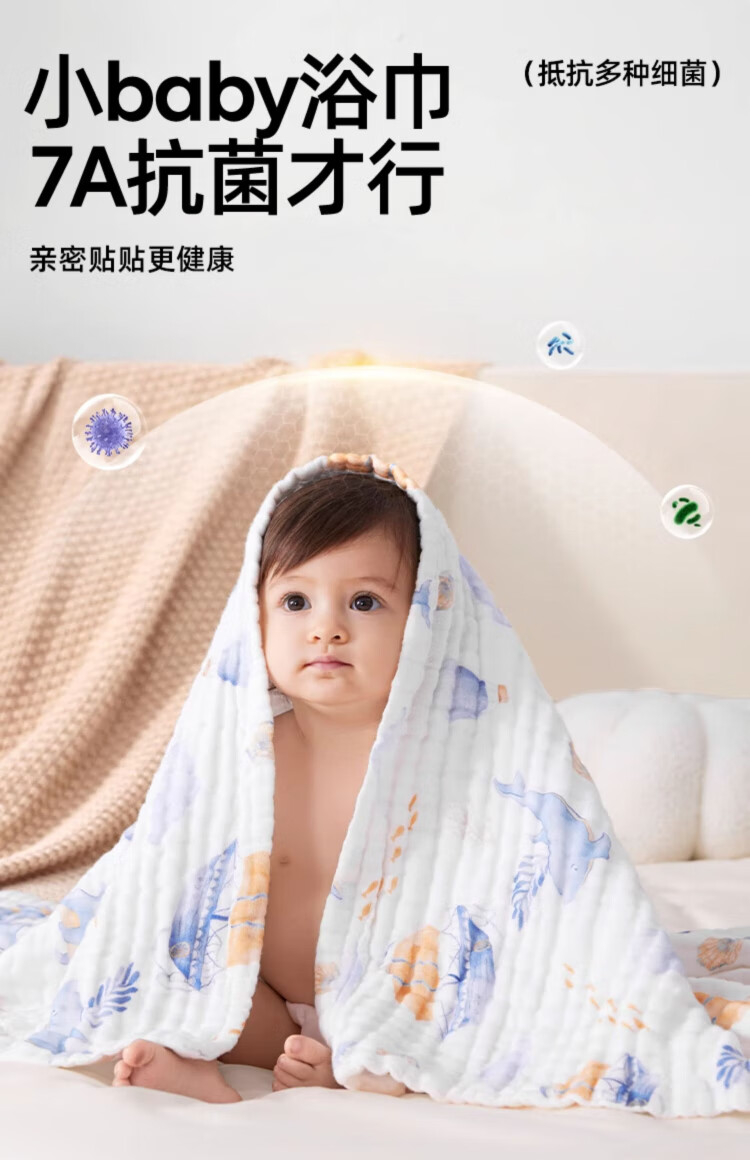 JOYNCLEON children's bath towel pure cotton breathable gauze bath towel newborn baby baby bath towel green 110*110cm