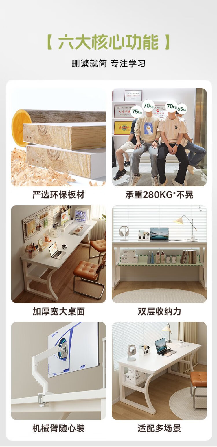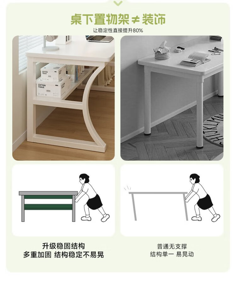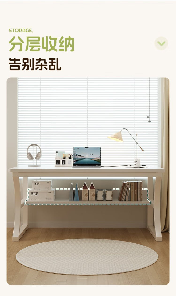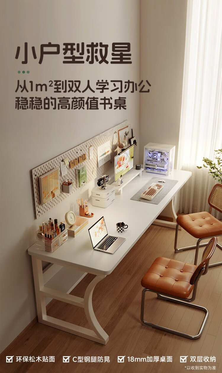 Mansfield solid wood desk computer desk desktop double girls home office study table bedroom cream style with storage
