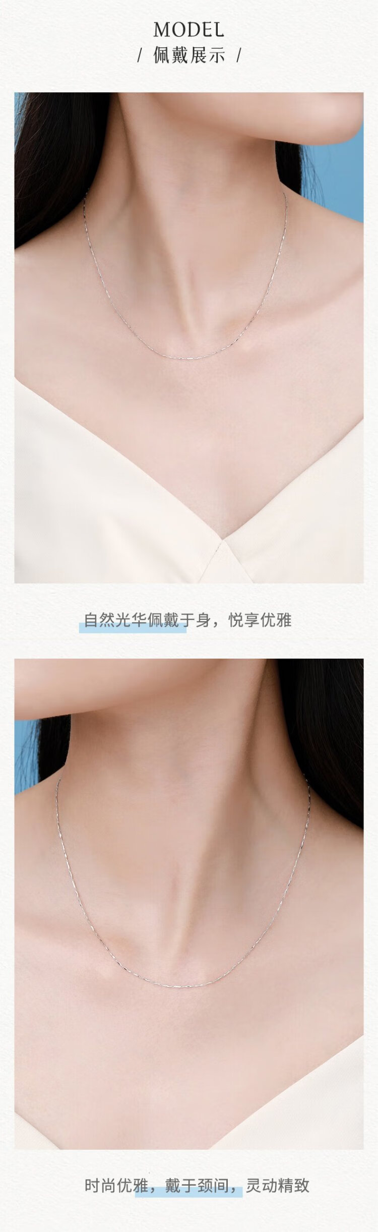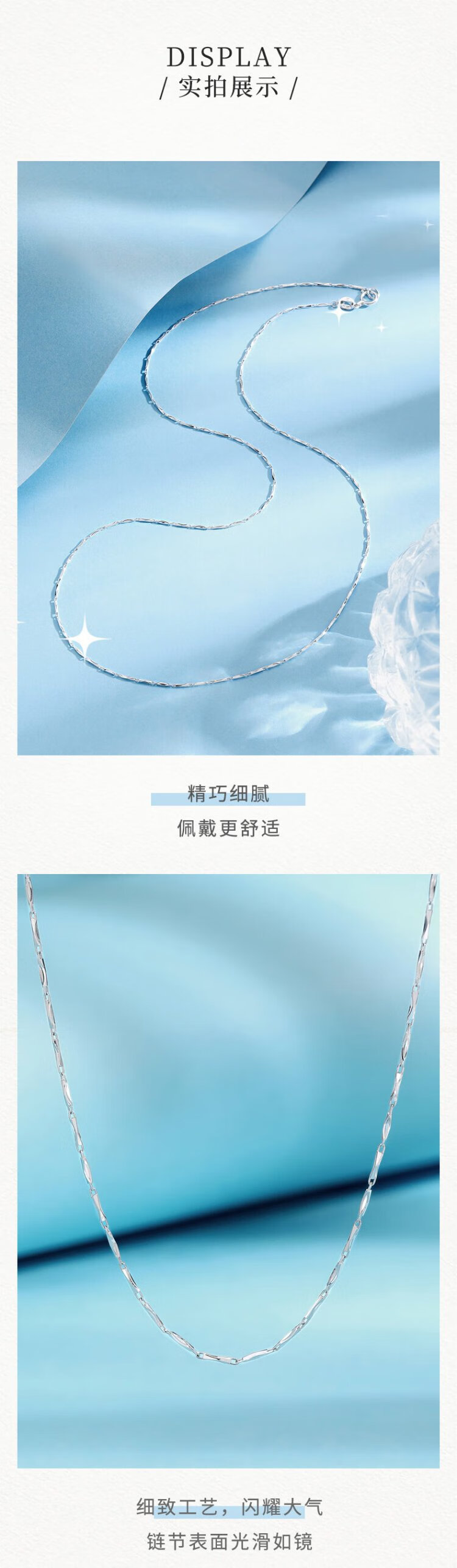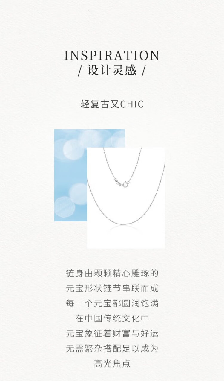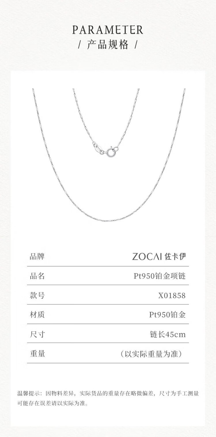 Zokai platinum necklace PT950 ingot chain simple matching chain versatile gift for girlfriend birthday gift X0185 about 2.68g