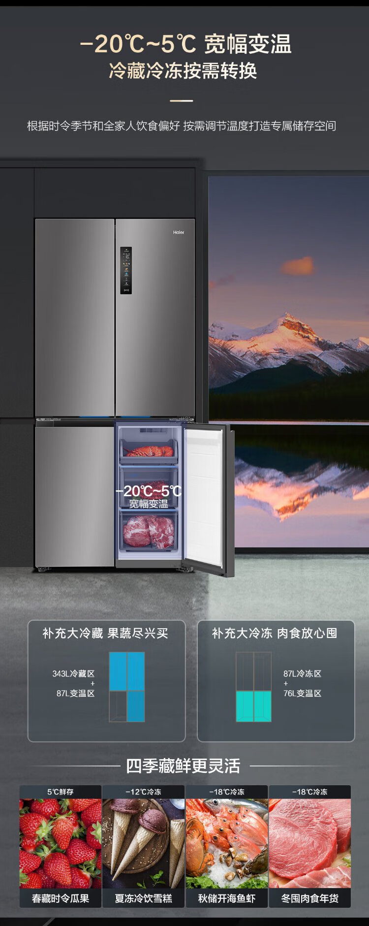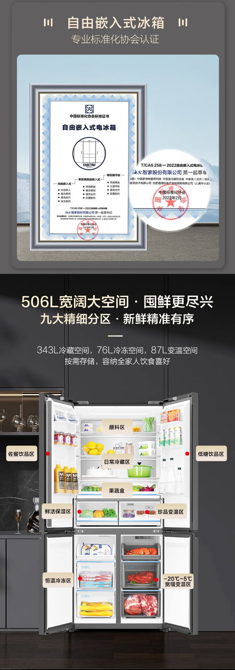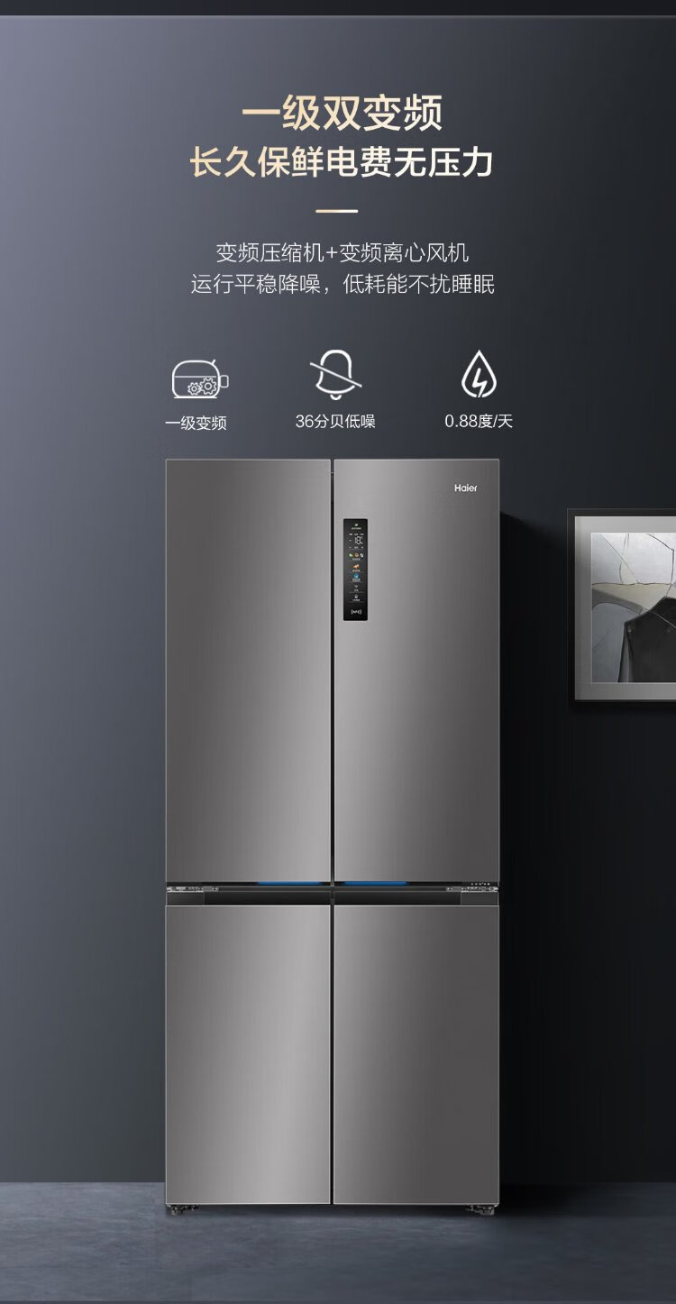 Haier Family Banquet 506-liter full-space fresh-keeping zero-distance free embedded cross-door four-door refrigerator household first-class energy efficiency BCD-506WGHTD14GYU1 20% national subsidy