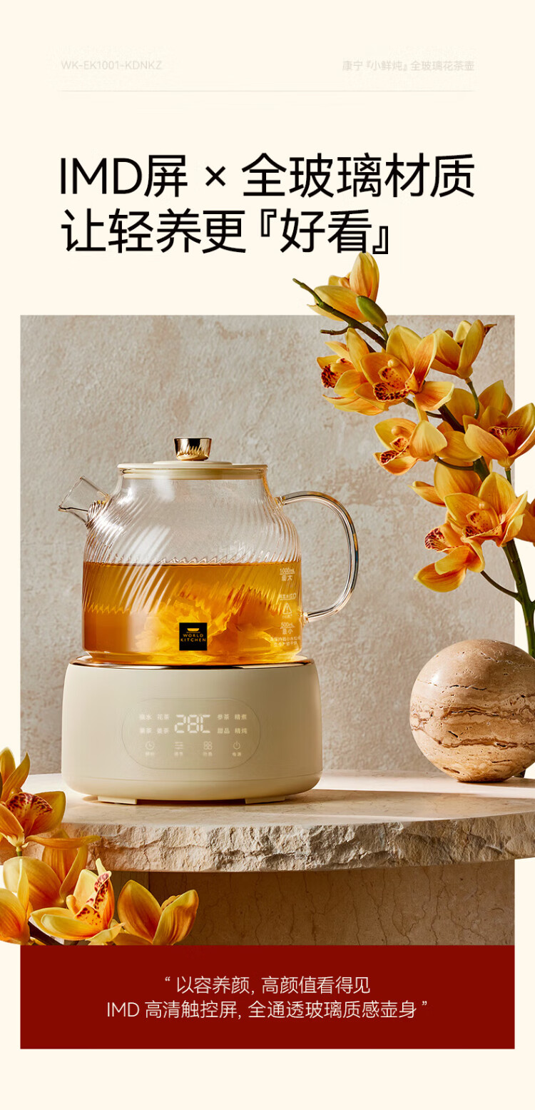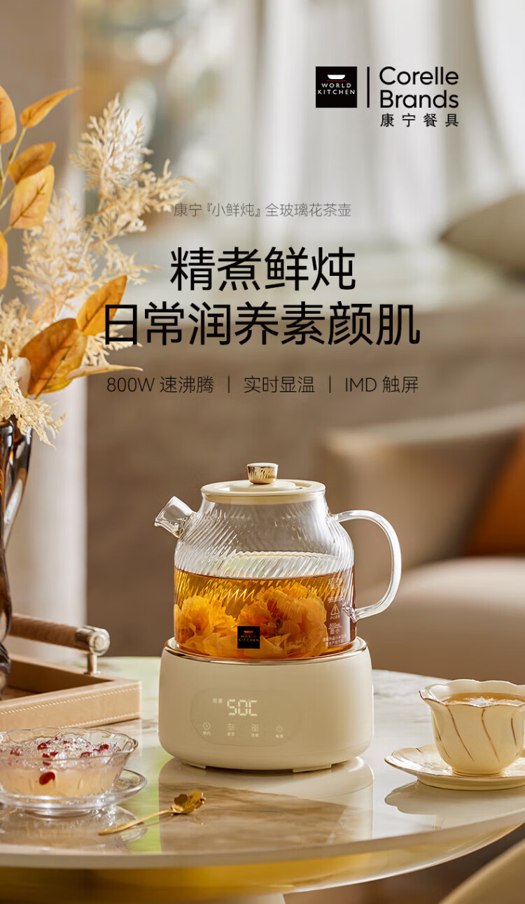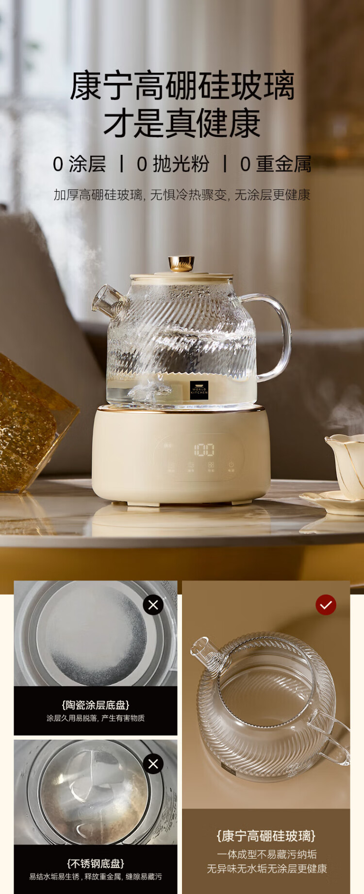 World KitchenAmerican Corning Health Pot Full Glass Constant Temperature Kettle Tea Kettle Tea Maker 1L Office Flower Tea Kettle Kettle Electric Kettle (Upgraded Tea Leaking Model + Full Glass Cover)