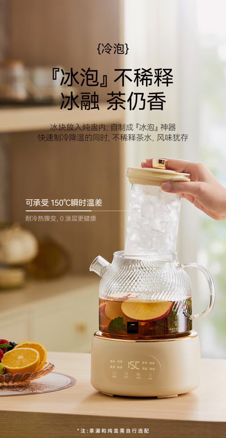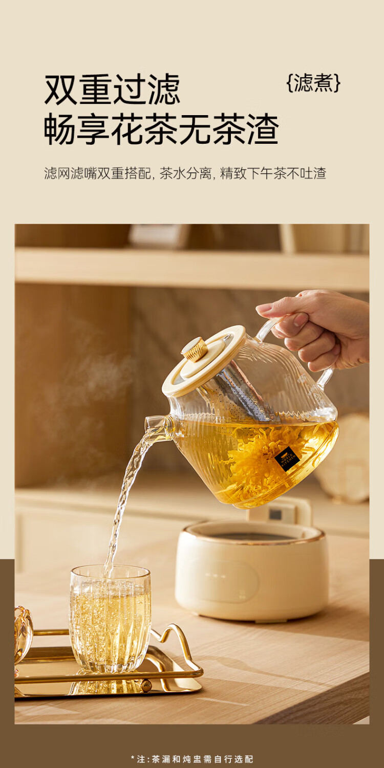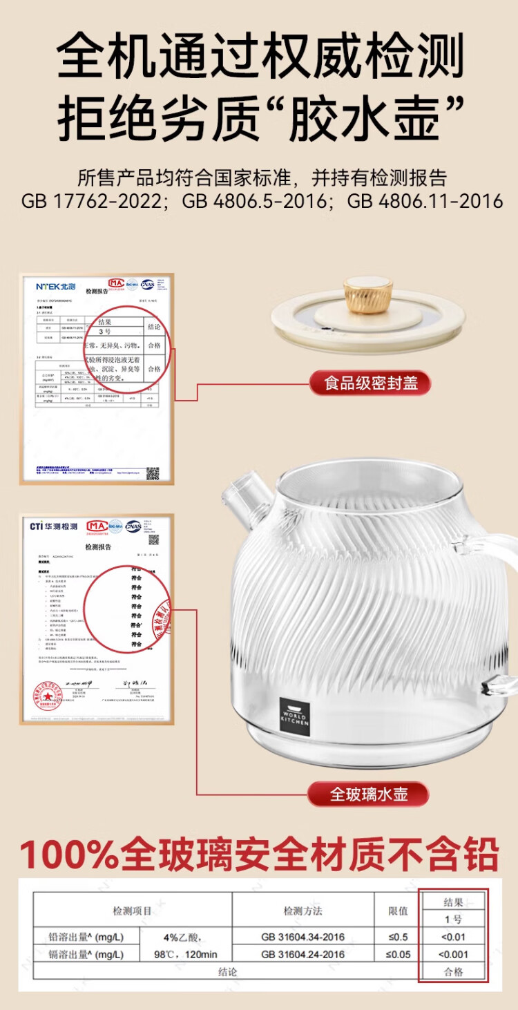 World KitchenAmerican Corning Health Pot Full Glass Constant Temperature Kettle Tea Kettle Tea Maker 1L Office Flower Tea Kettle Kettle Electric Kettle (Upgraded Tea Leaking Model + Full Glass Cover)