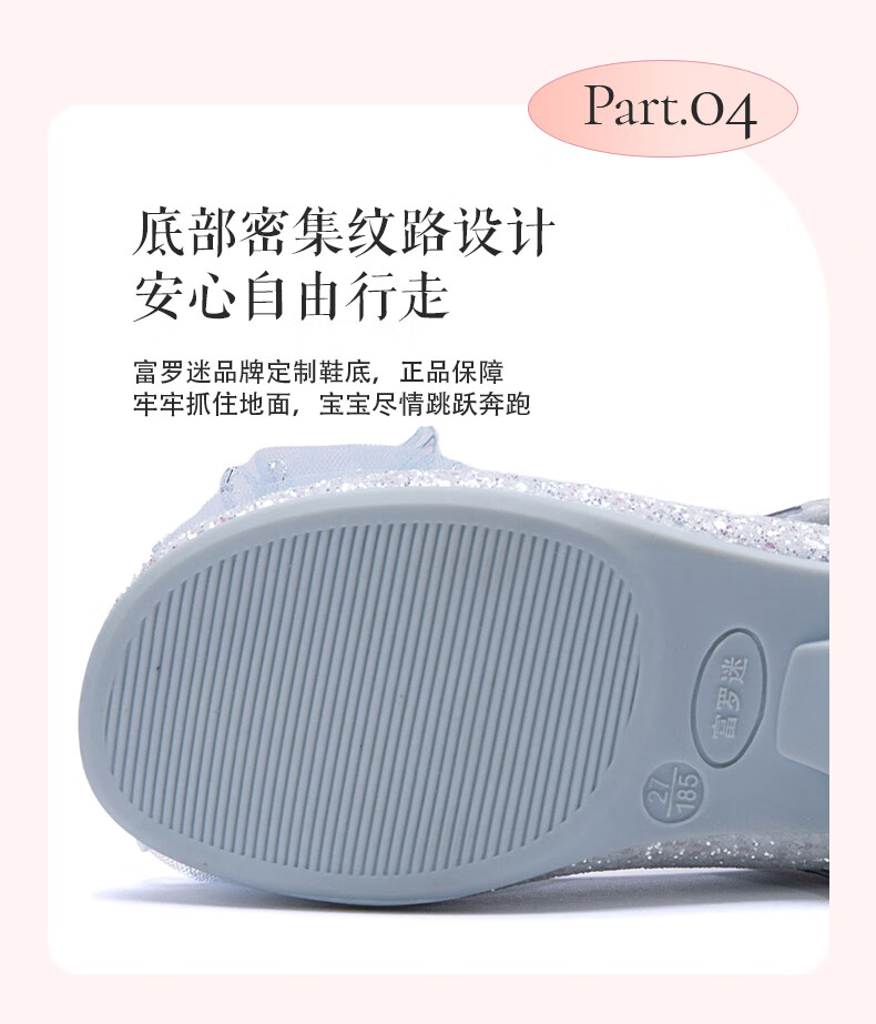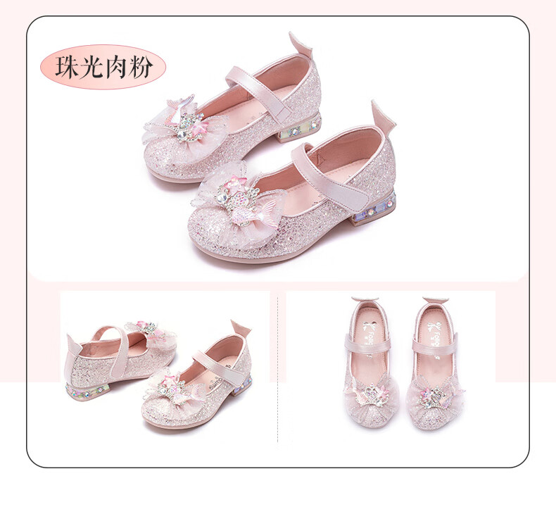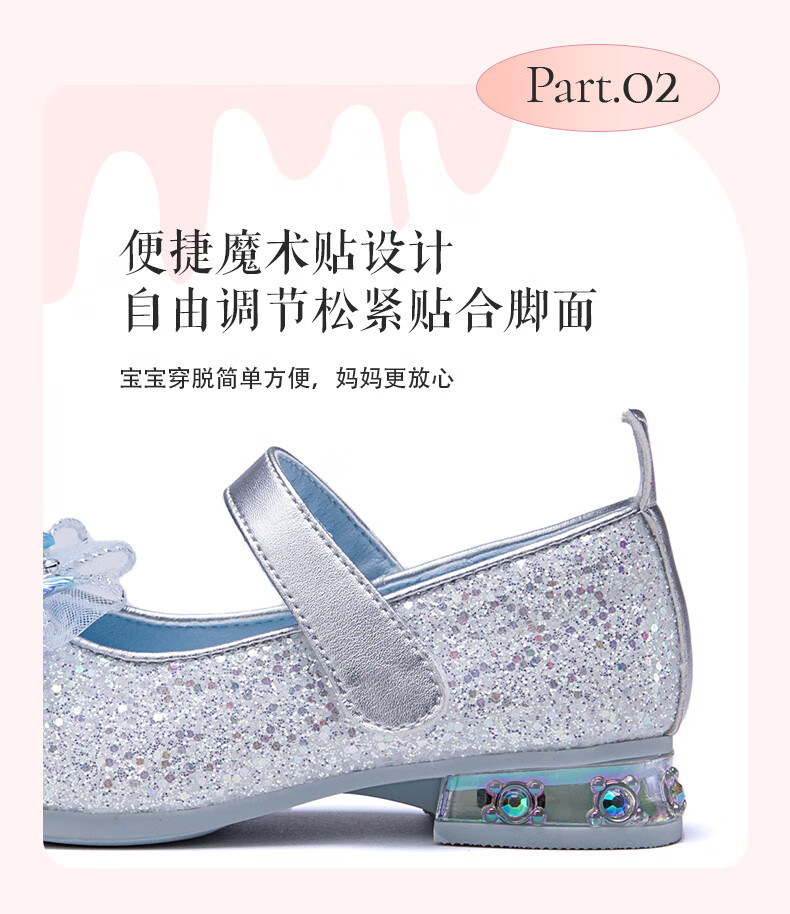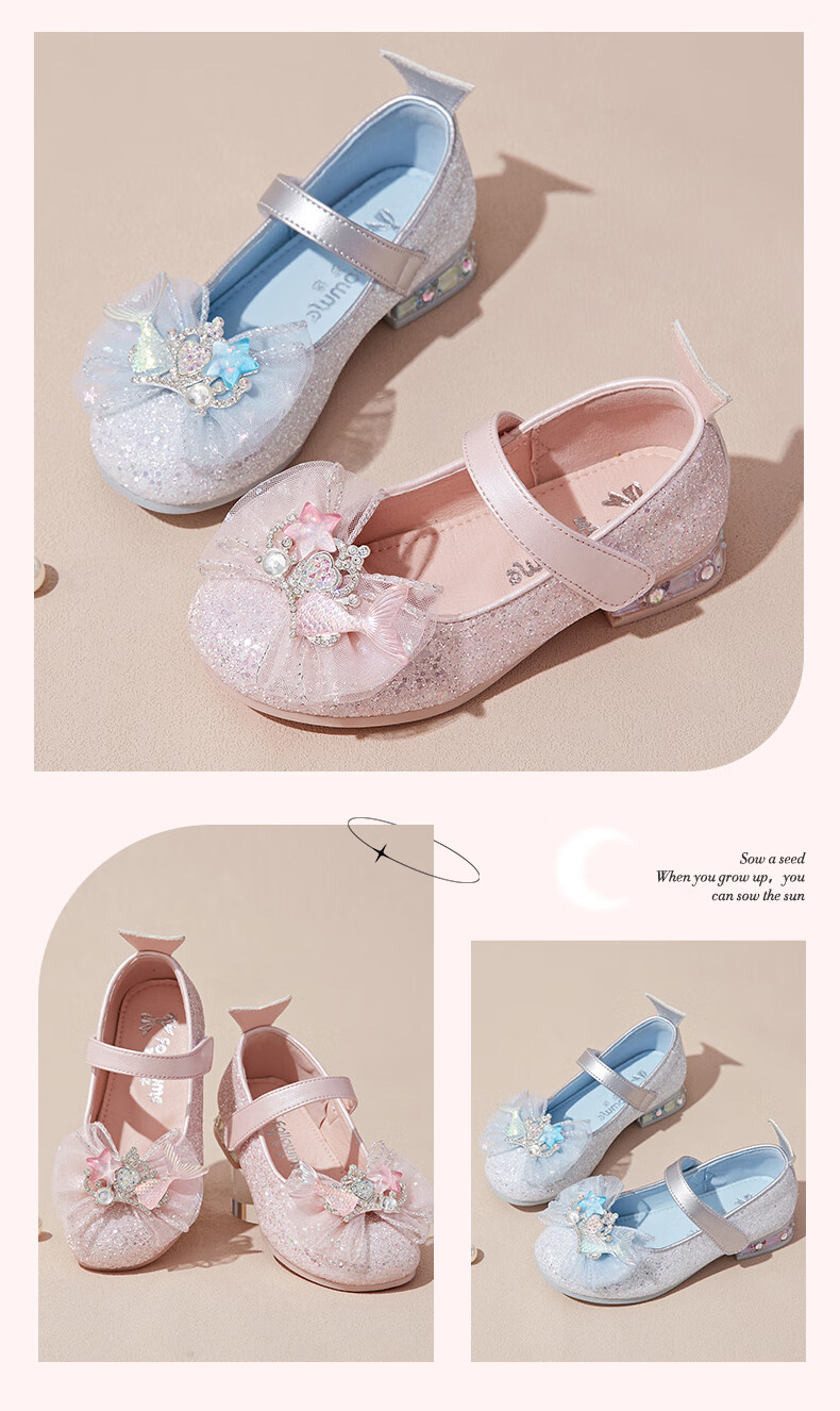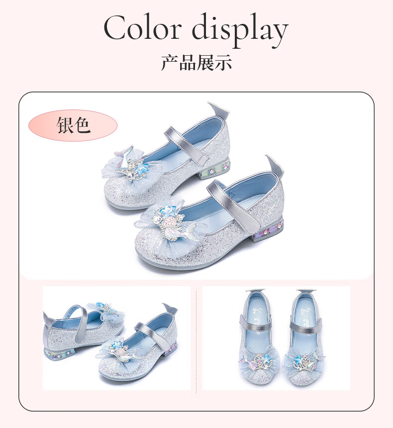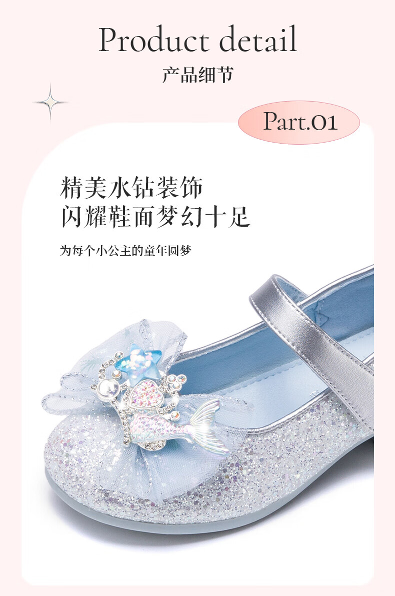 Fuluo Mi Girls Crystal Princess Shoes Spring and Autumn Soft Sole Breathable Dress Shoes Children's Performance Sparkling Shoes Symphony Silver 29