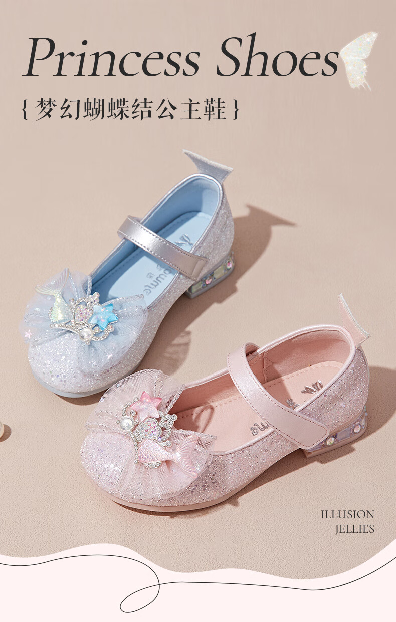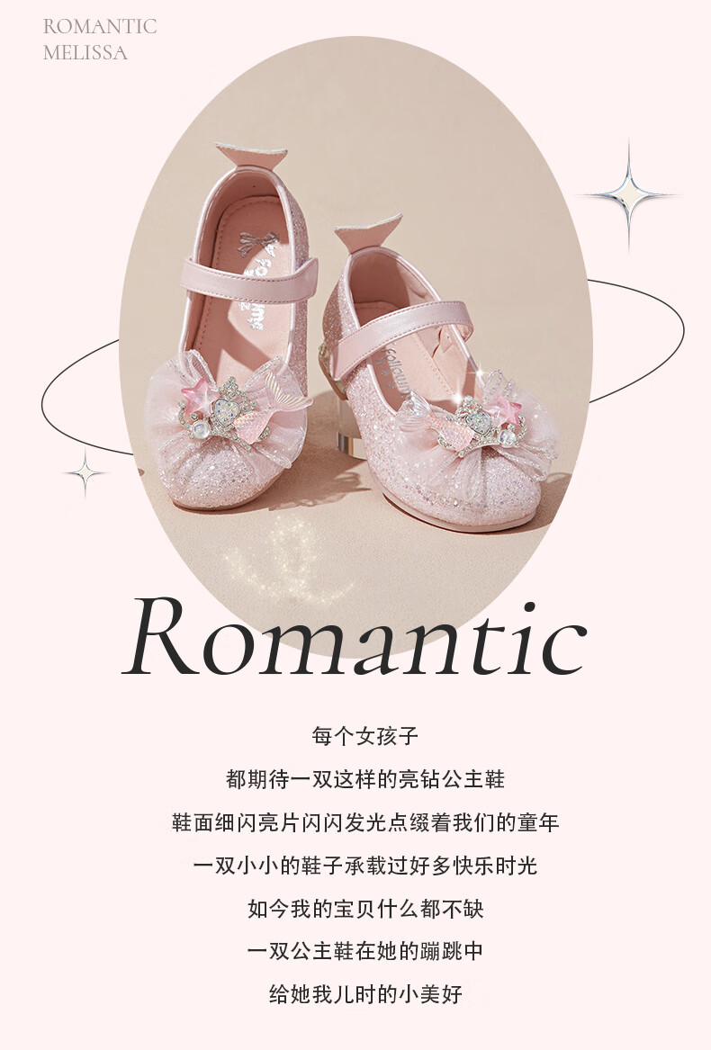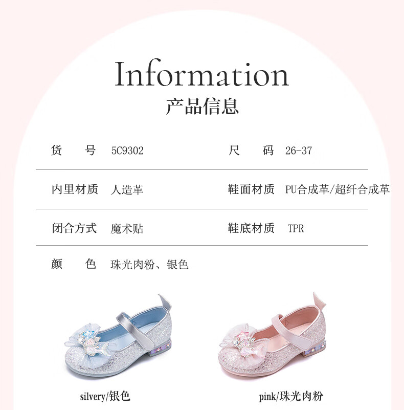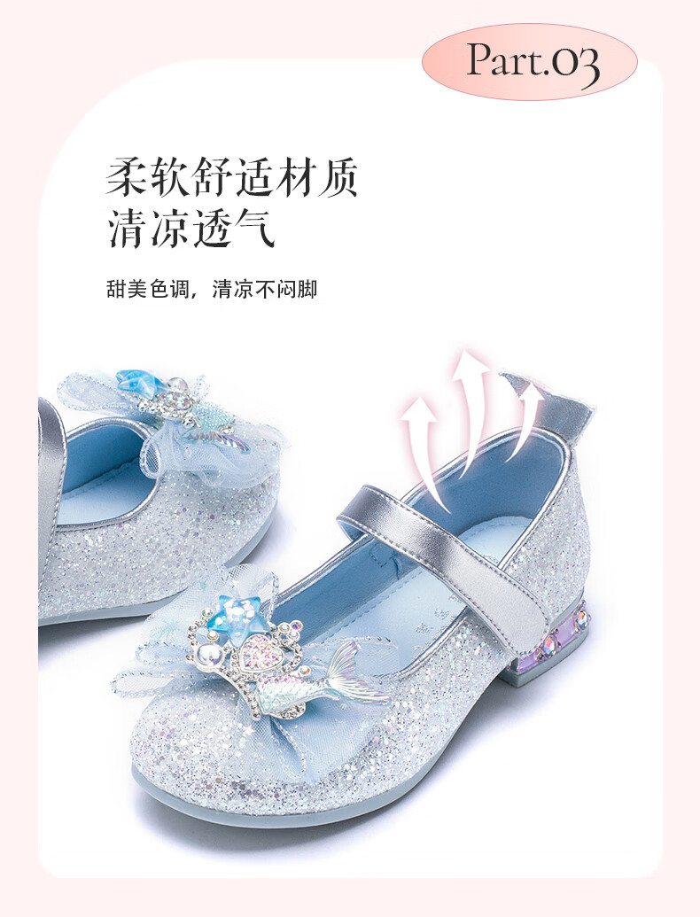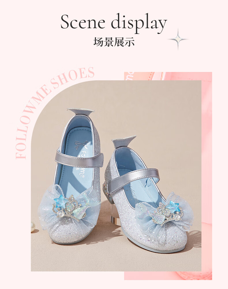 Fuluo Mi Girls Crystal Princess Shoes Spring and Autumn Soft Sole Breathable Dress Shoes Children's Performance Sparkling Shoes Symphony Silver 29
