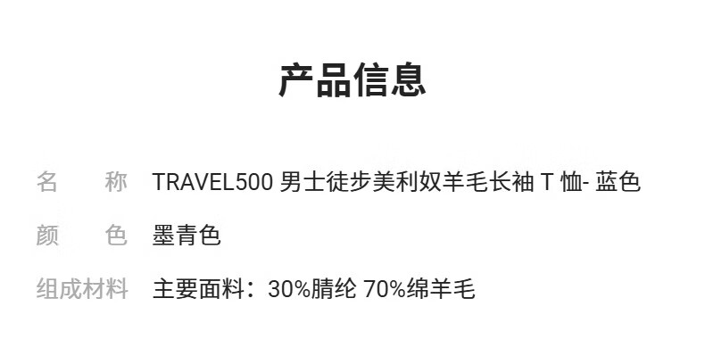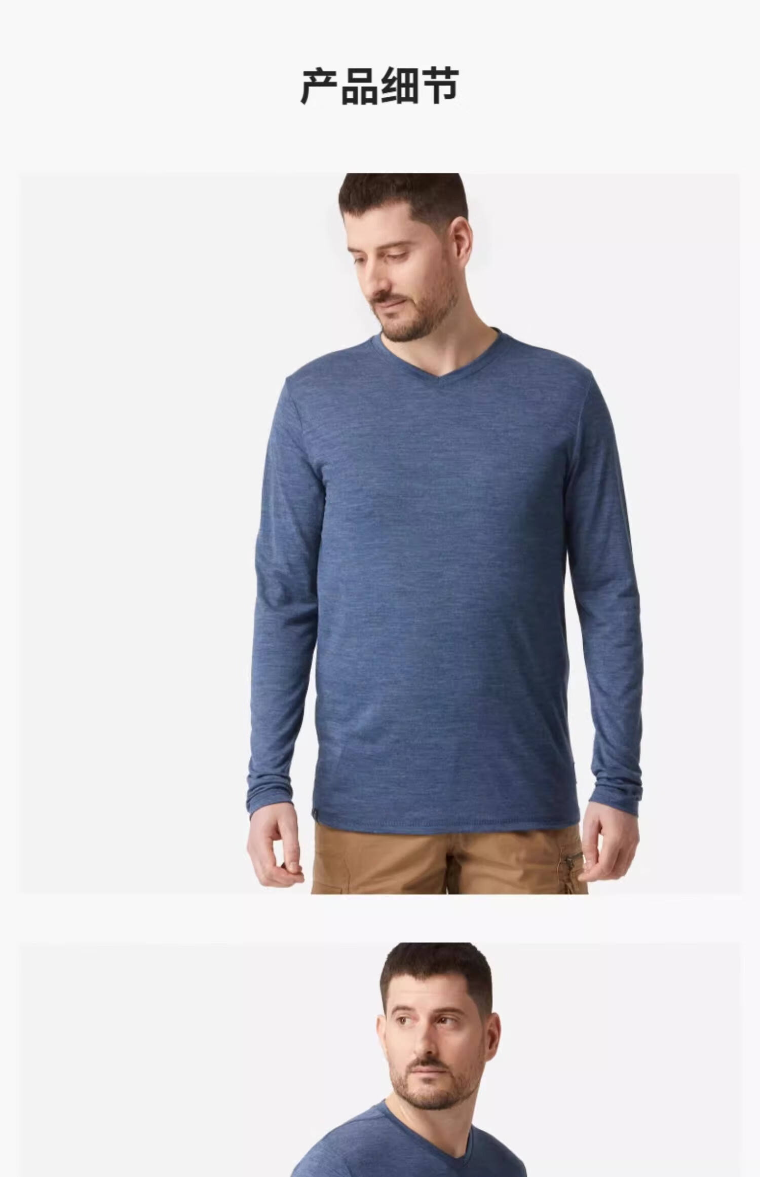 迪卡侬户外山地运动美利奴羊毛透气吸湿保暖舒适男士长袖T恤-2478032