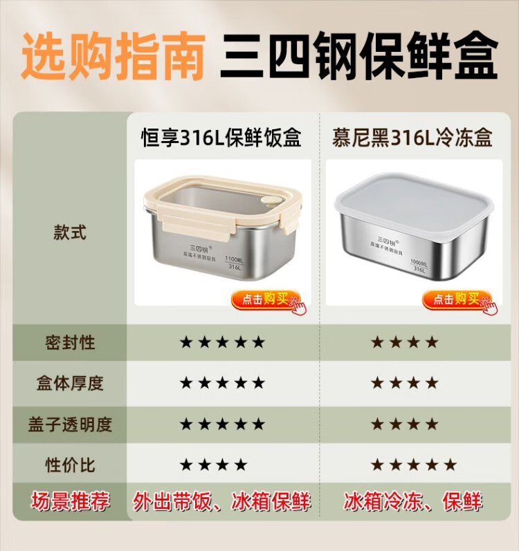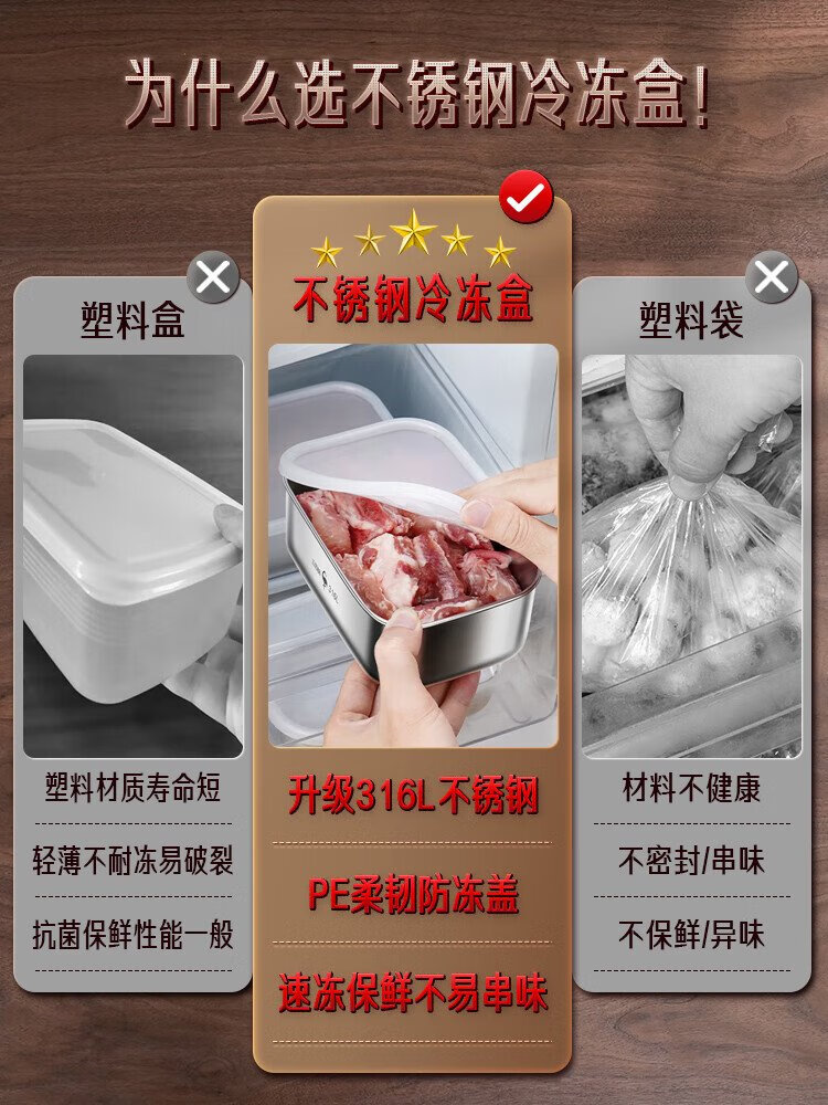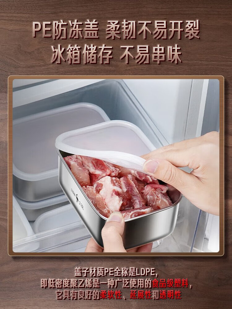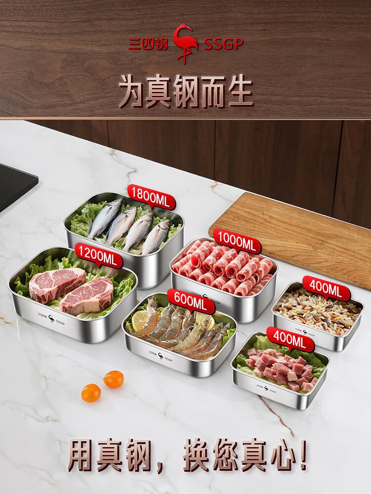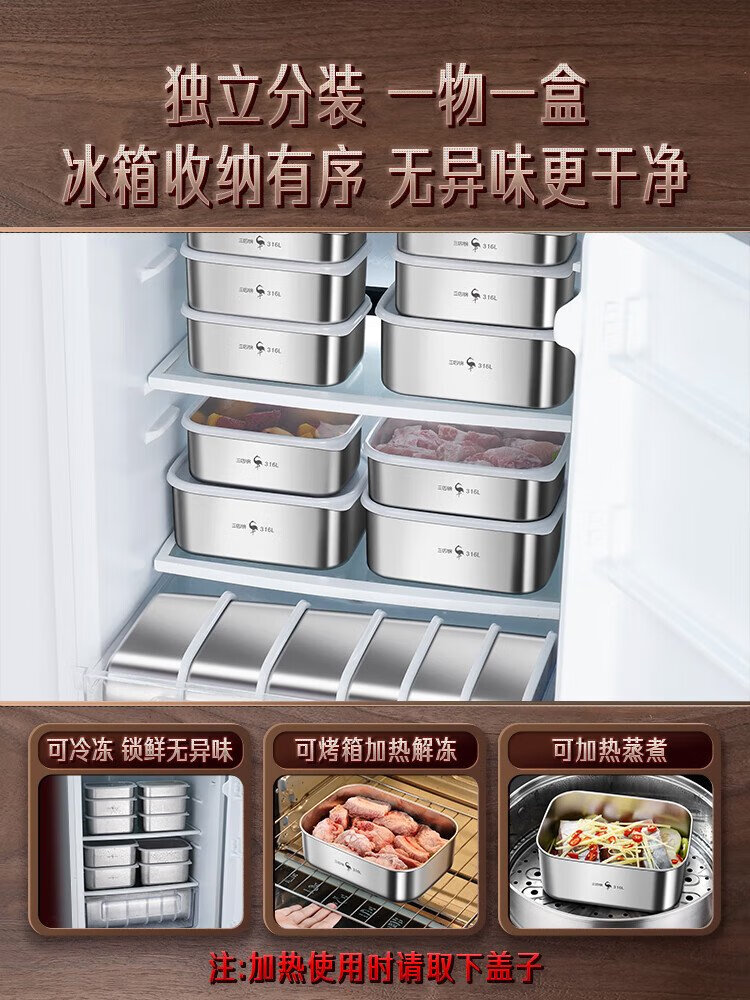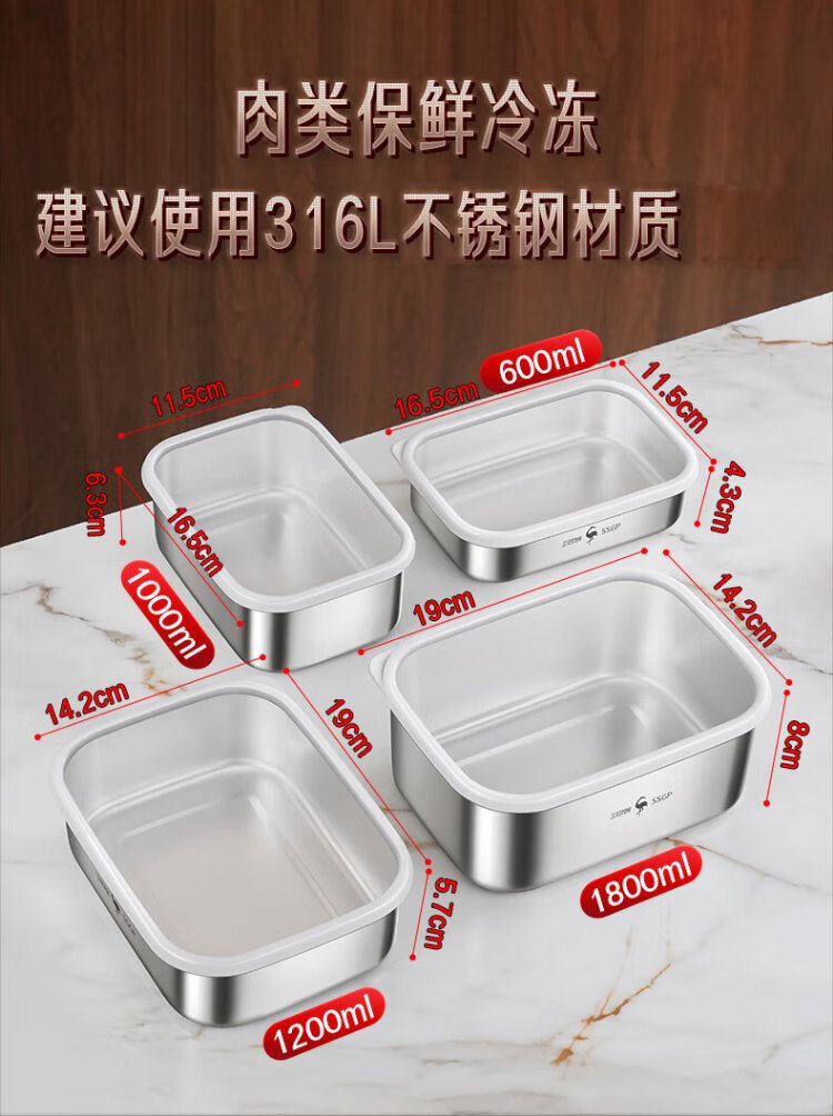 Sansi Steel 316L stainless steel crisper food grade lunch box refrigerator freezer 1000ml 3 pieces W373512