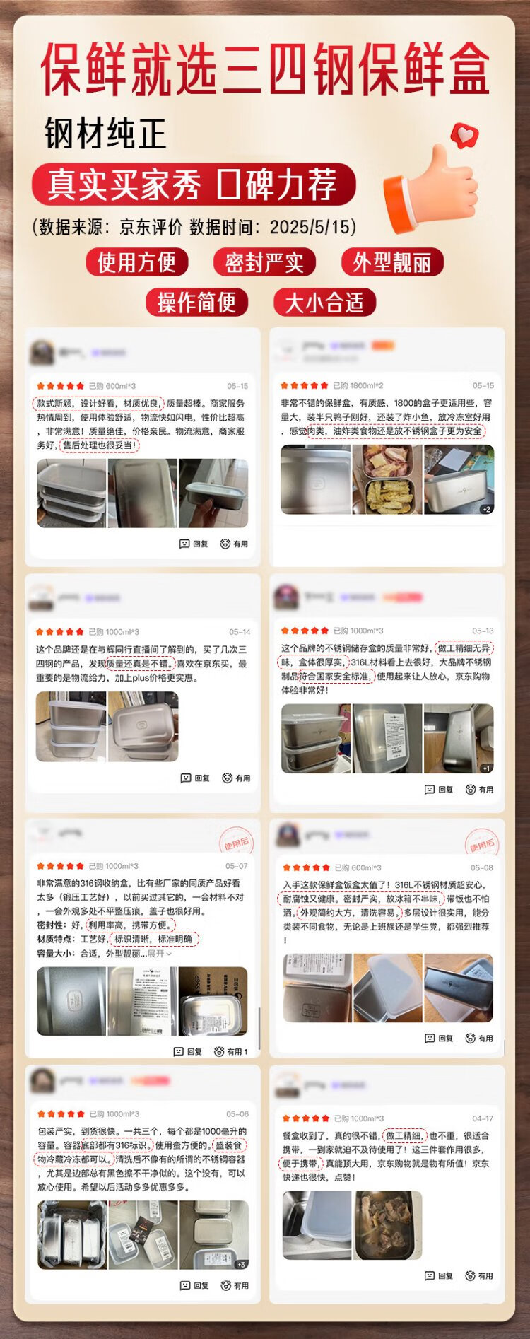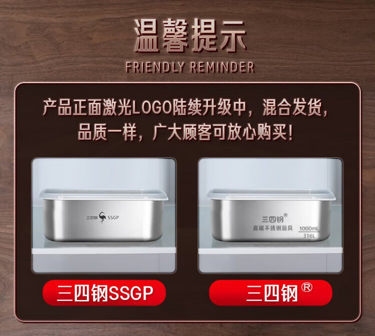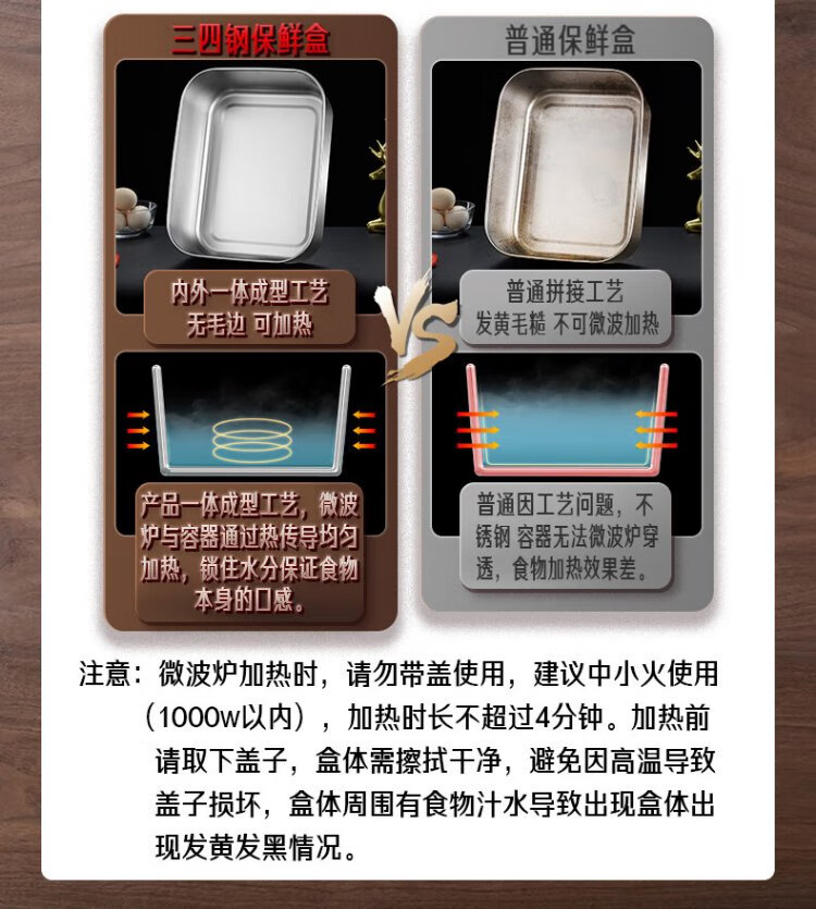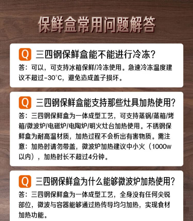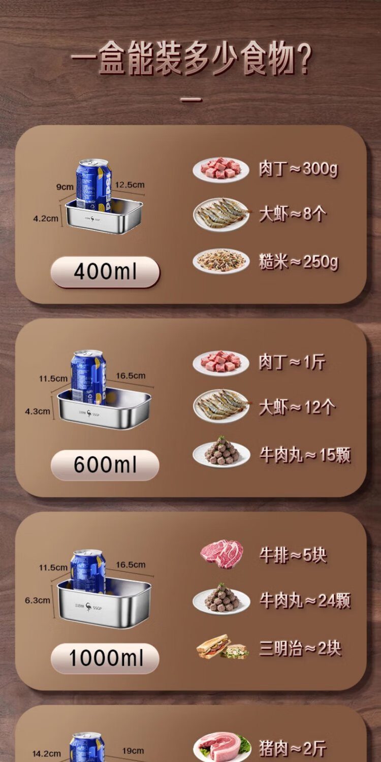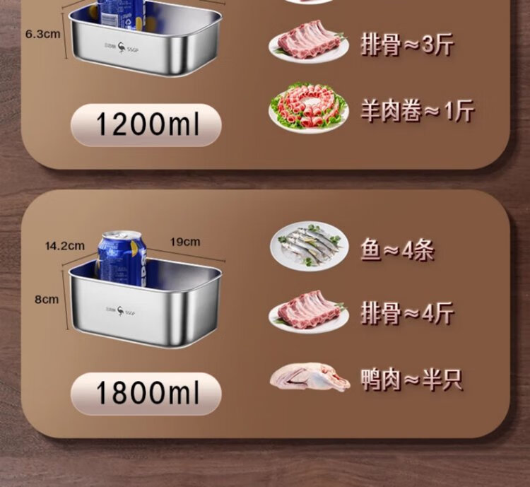 Sansi Steel 316L stainless steel crisper food grade lunch box refrigerator freezer 1000ml 3 pieces W373512