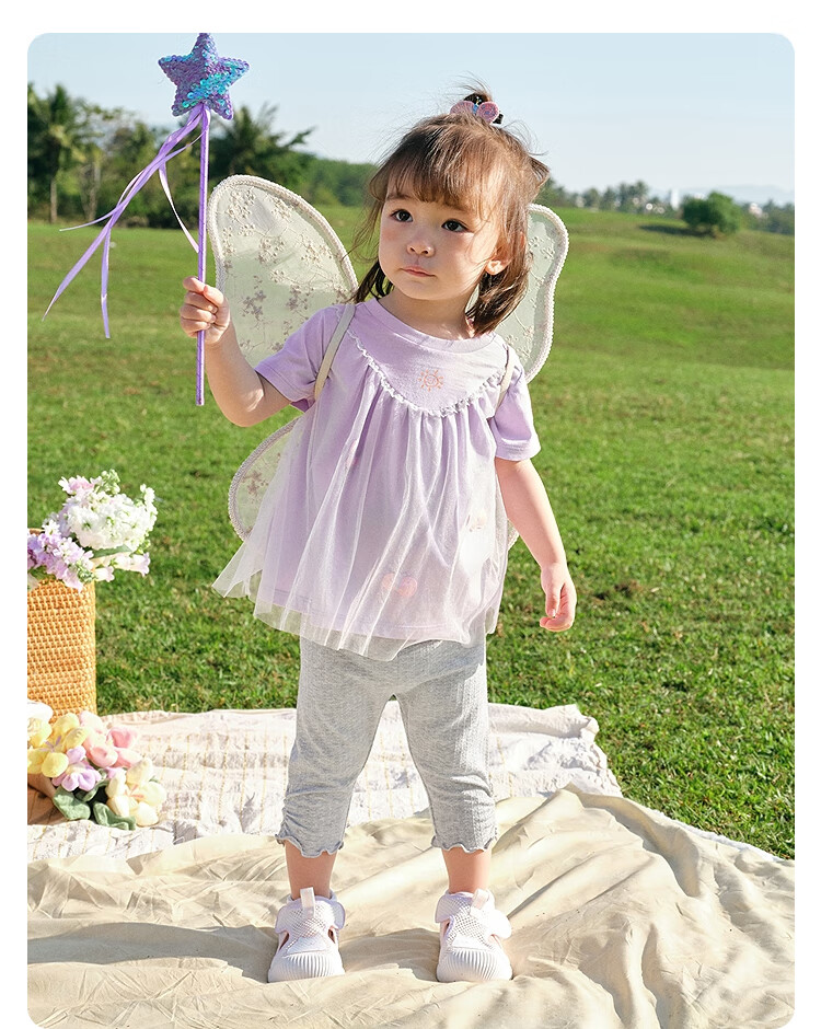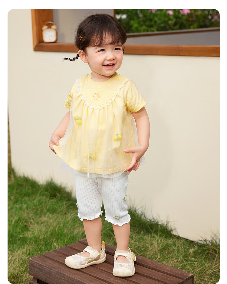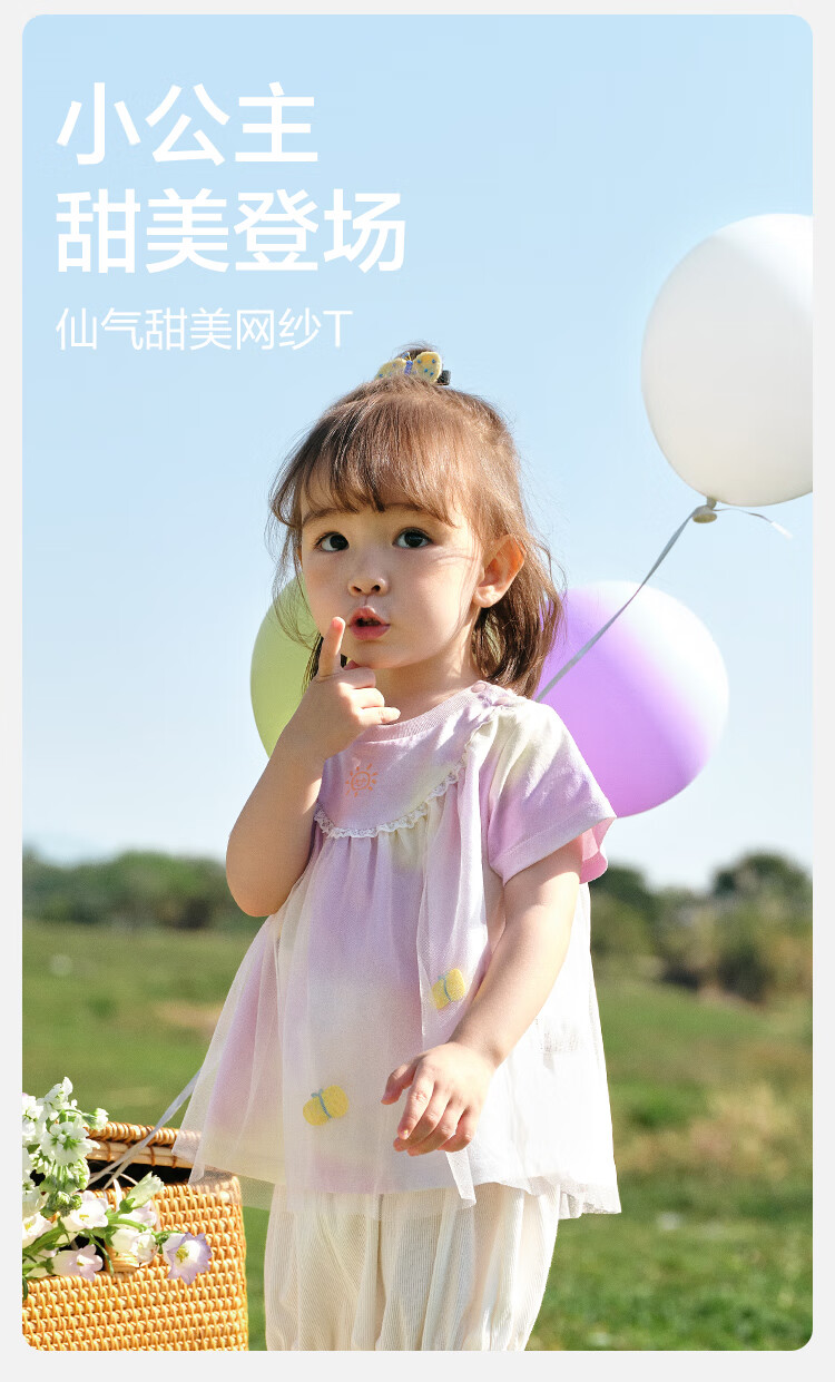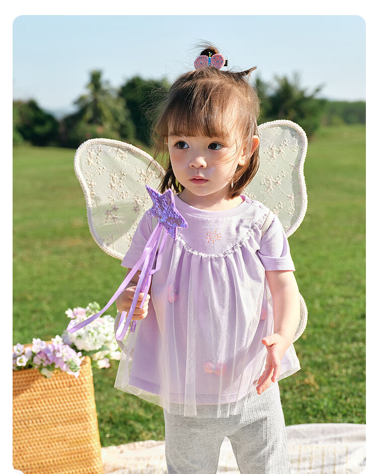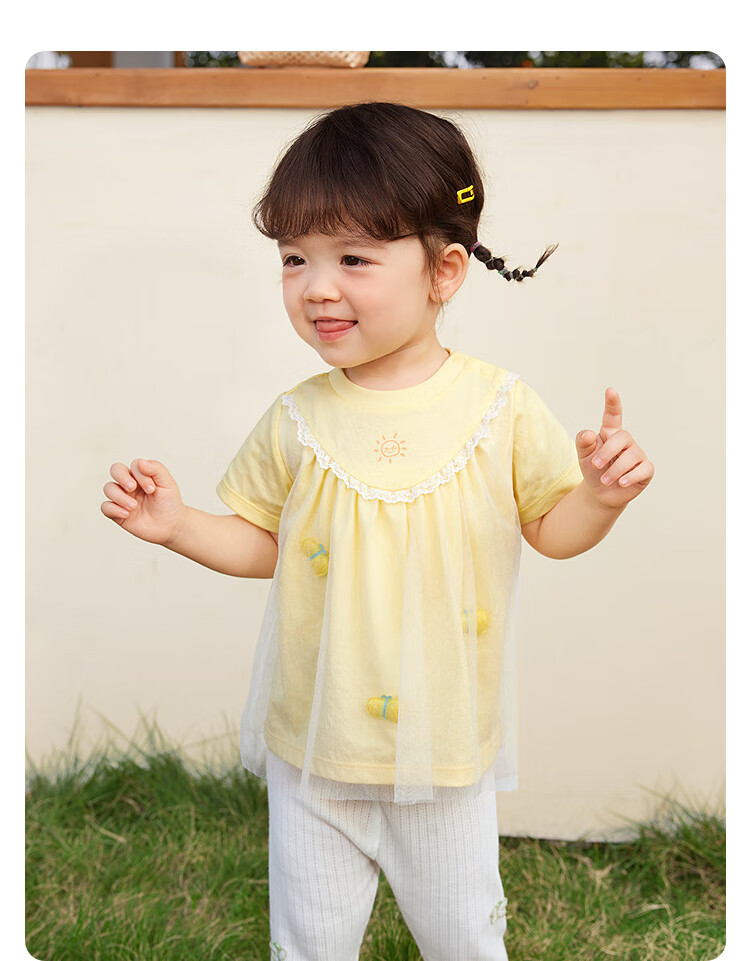 Balabala baby short-sleeved t-shirt baby girls tops 2025 summer wear sweet mesh stitching fashionable 209225117004