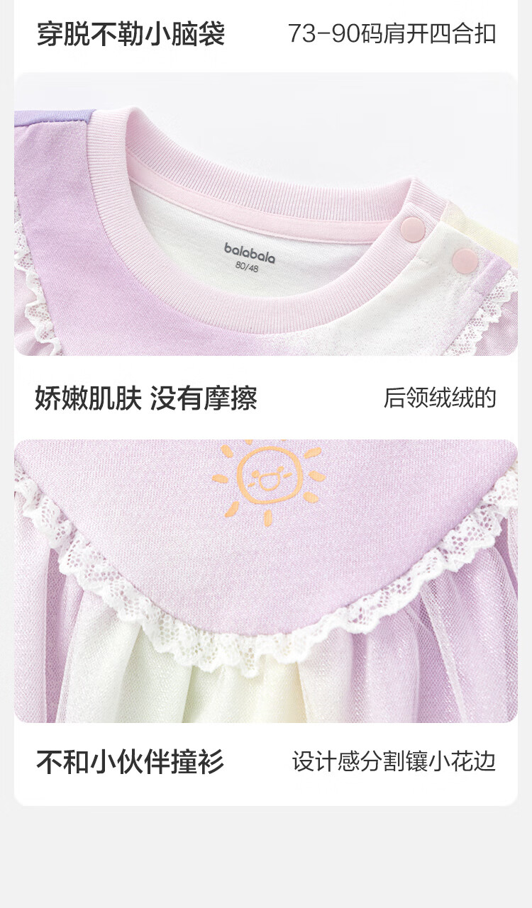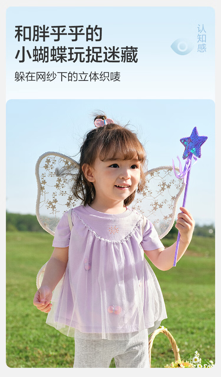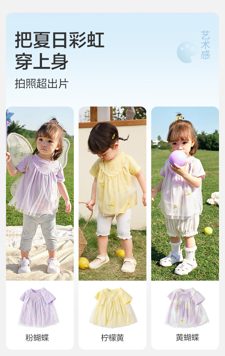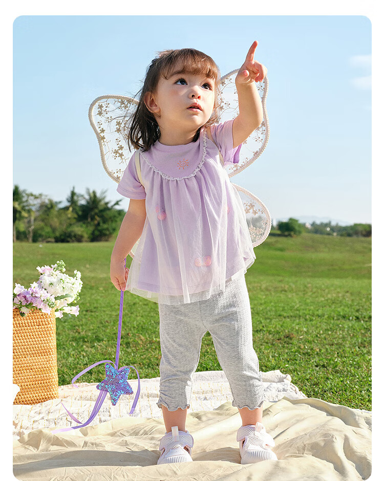 Balabala baby short-sleeved t-shirt baby girls tops 2025 summer wear sweet mesh stitching fashionable 209225117004