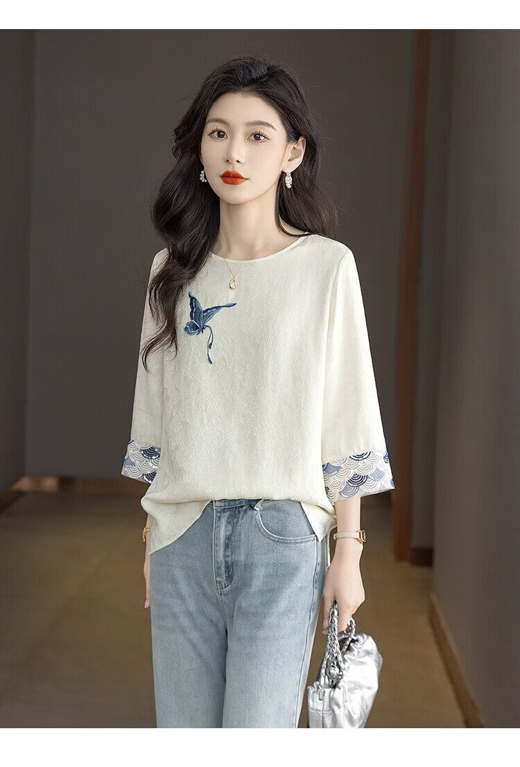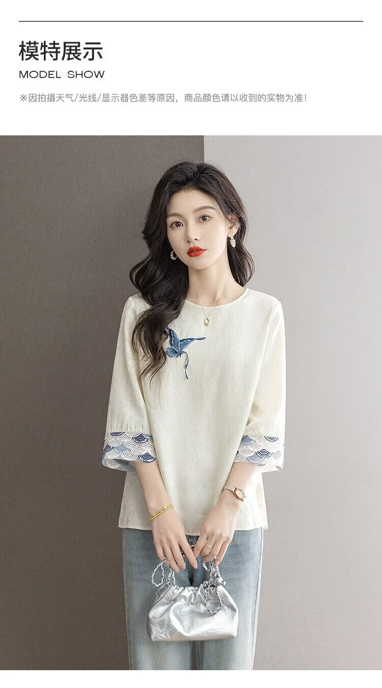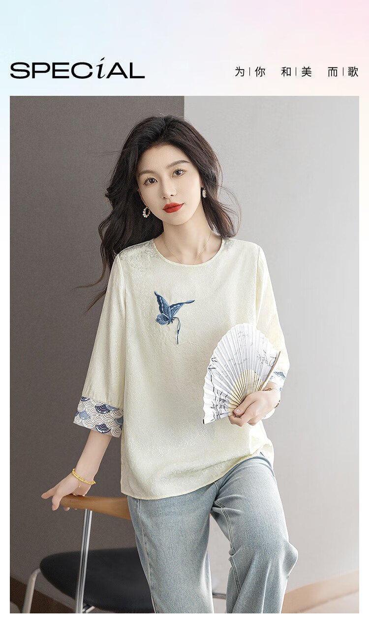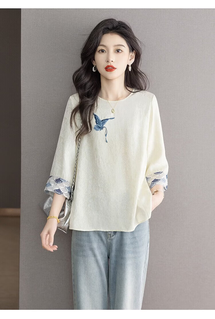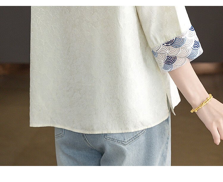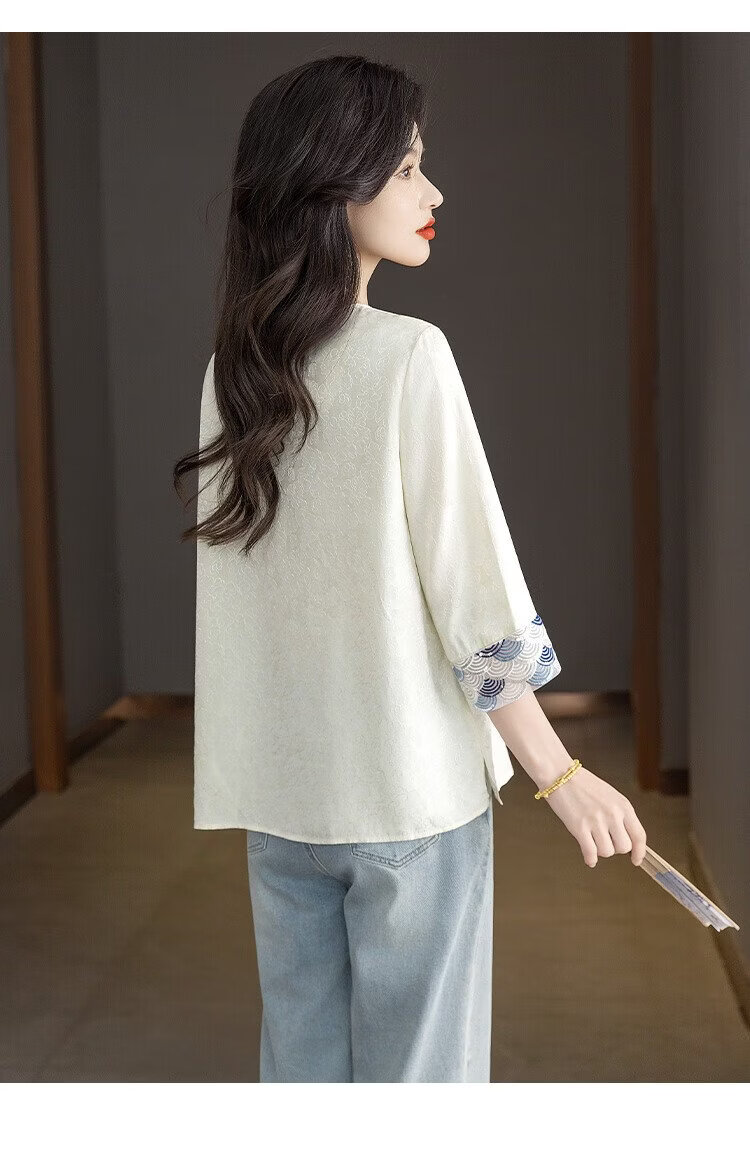 Sibaishe New Chinese Style Shirt 2026 Spring New Women's National Style Loose Style Spliced Round Neck Shirt