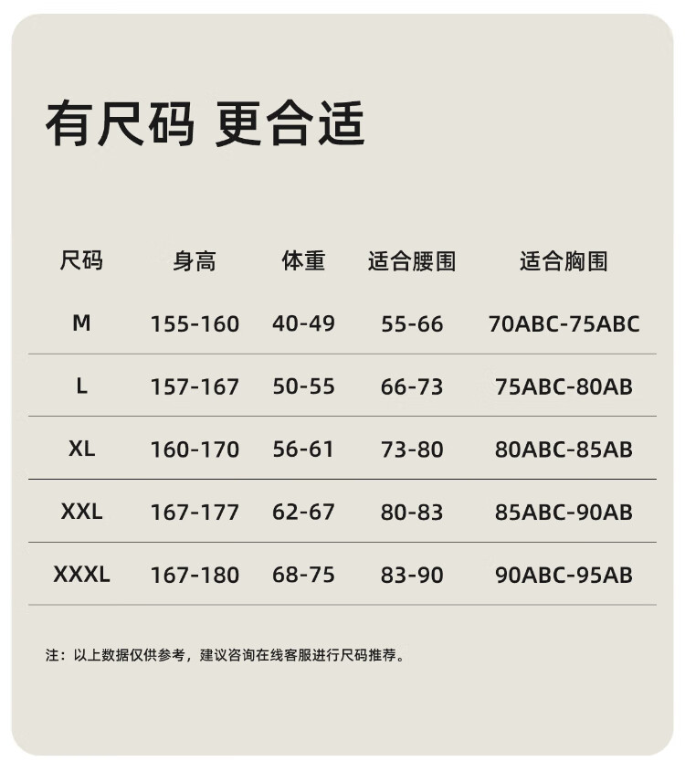 China (cm) 160-165/84-86 165-170 / 88-90 167-172 / 92-96 168-173 / 98-102 170-176 / 106-110