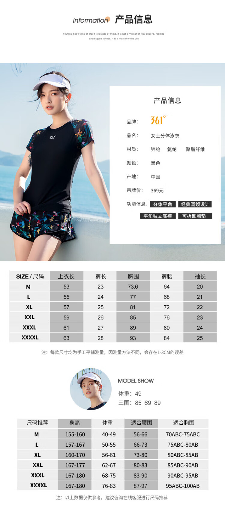 361 swimsuit for women, sun protection split, slimming girl swimsuit, conservative cover-up, slimming, hot spring swimsuit, beach breathable, quick-drying