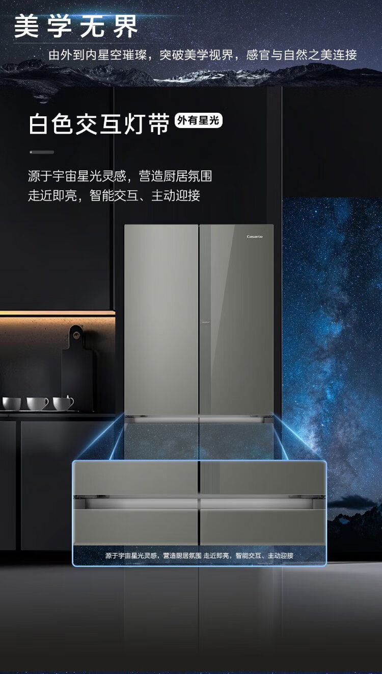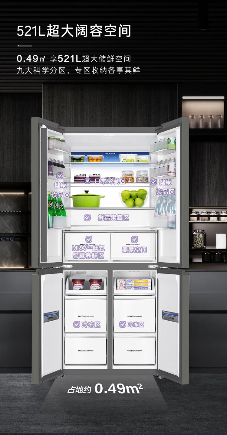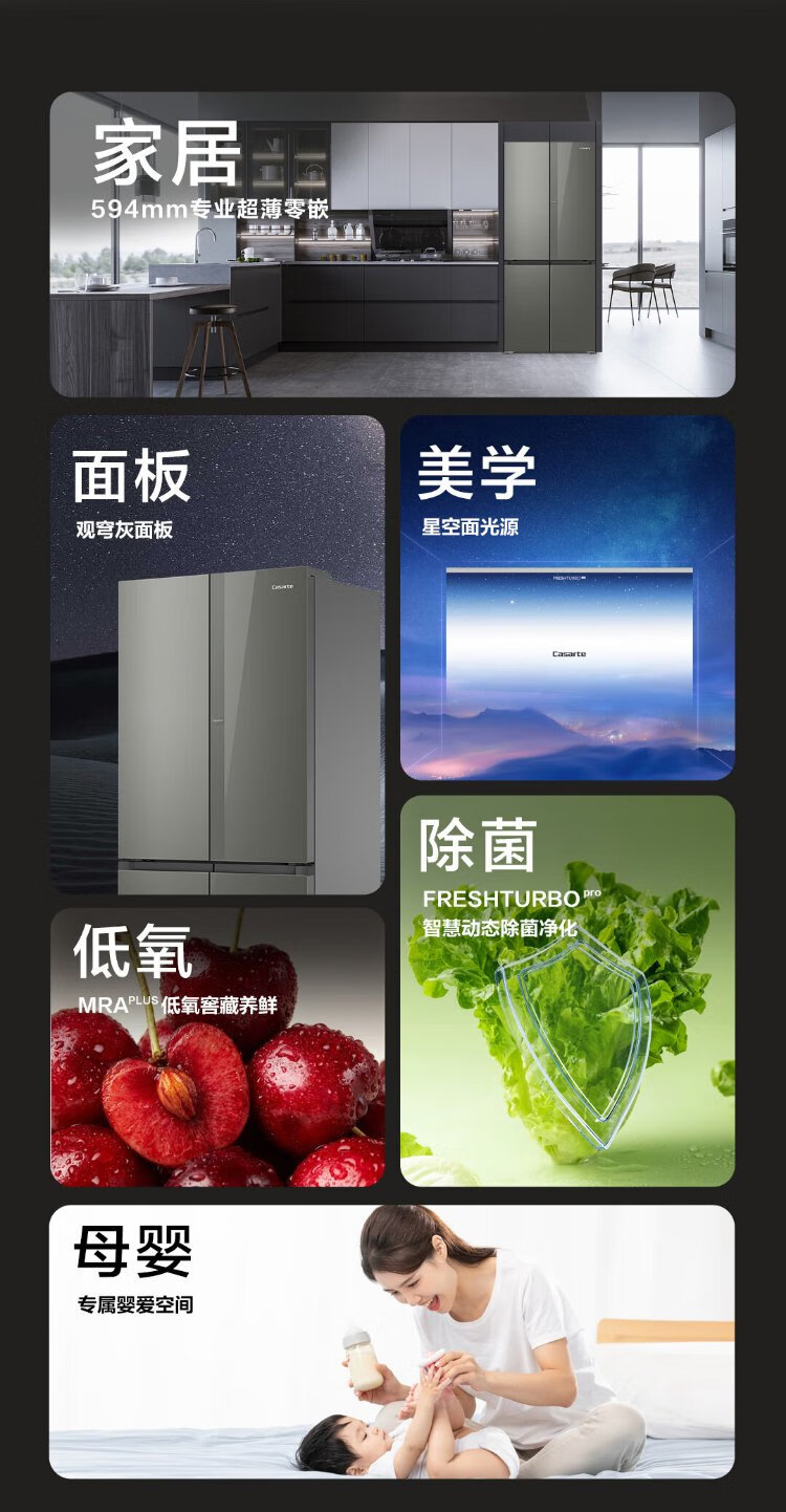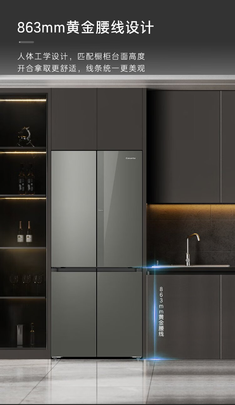 Casarte Languang 521L cross-door refrigerator 594mm professional ultra-thin zero-embedded MRA low-oxygen storage and freshness BCD-521WGCTDM4WKU1 (grey) national subsidy
