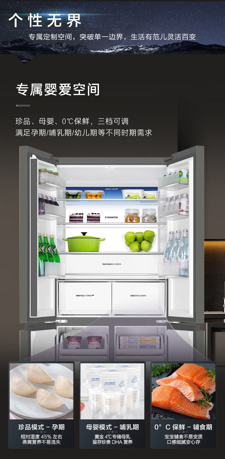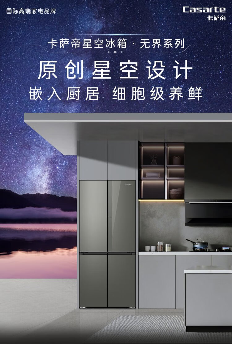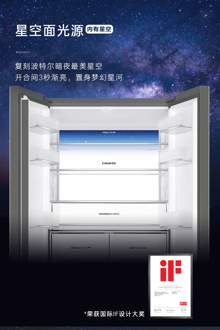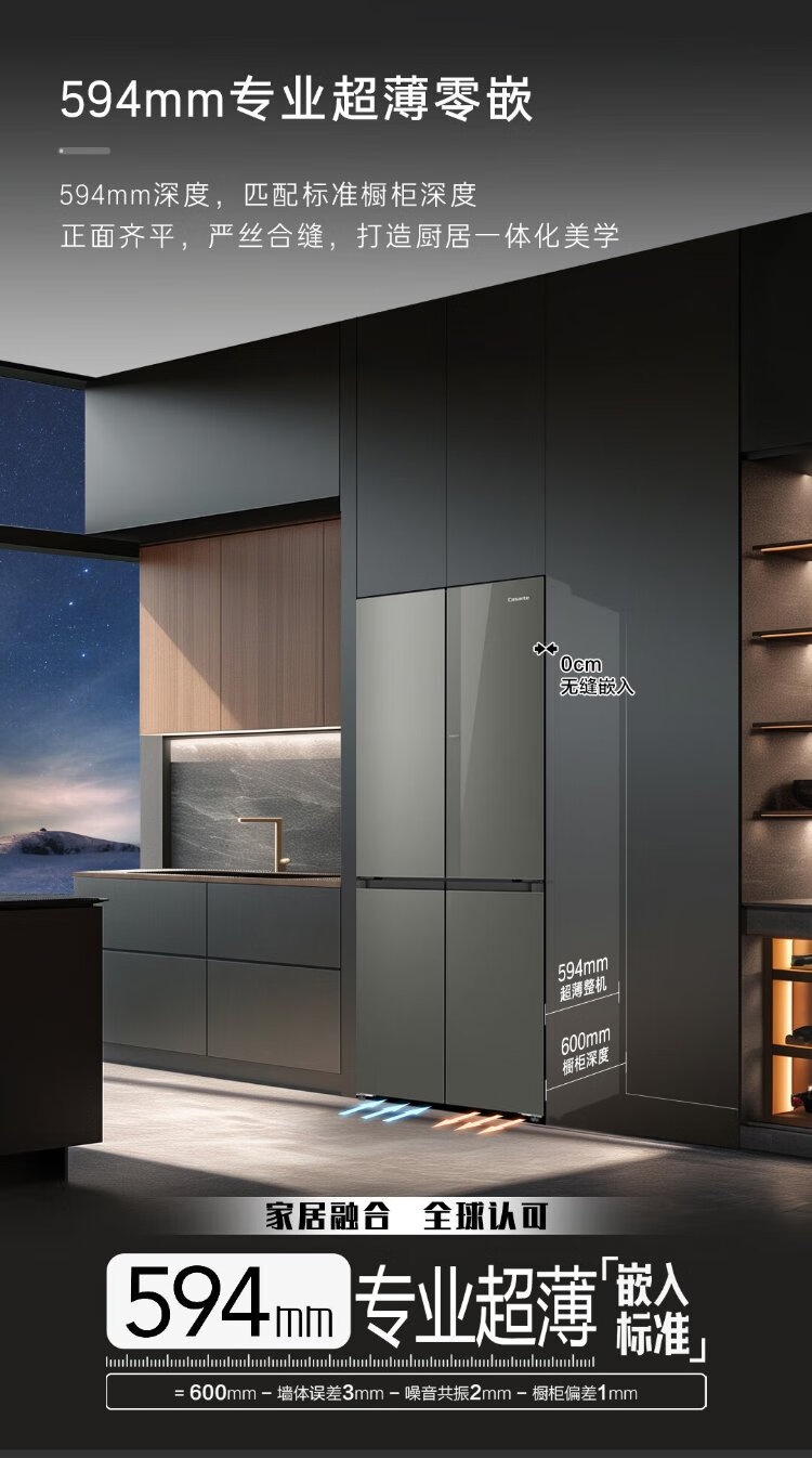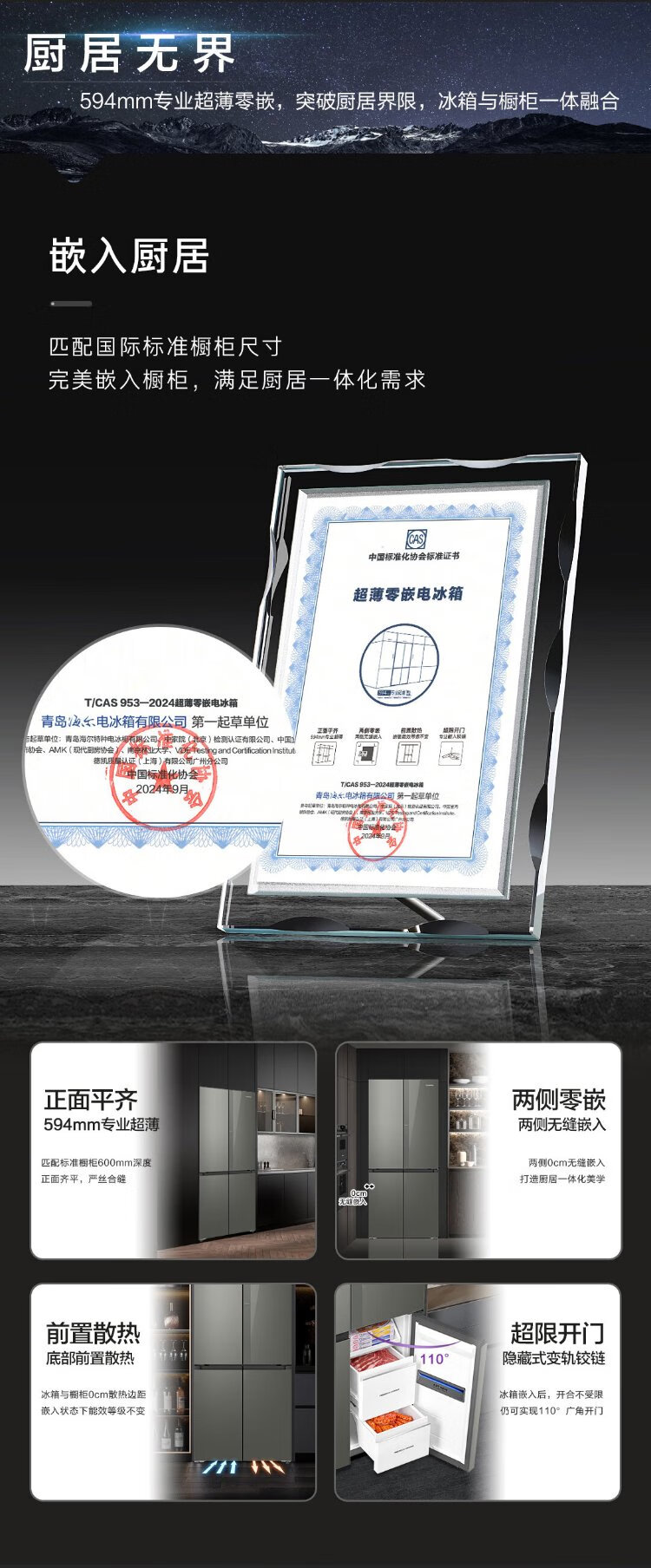 Casarte Languang 521L cross-door refrigerator 594mm professional ultra-thin zero-embedded MRA low-oxygen storage and freshness BCD-521WGCTDM4WKU1 (grey) national subsidy