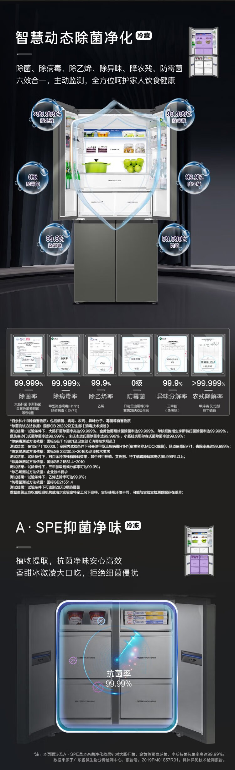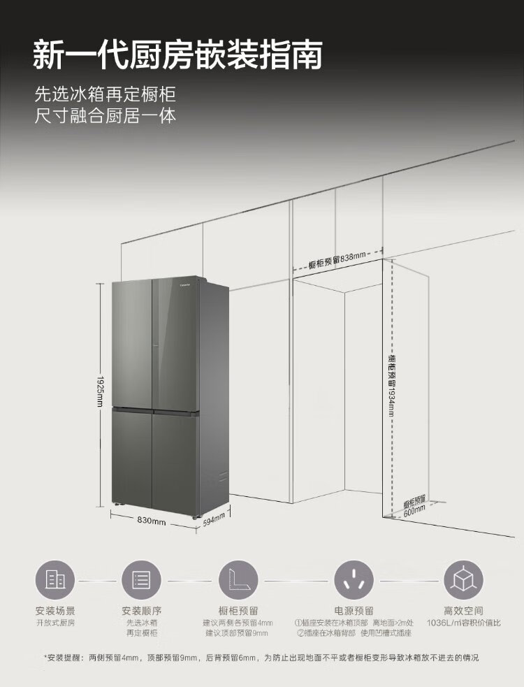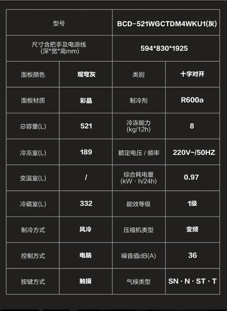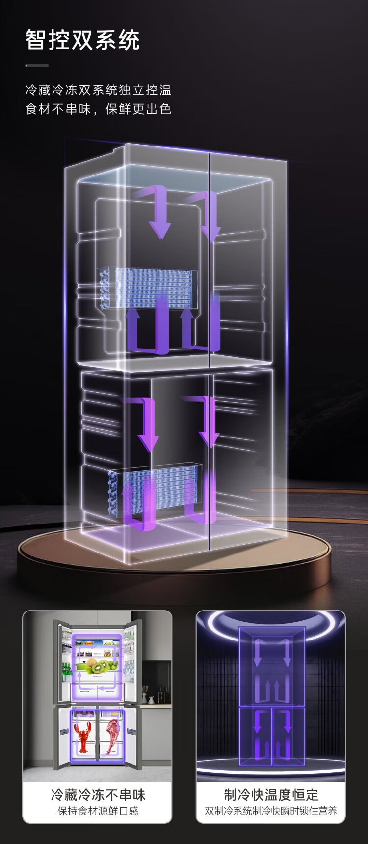Casarte Languang 521L cross-door refrigerator 594mm professional ultra-thin zero-embedded MRA low-oxygen storage and freshness BCD-521WGCTDM4WKU1 (grey) national subsidy