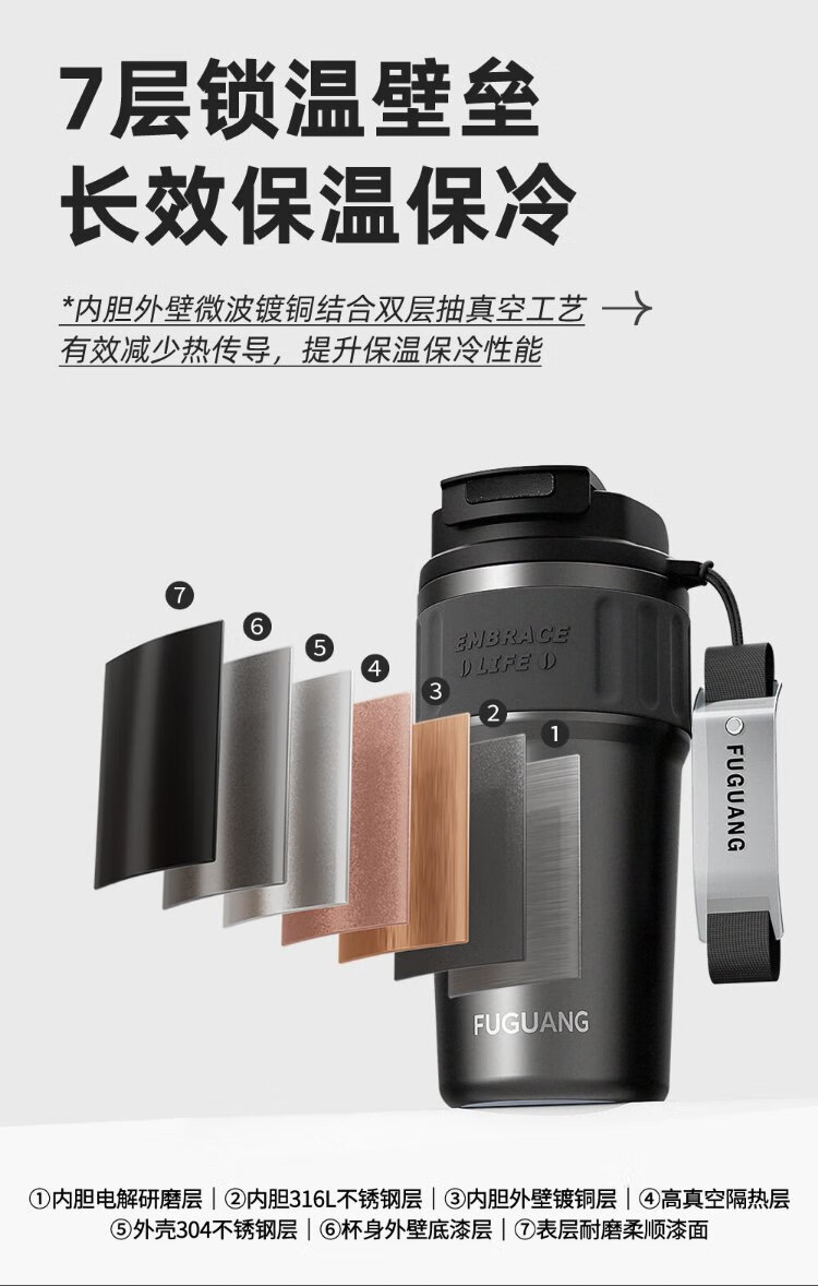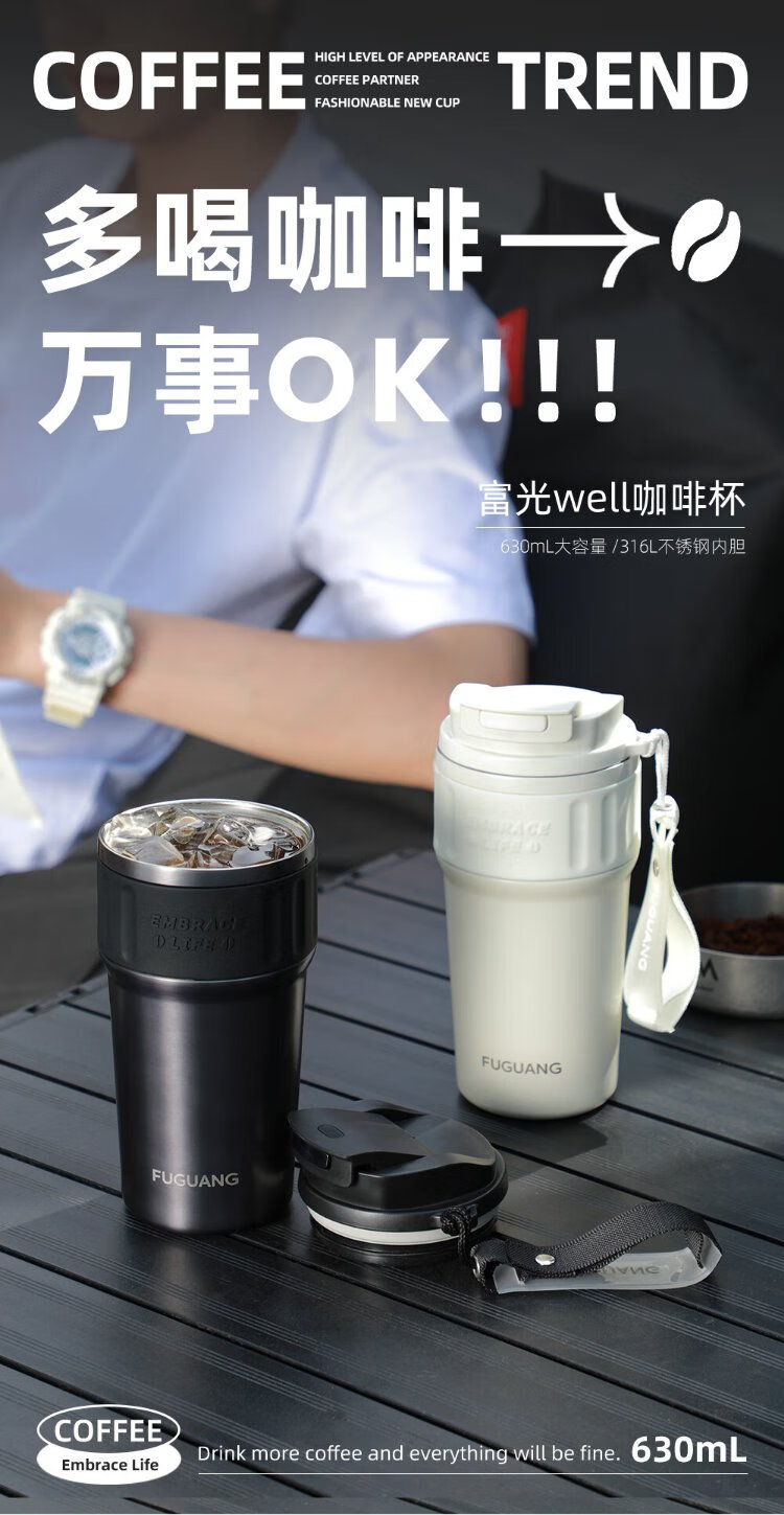 Fuguang Coffee Cup Insulated Tea Cup Men's Large Capacity 316L Stainless Steel Portable Car Business Tea Cup