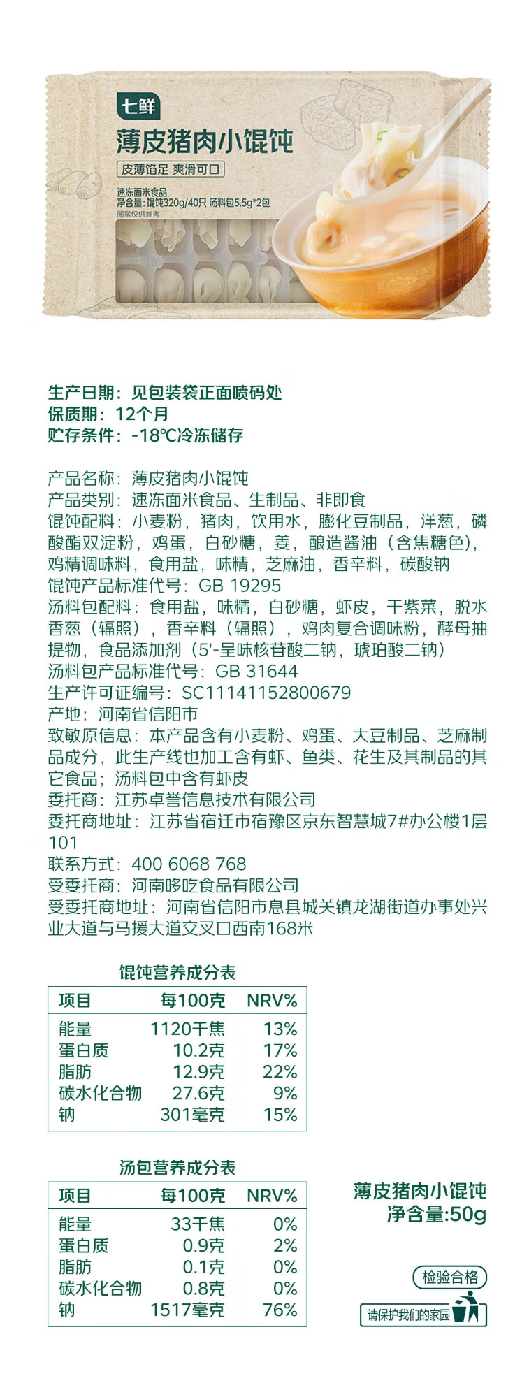 Qixian thin-skinned pork wontons 331g (contains 40 pieces)