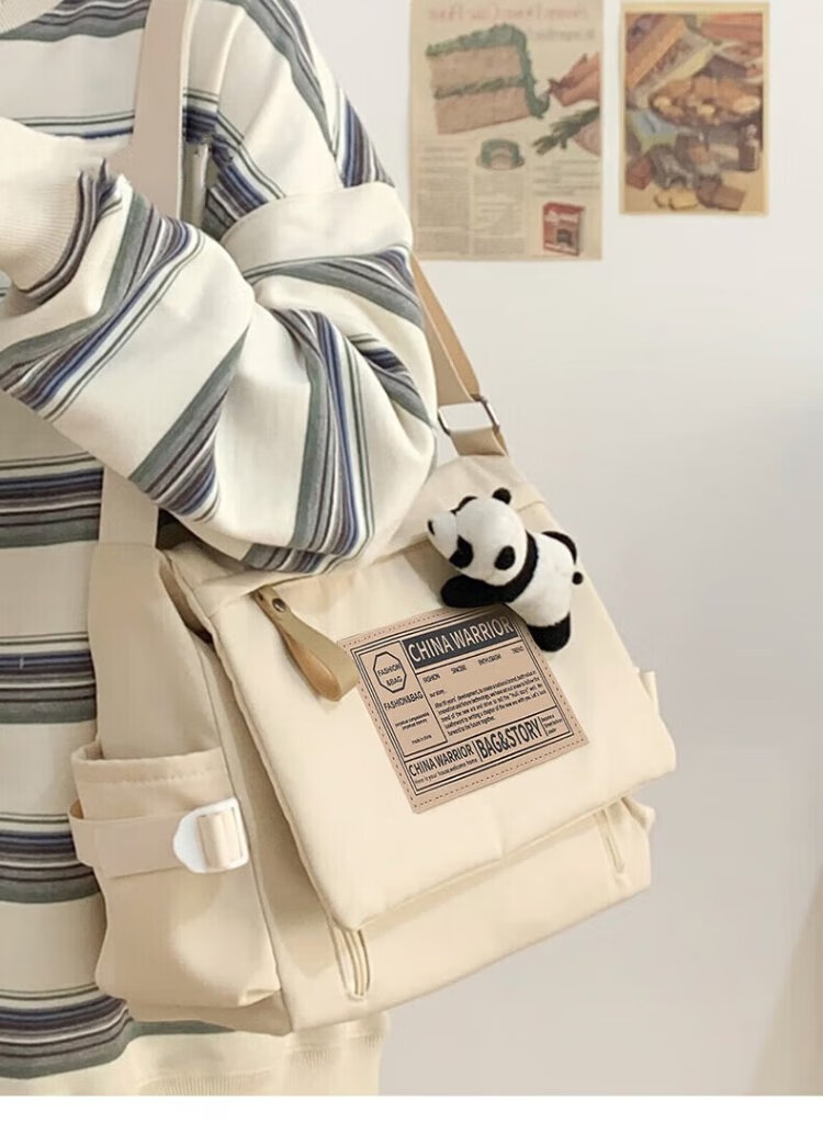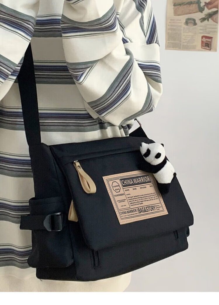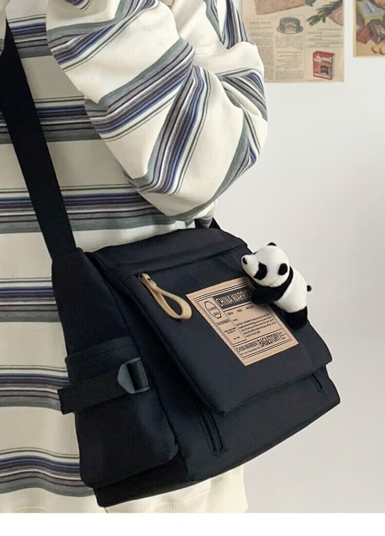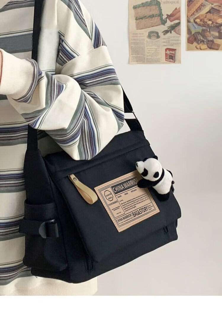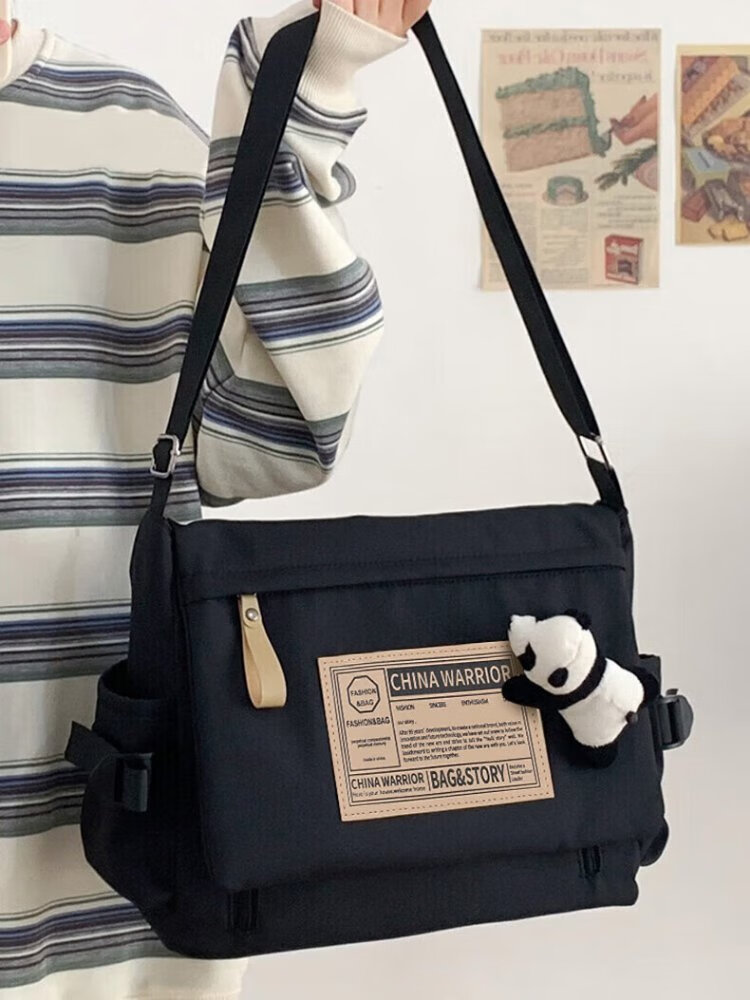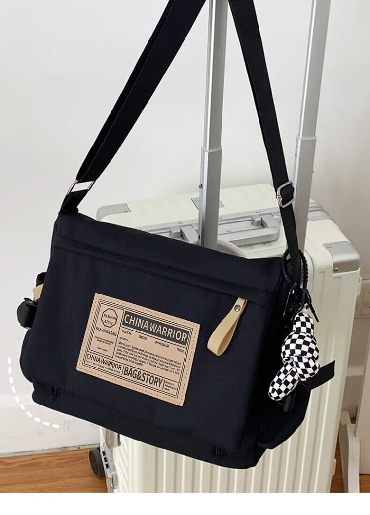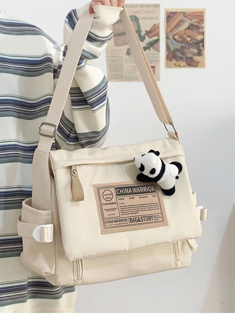 Pull back shoulder bag men's large-capacity cross-body commuter lightweight messenger bag Korean version trendy college couple class backpack women