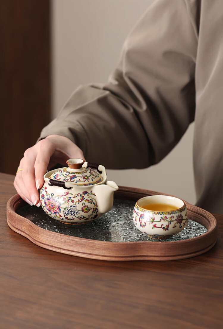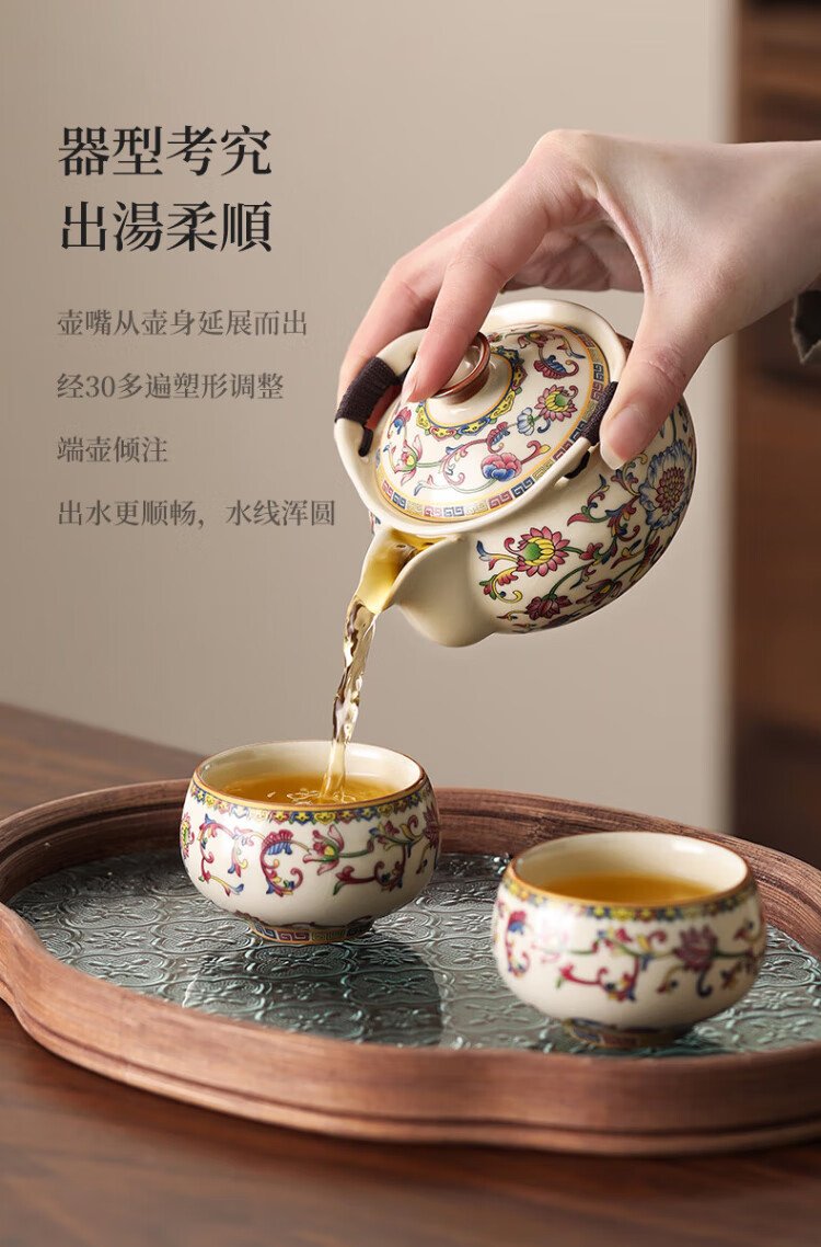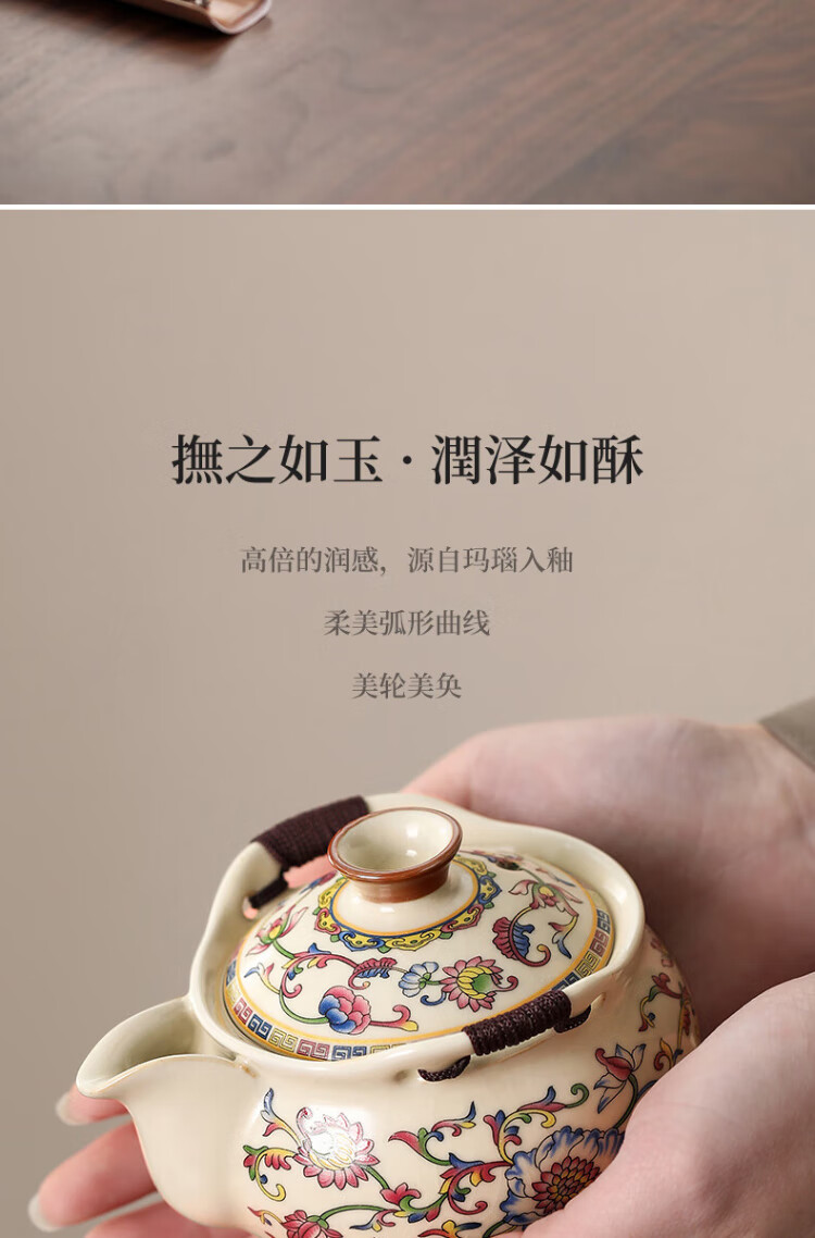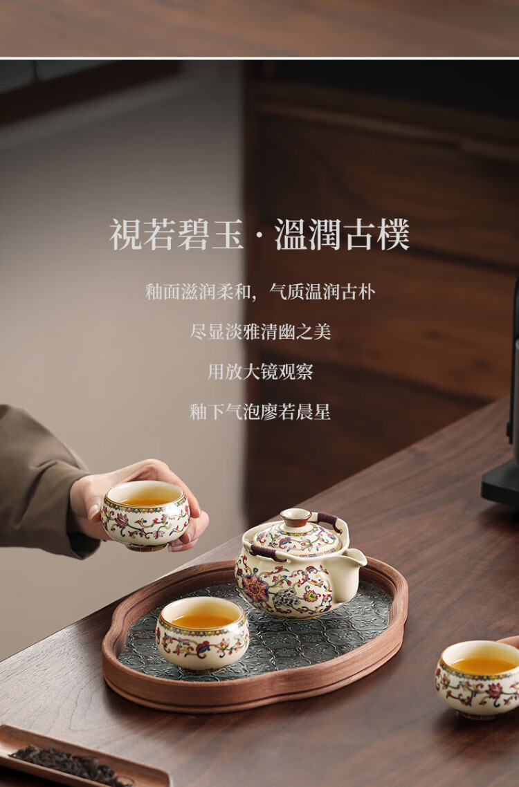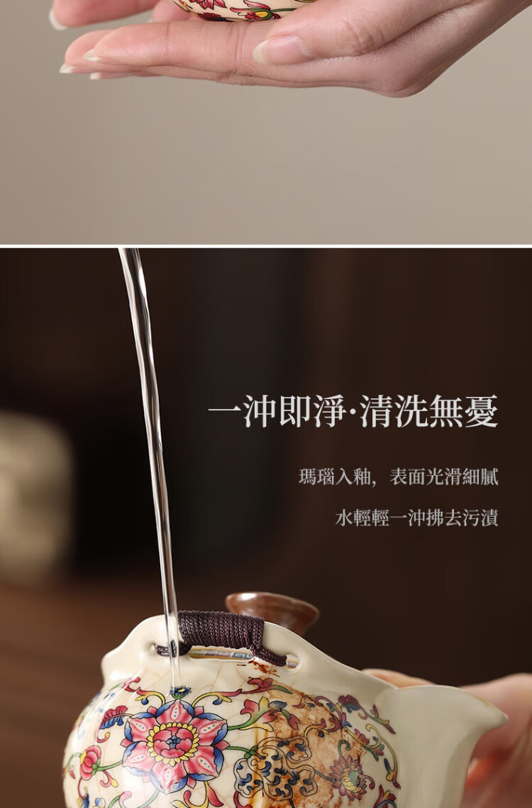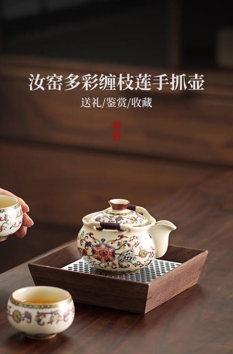 Buchuo Ru kiln hand-caught pot tea bowl single two-person cover bowl single tea set one person drinking tea cup colorful anti-scald teapot