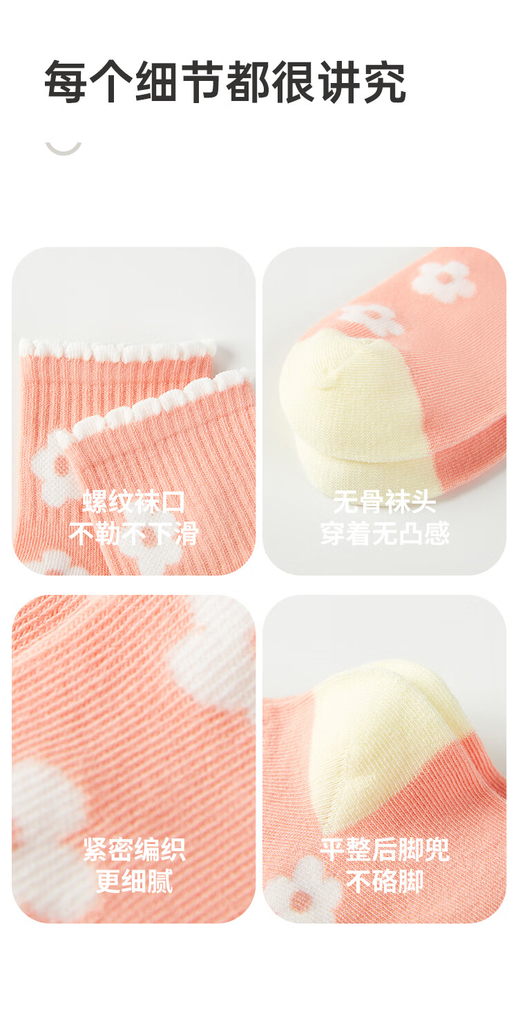 DEESHA 7A Antibacterial Five Pairs Girls' Socks All Seasons Boneless and Feet-Free Baby Cotton Socks Breathable and Anti-pilling