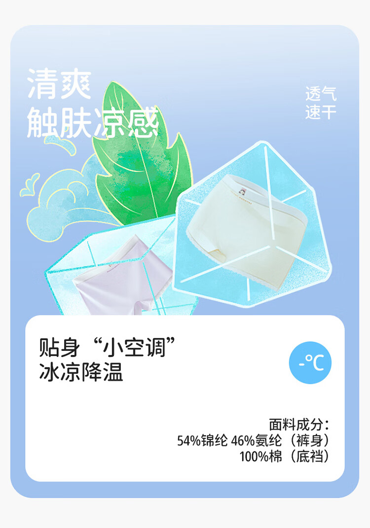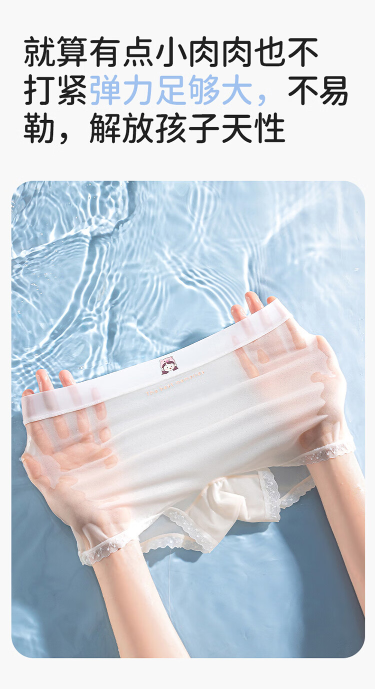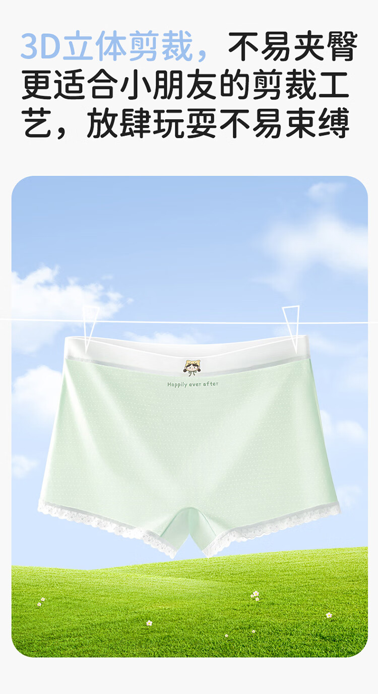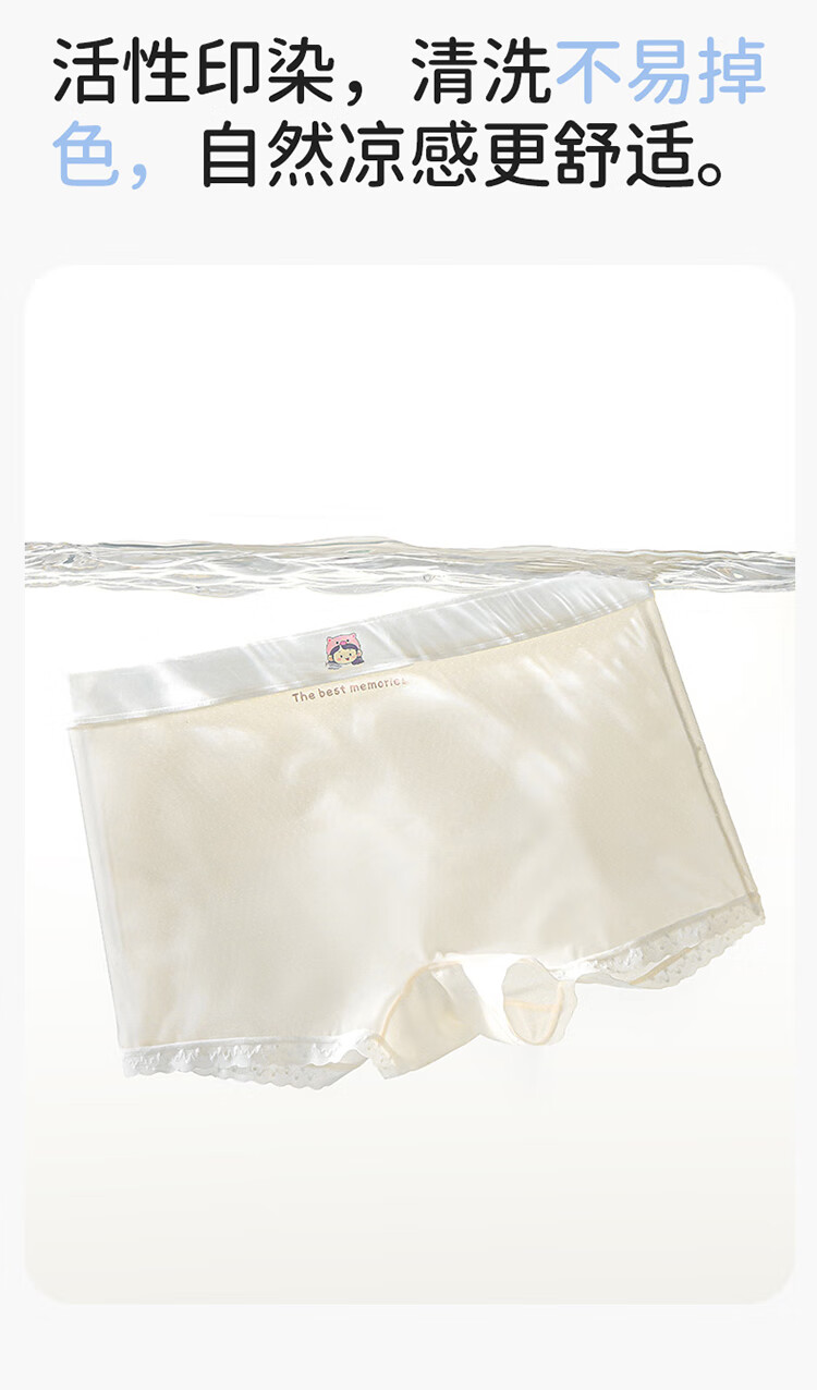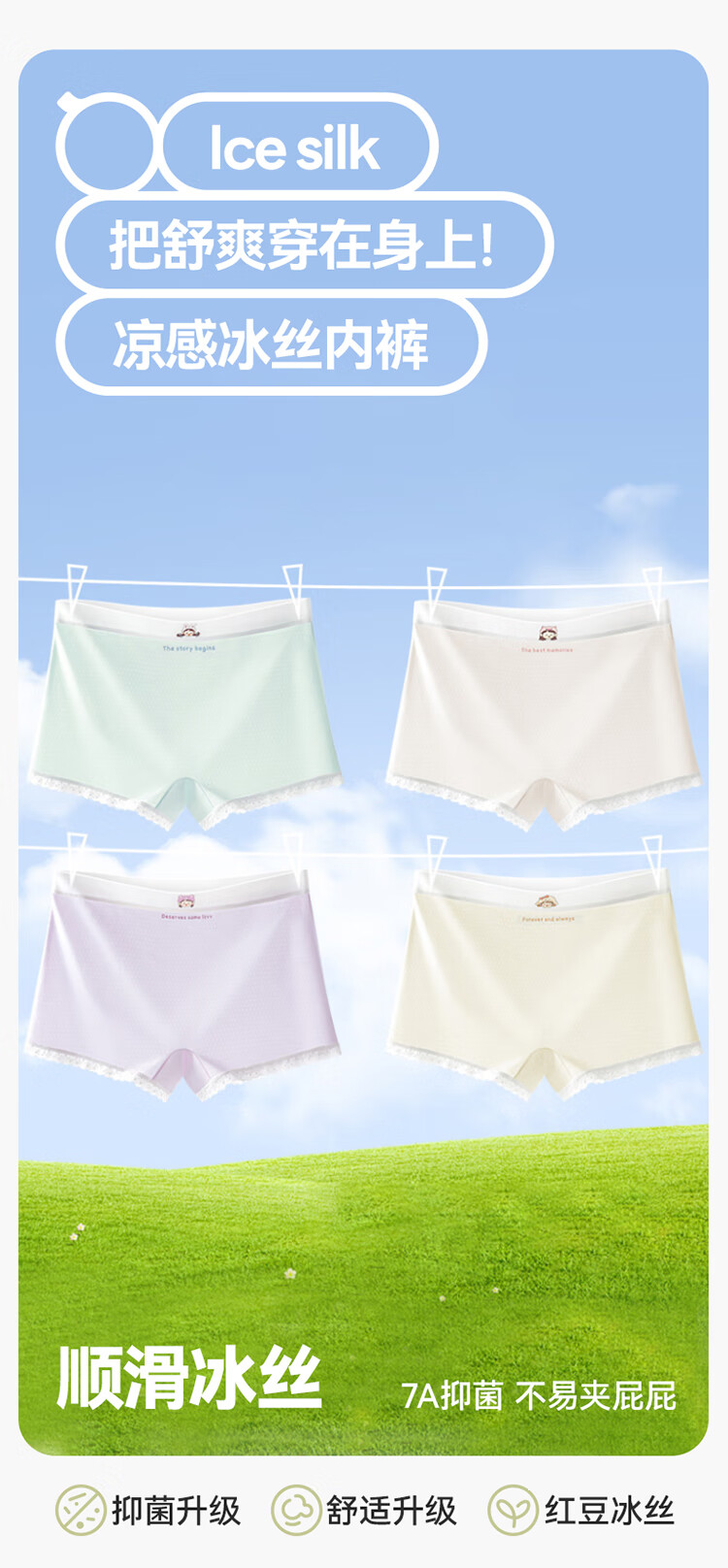 Red bean girls' underwear, summer thin, comfortable, breathable, antibacterial and traceless, 3-pack of square-corner safety underwear for girls during development period