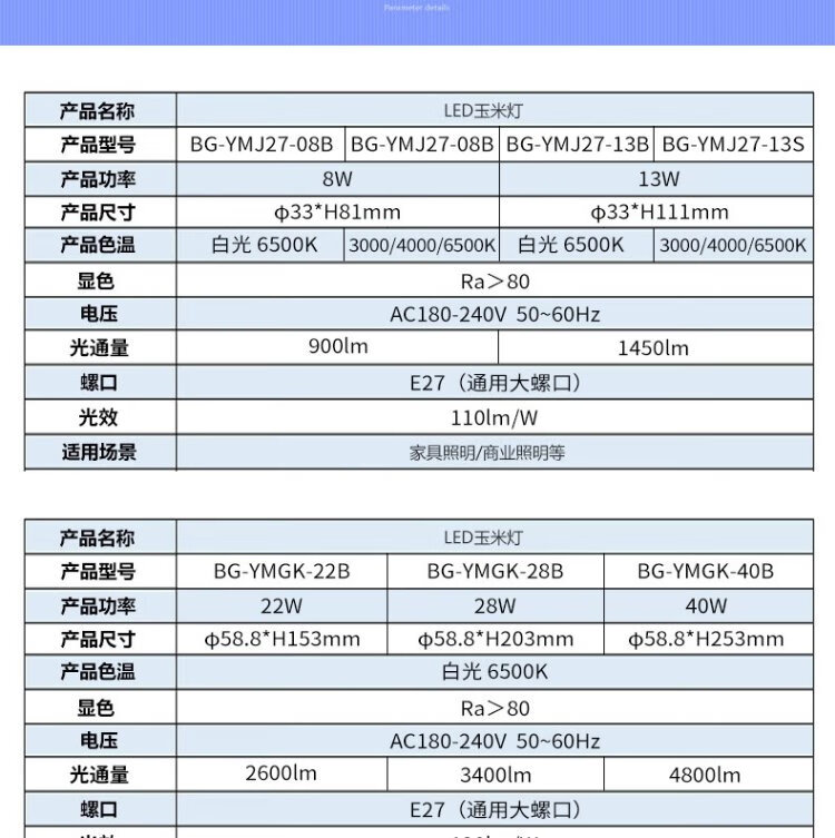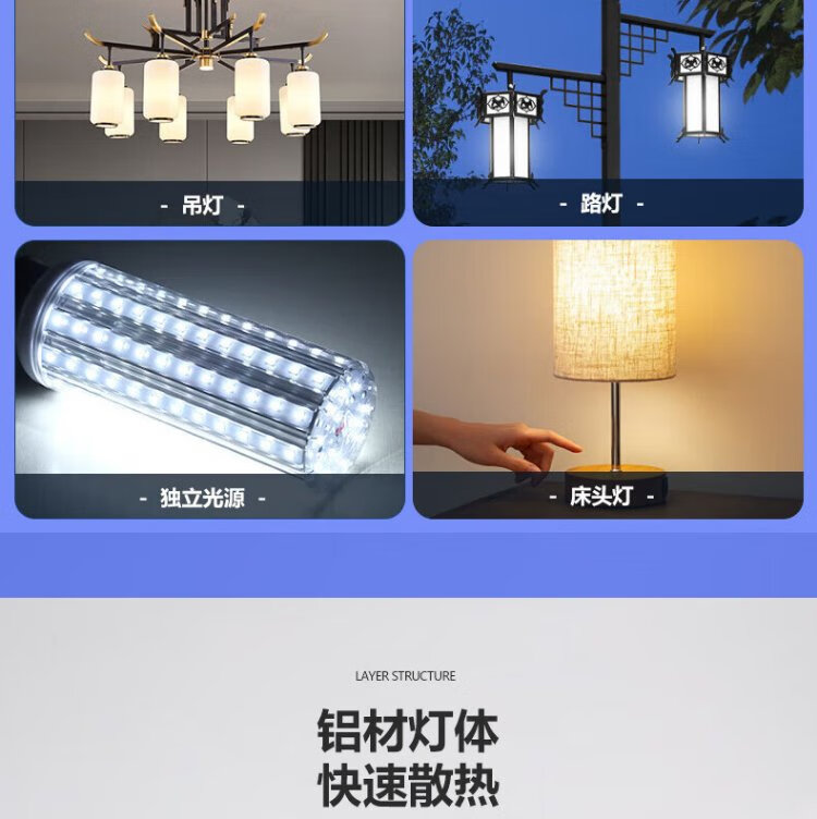 Beigong LED light bulb corn light bulb 8W three-tone lighting E27 large screw chandelier household high-brightness light source