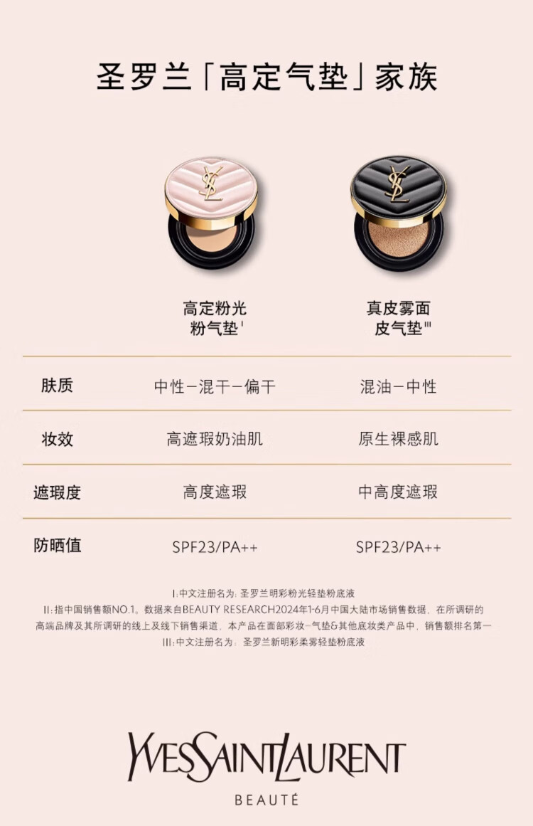 Yves Saint Laurent (YSL) Powder Cushion 12g Bright Color Light Cushion Liquid Foundation B20 Long-lasting Concealer Moisturizing Delicate Fit Final Clearance