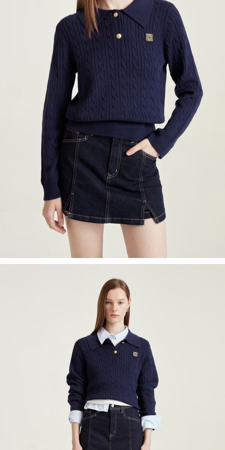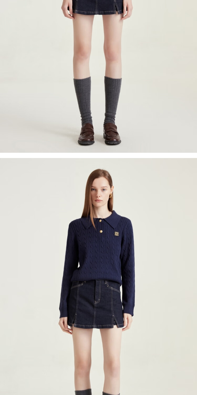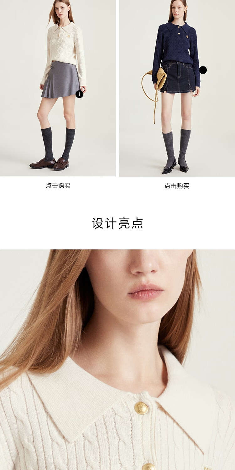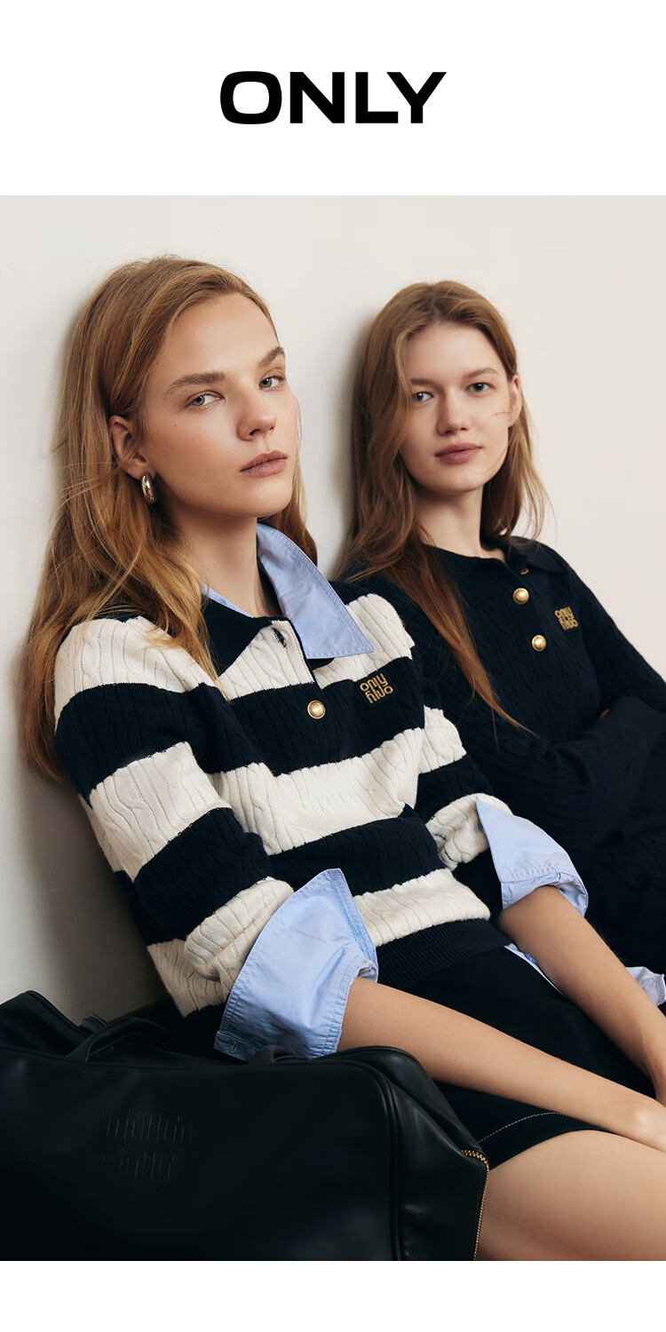 ONLY ONLY2024 autumn woolen college style pullover lapel loose knitted sweater for women|125313041