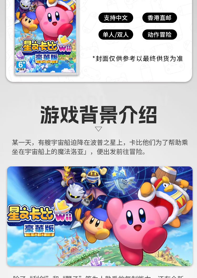 Nintendo Kirby Wii Deluxe Edition Switch Game Cartridge Hong Kong Version Chinese