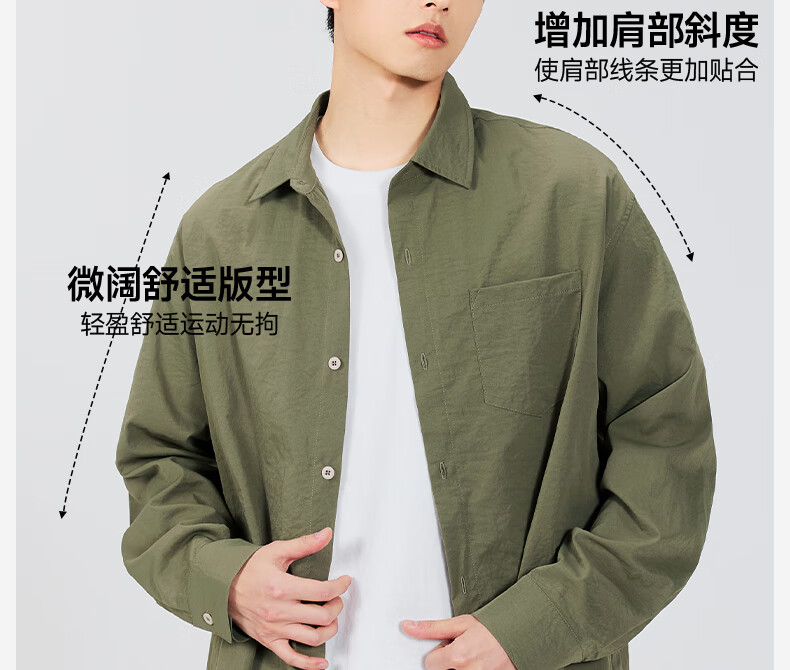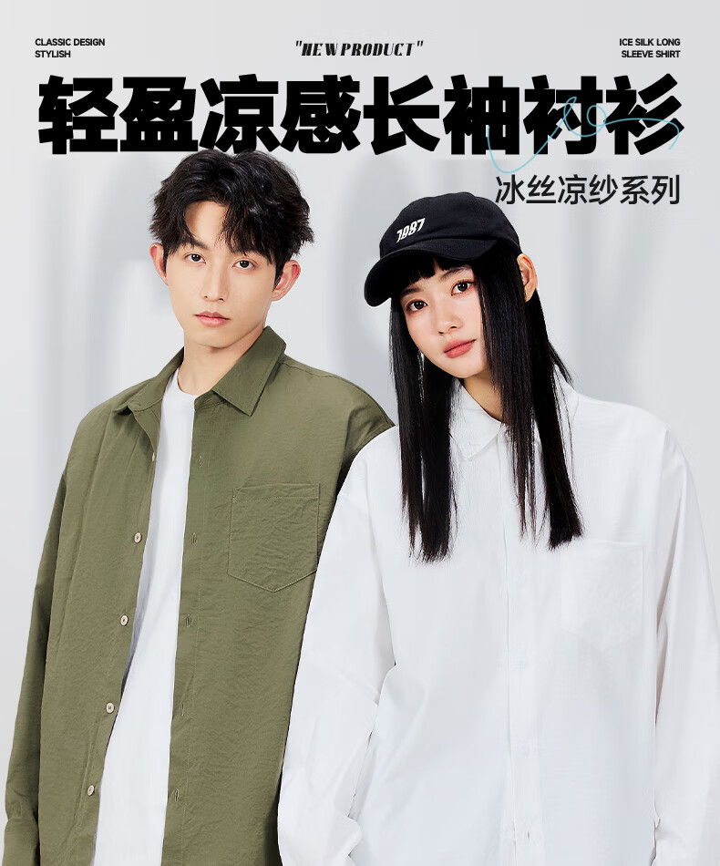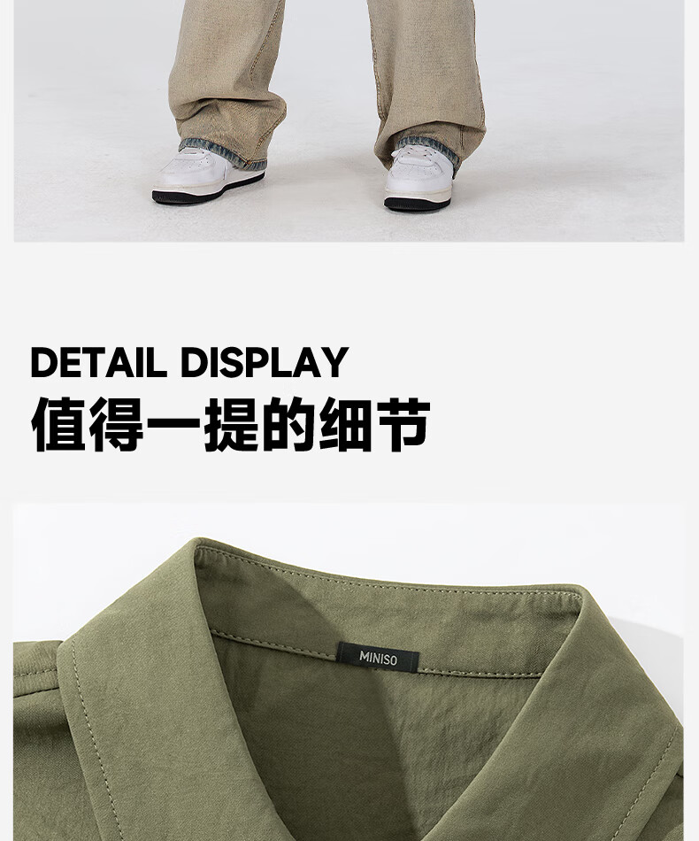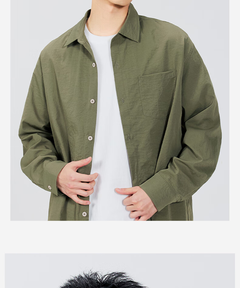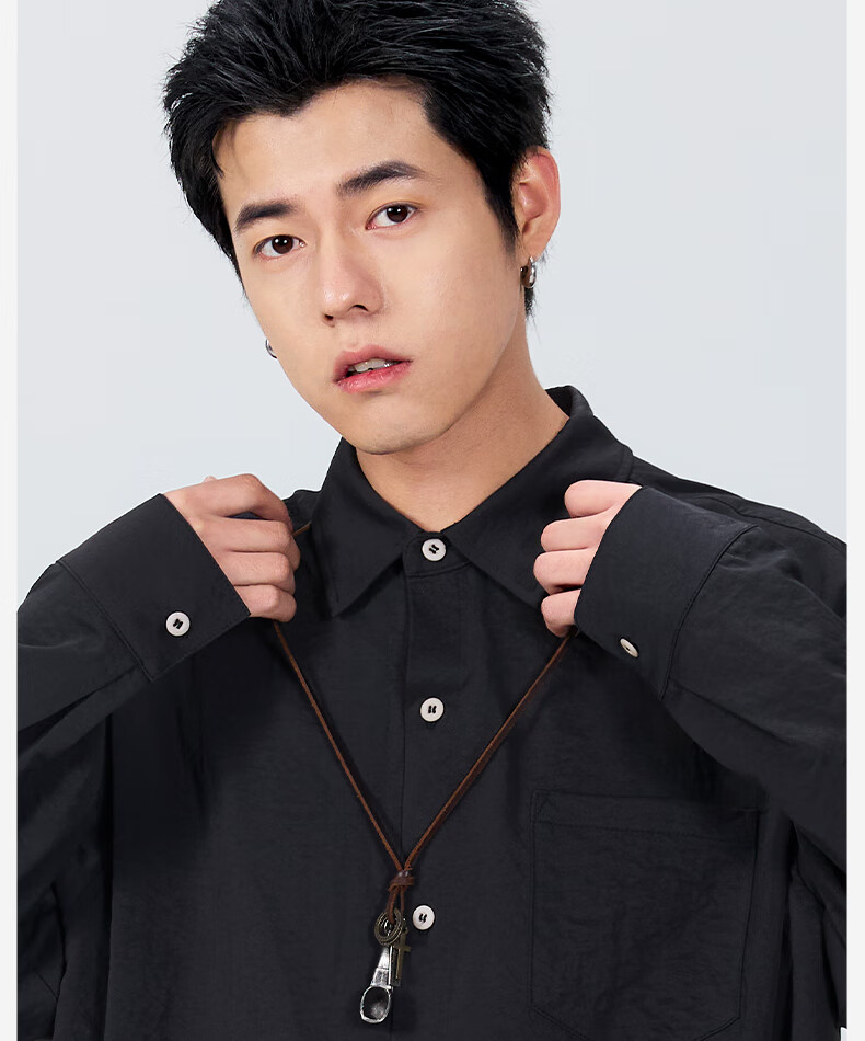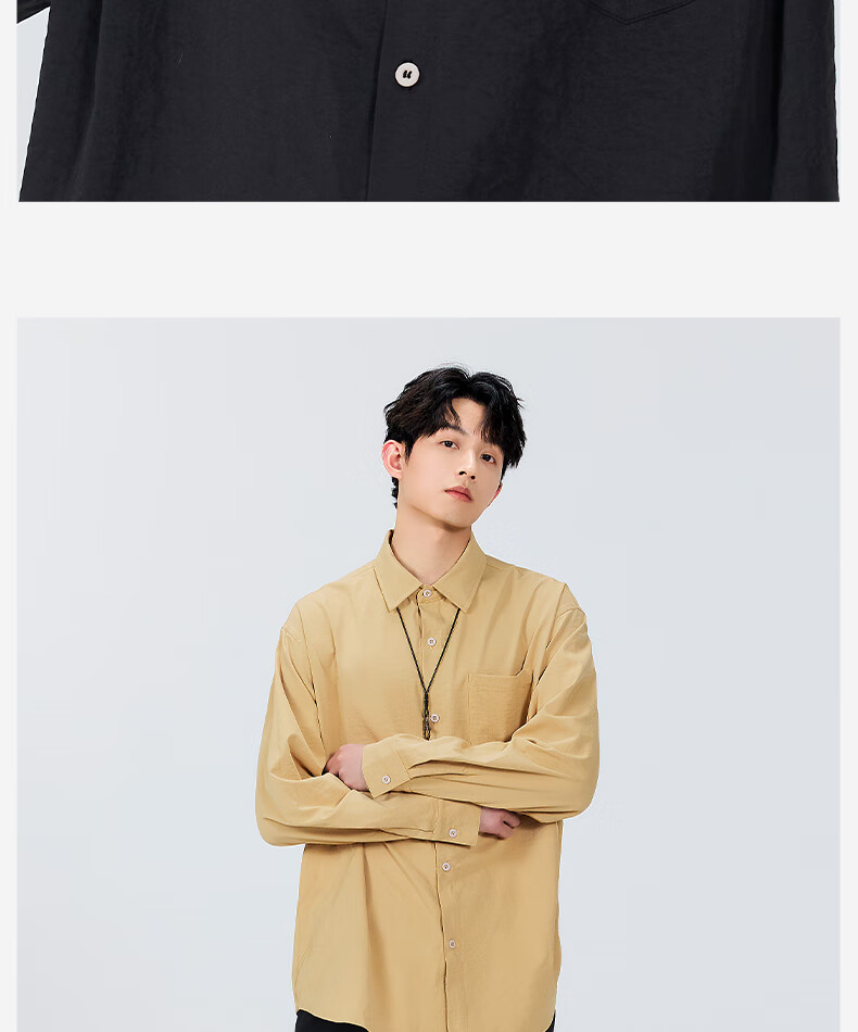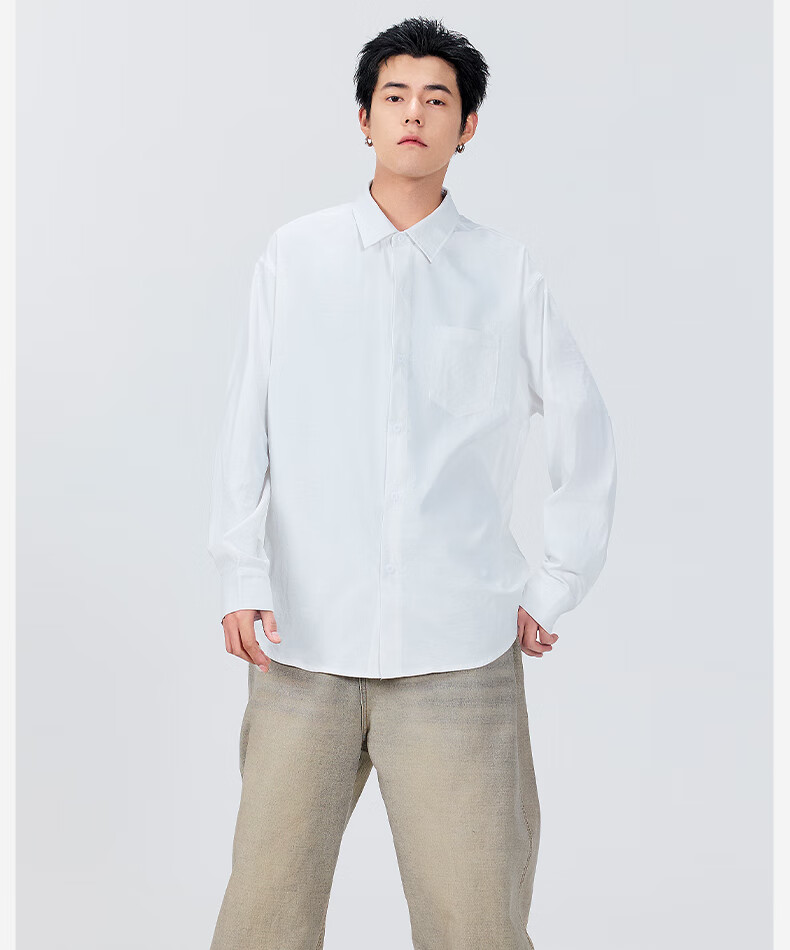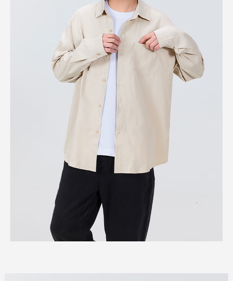 MINISO ice silk shirt men's spring all-match basic men's high-end lapel trendy long-sleeved shirt light rice XL