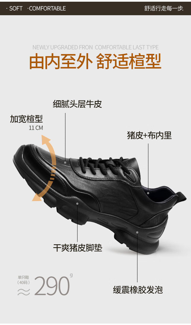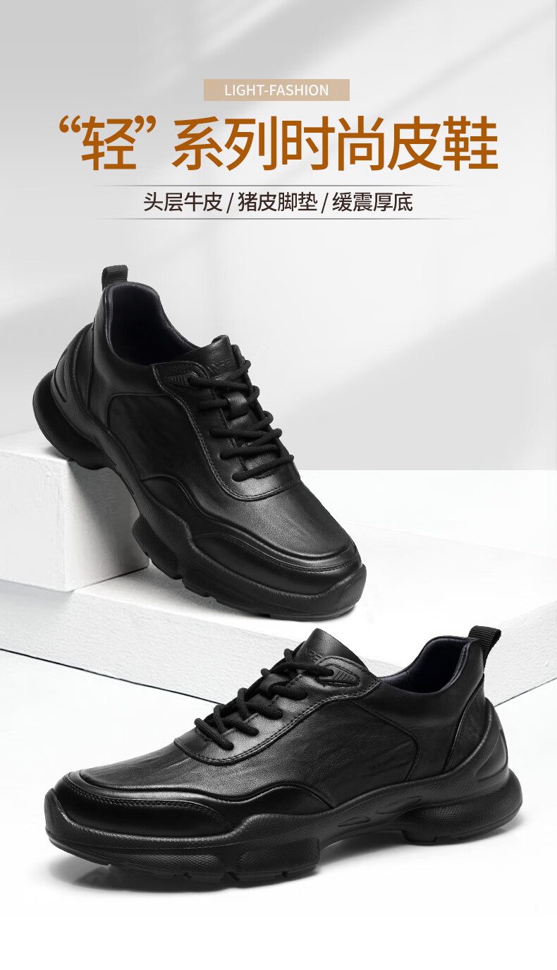 Strongman lightweight and breathable business walking toe-layer cowhide fashionable sports and casual men's shoes JDA323011 black 42
