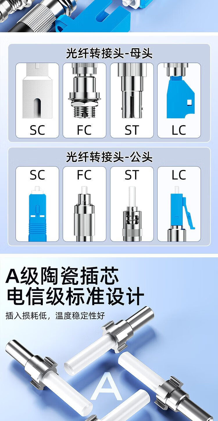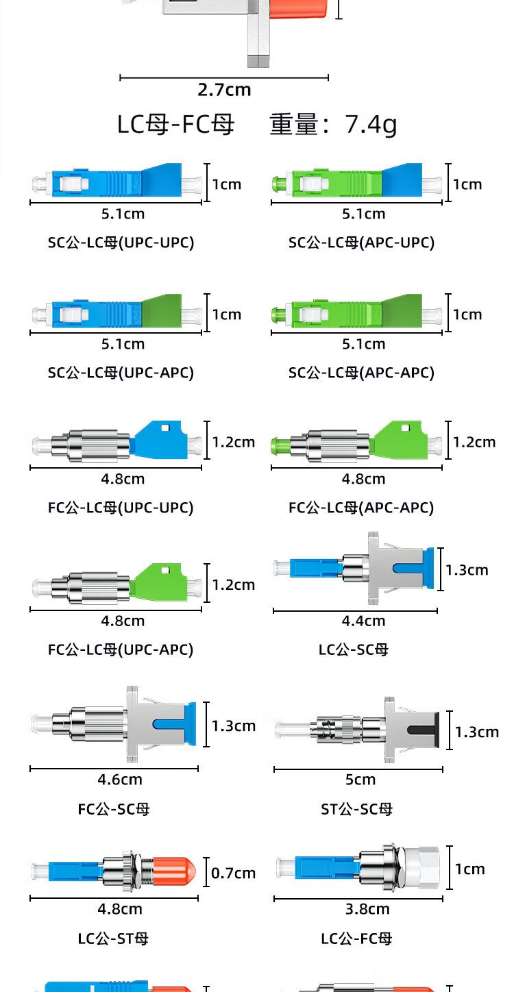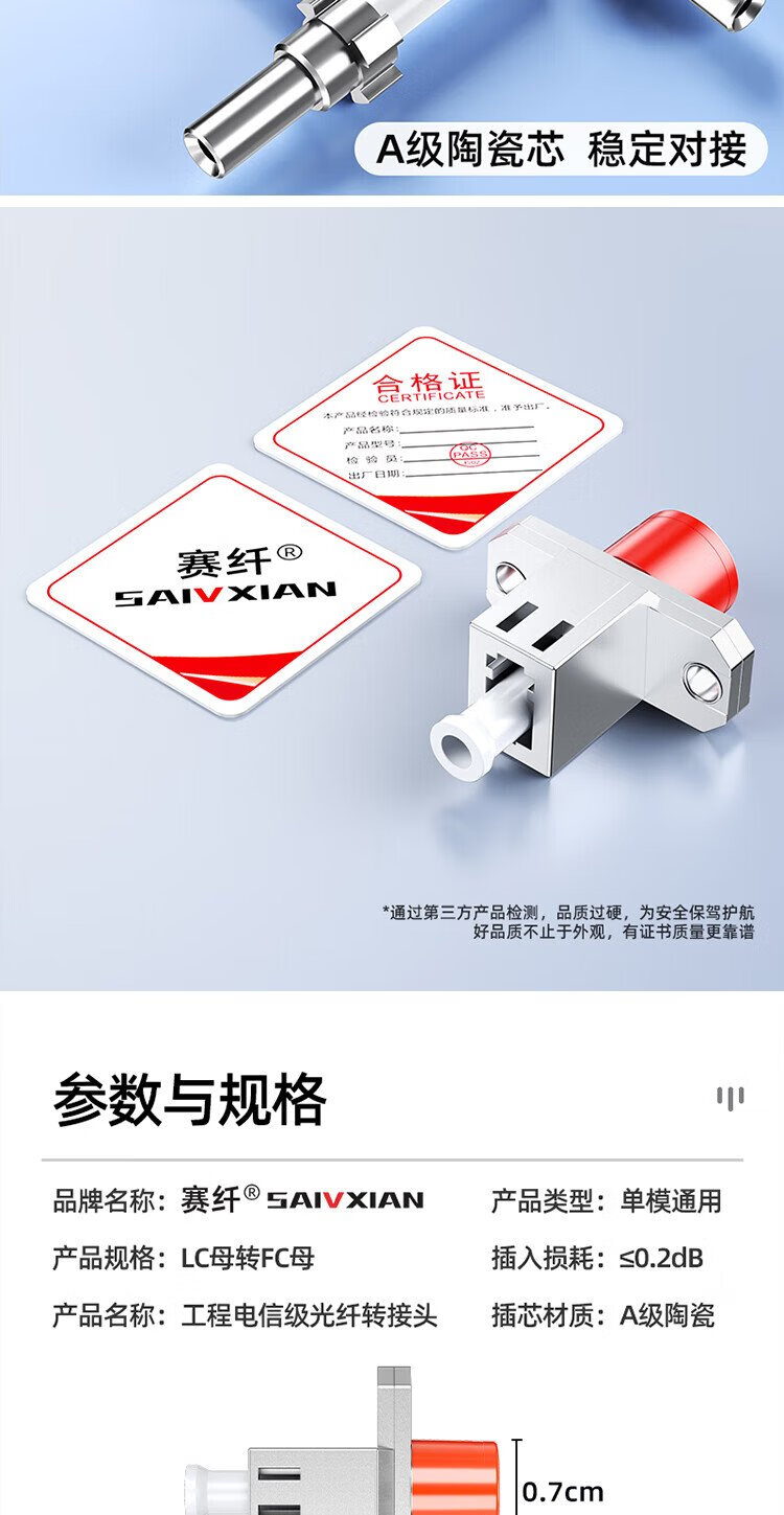 Sai fiber fiber optic adapter LC-FC double female head carrier grade fiber optic coupler round to square head optical power red light pen docking connector flange extender