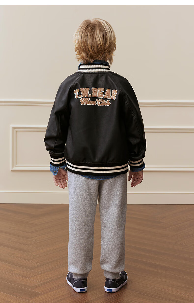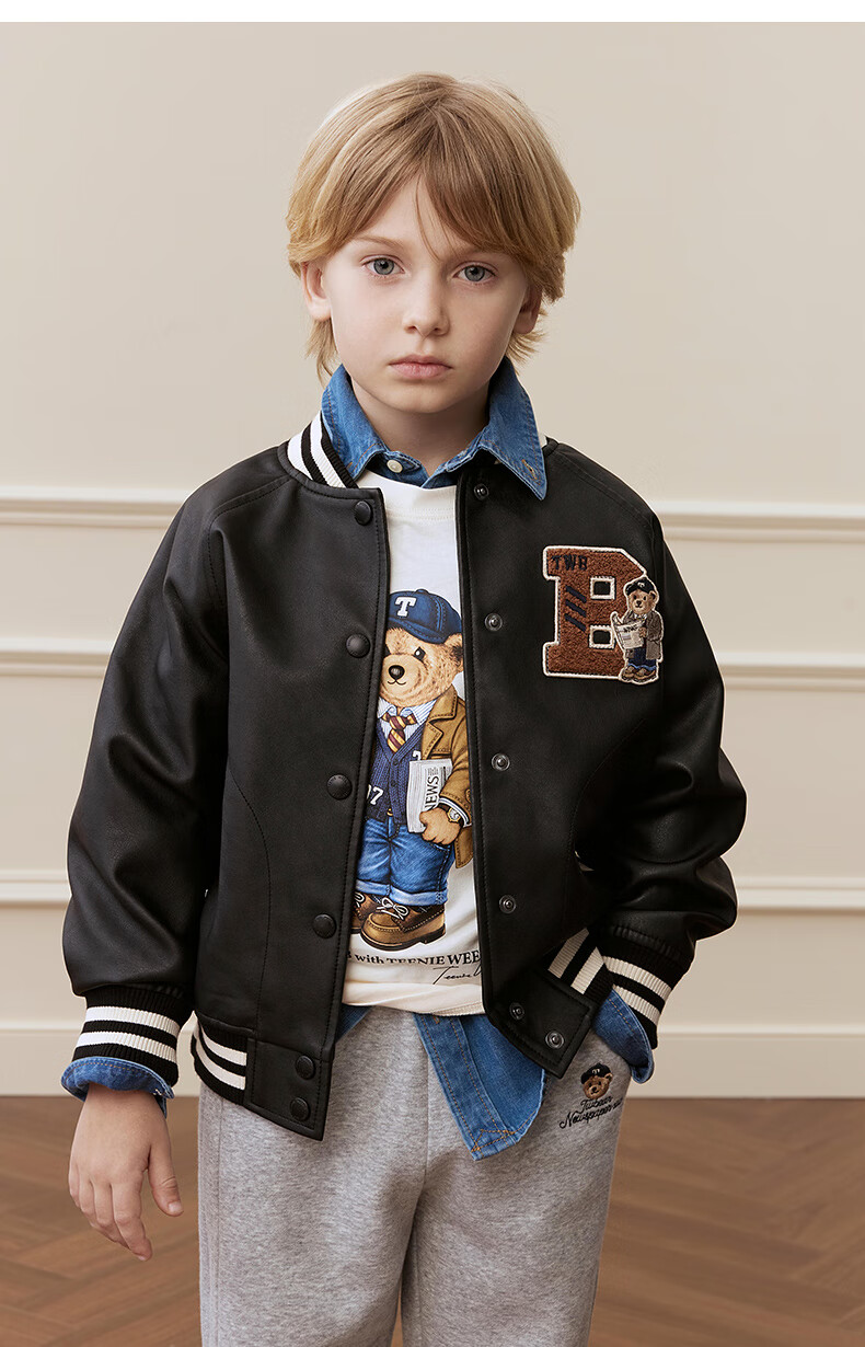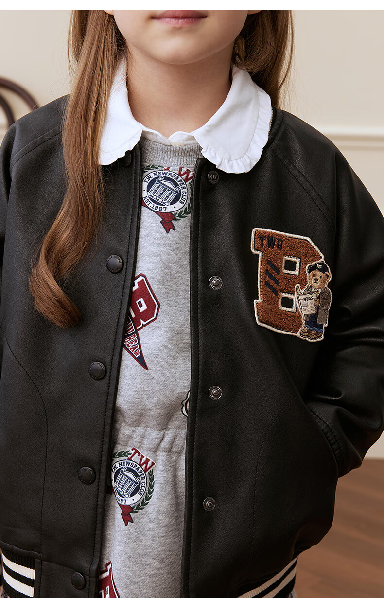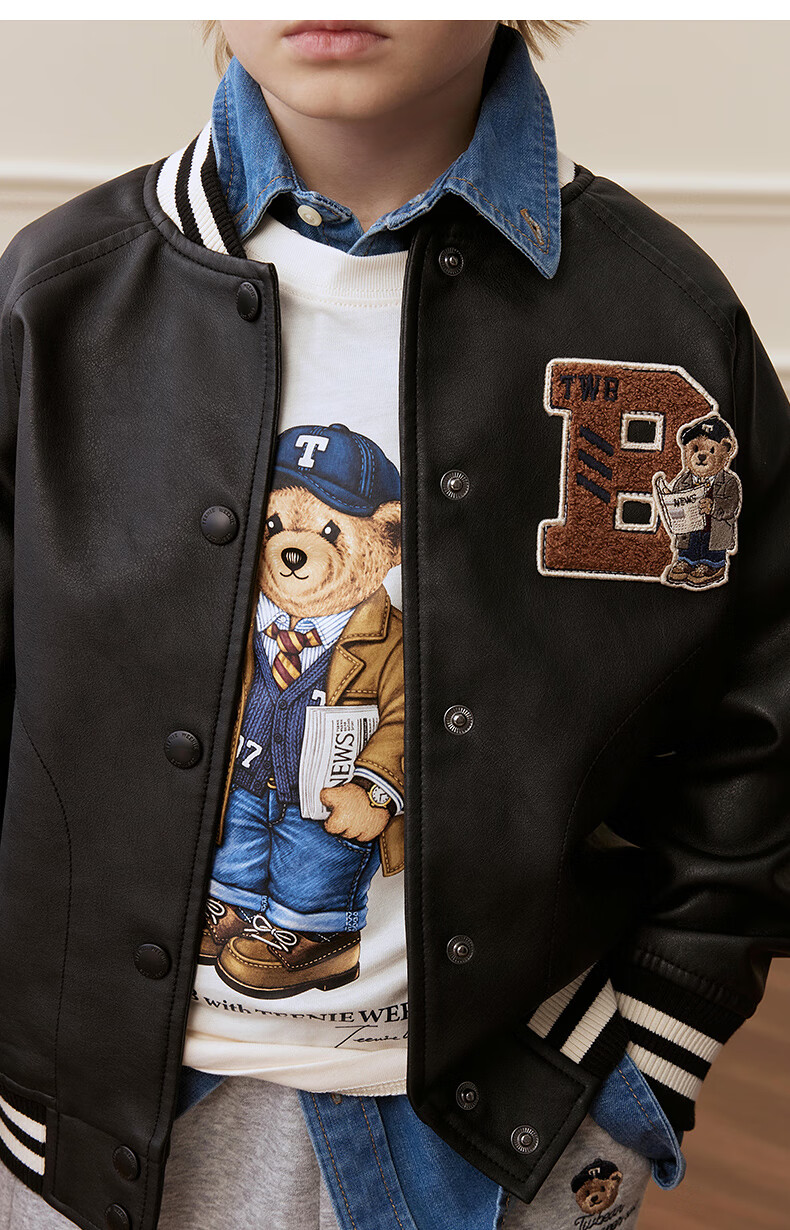 Teenie Weenie Kids 25 new style autumn boys and girls fashion baseball collar jacket black 140cm