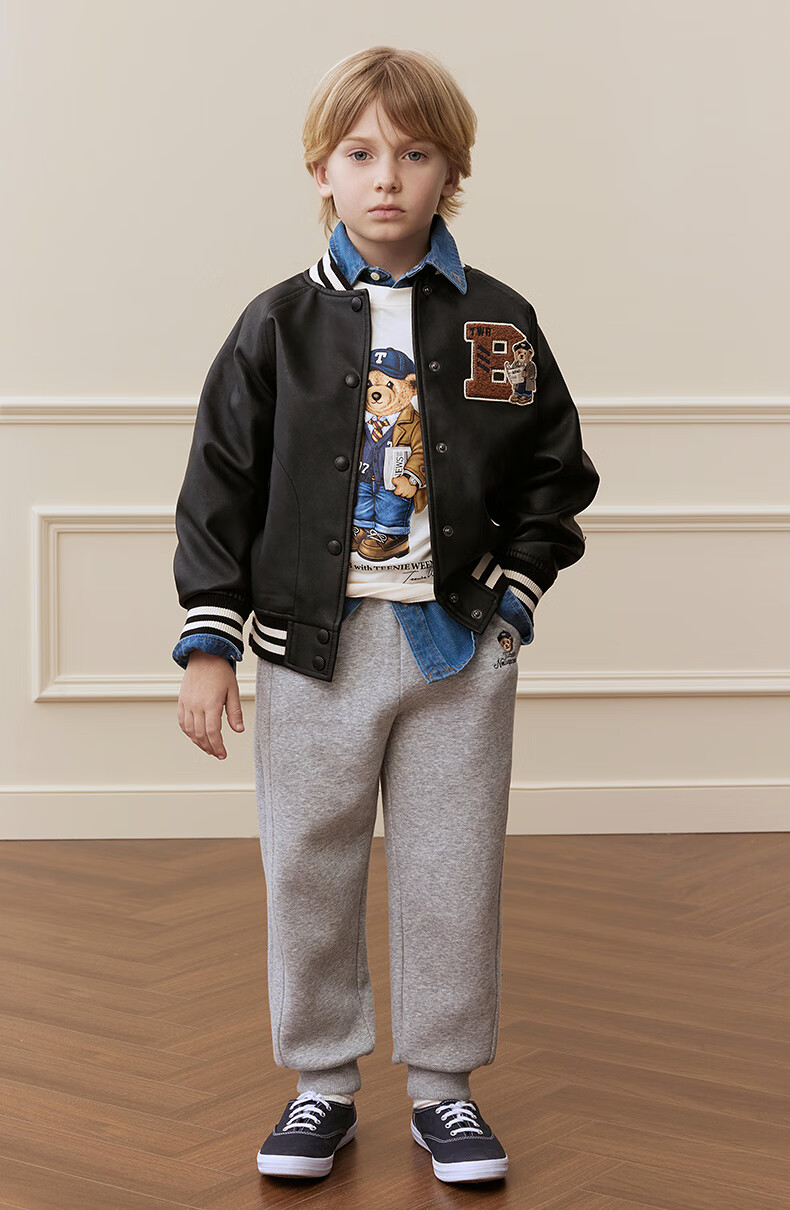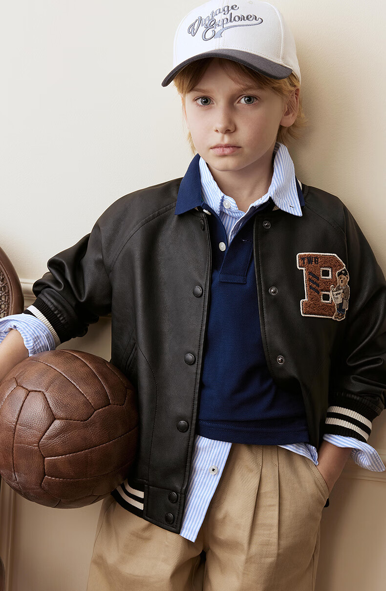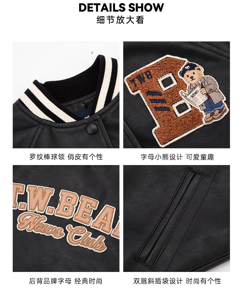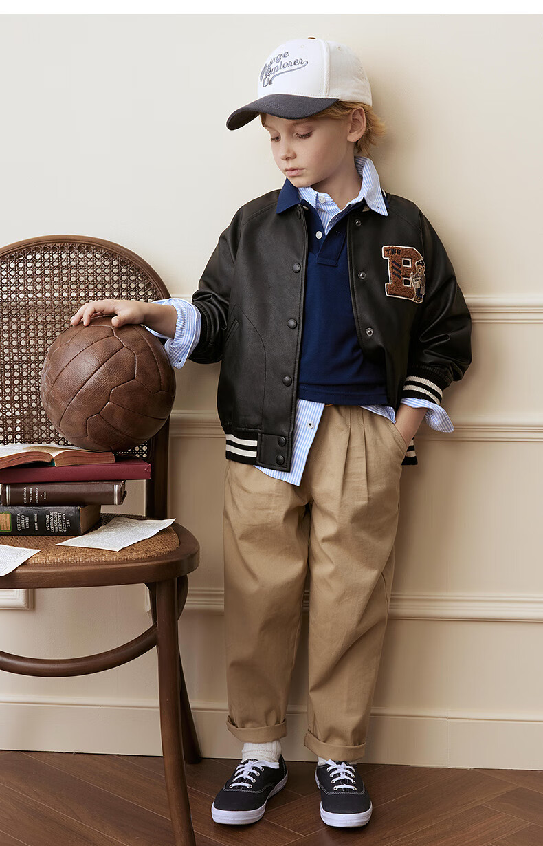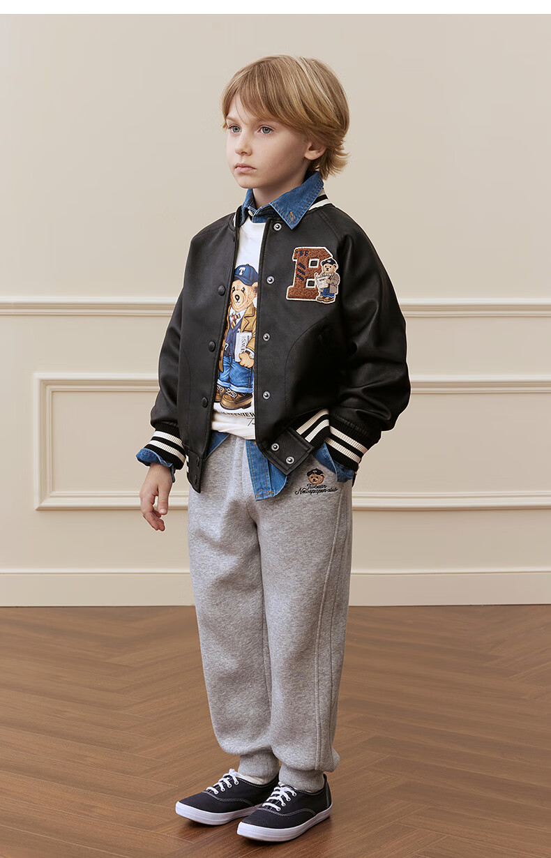 Teenie Weenie Kids 25 new style autumn boys and girls fashion baseball collar jacket black 140cm