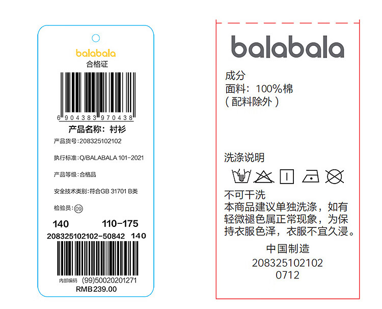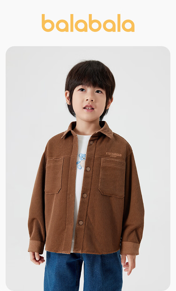 Bala Balaone Boys' Shirt Children's Long Sleeve 2025 Autumn Corduroy Loose Top 208325102102