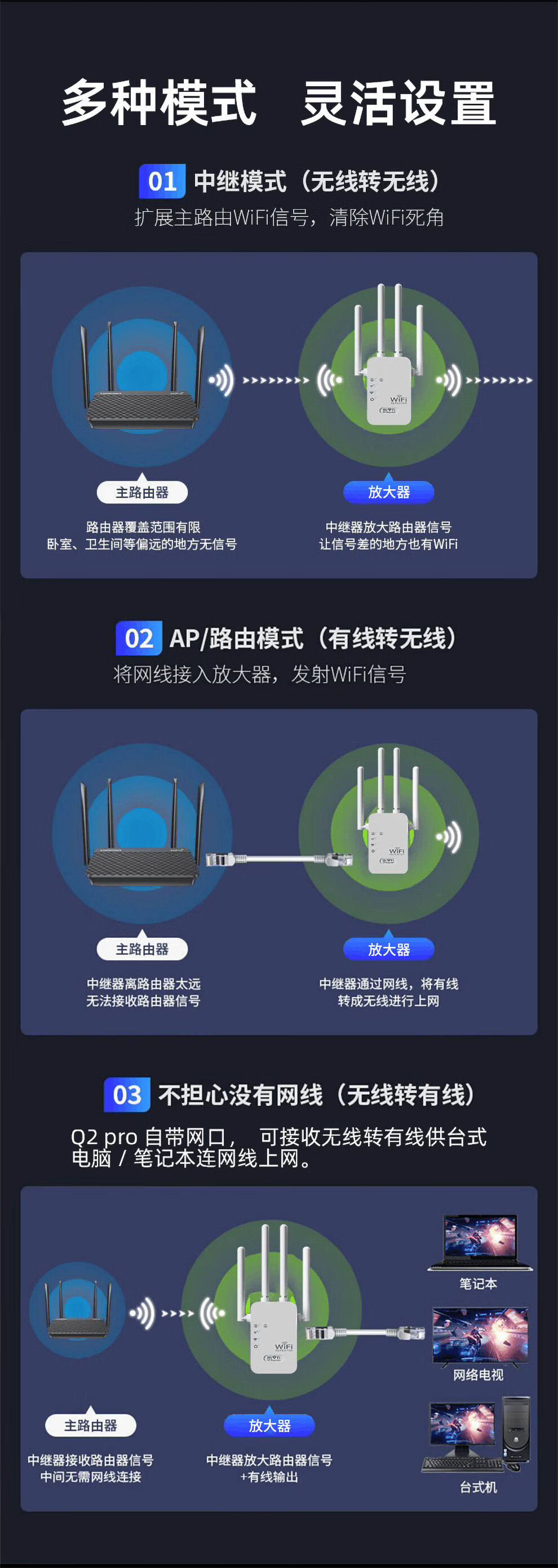 TENGFEI wifi signal amplifier 300M wireless network repeater extender four antennas strong through the wall home wireless router WiFi signal booster