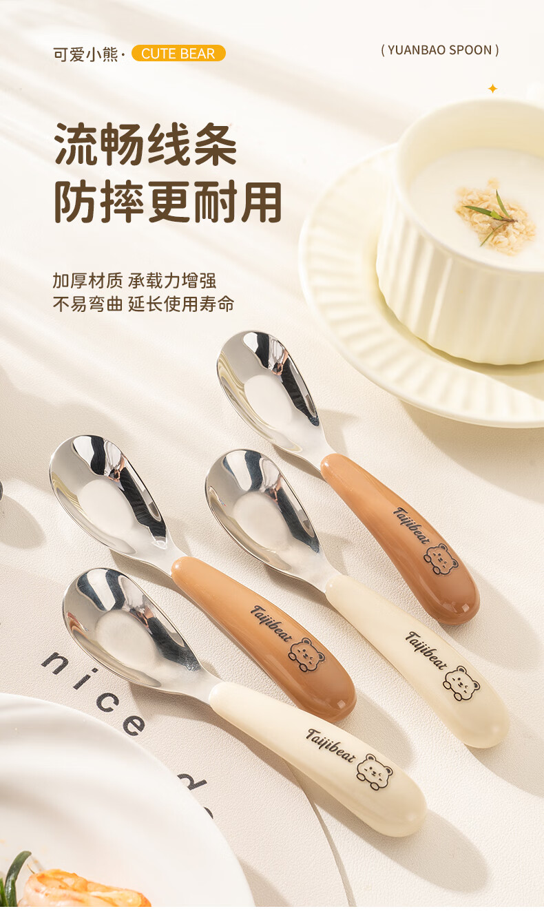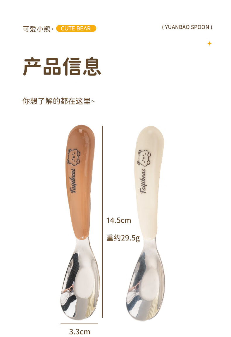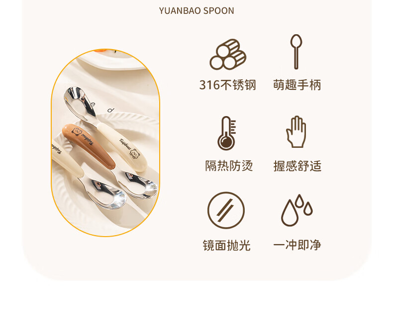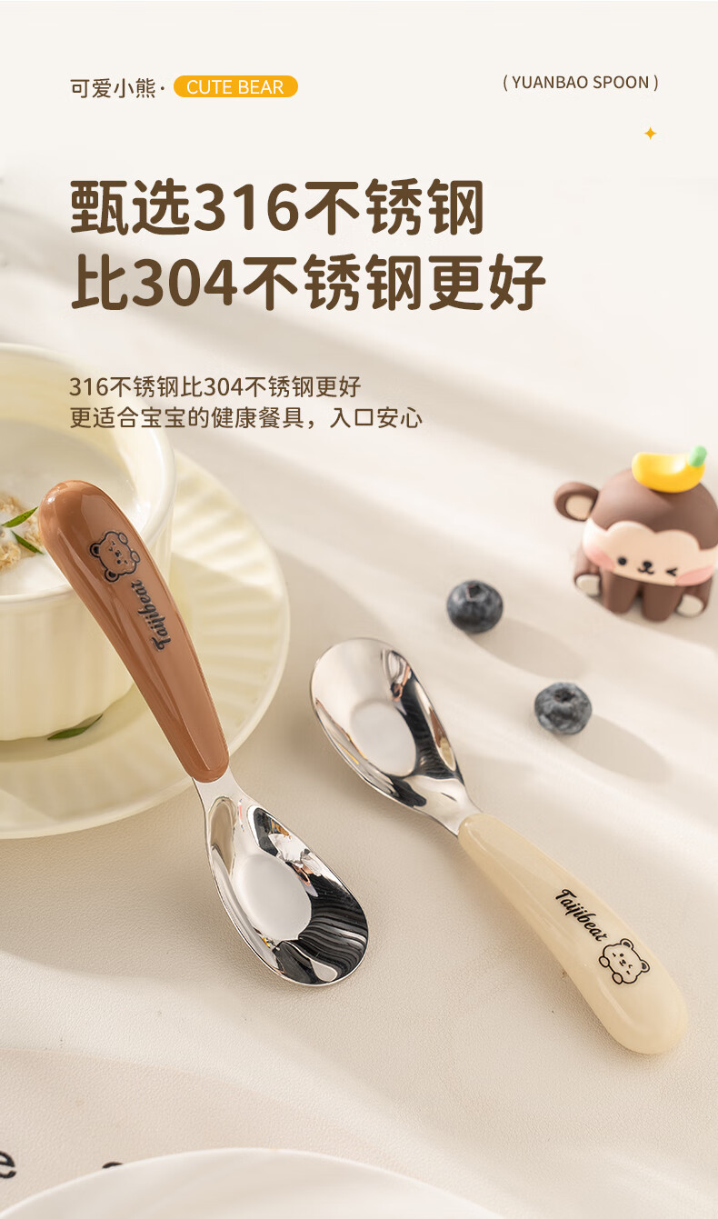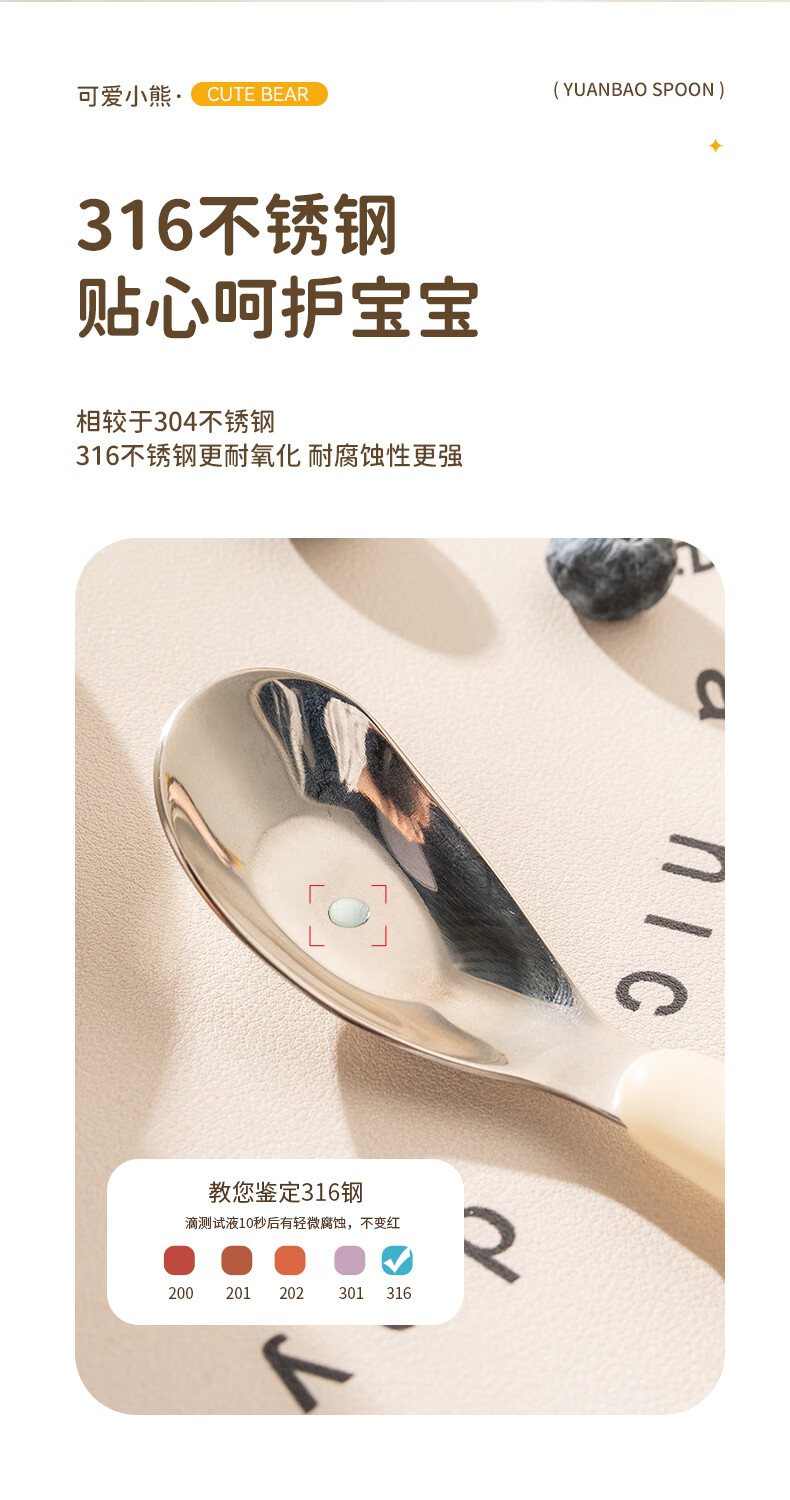 Guangyi baby spoon baby feeding spoon 316 stainless steel children's training eating tableware two pack GY1408