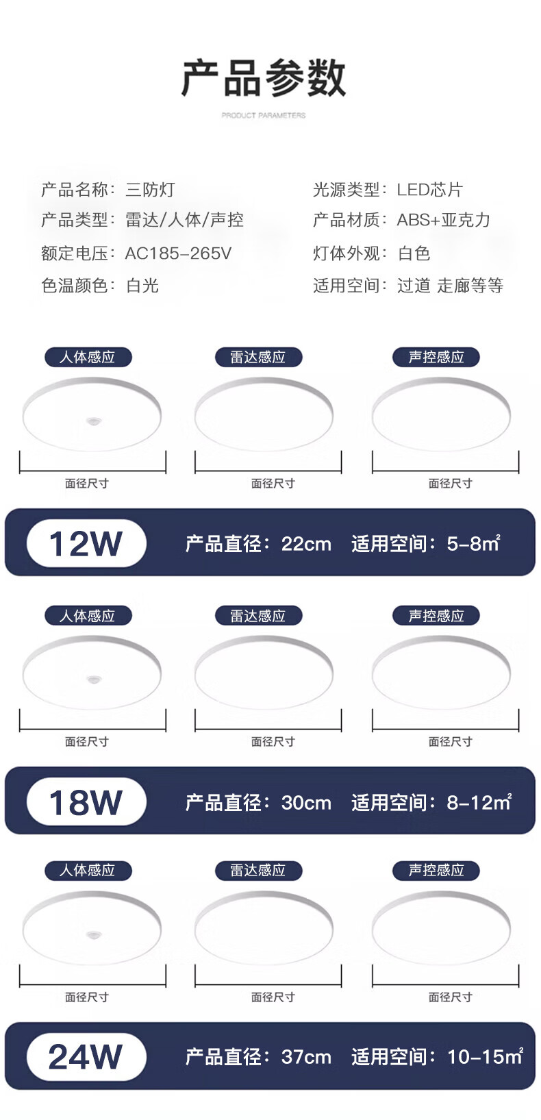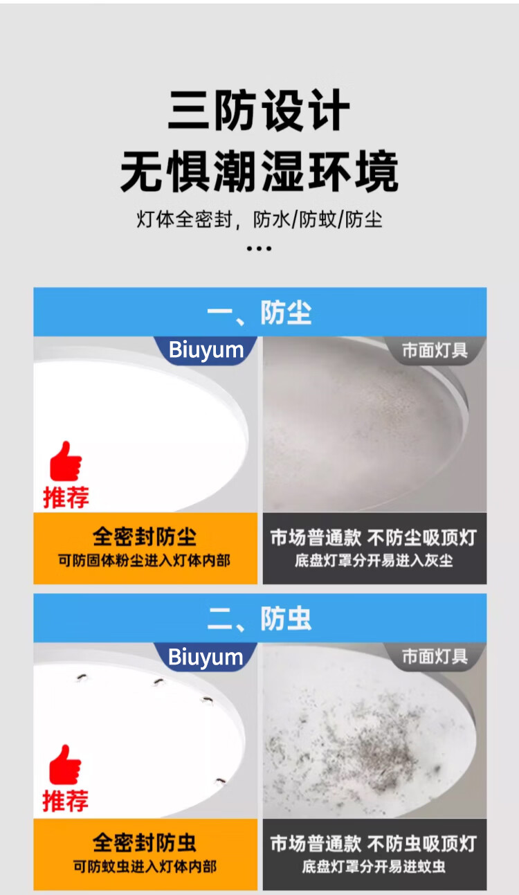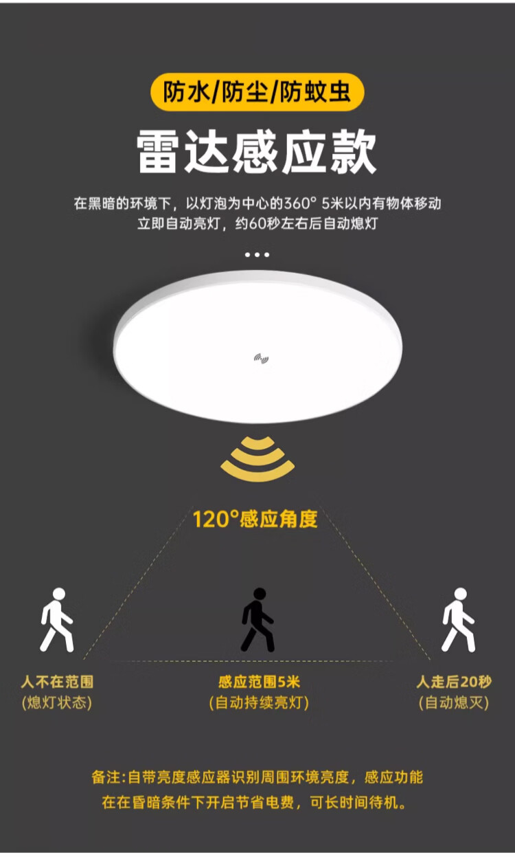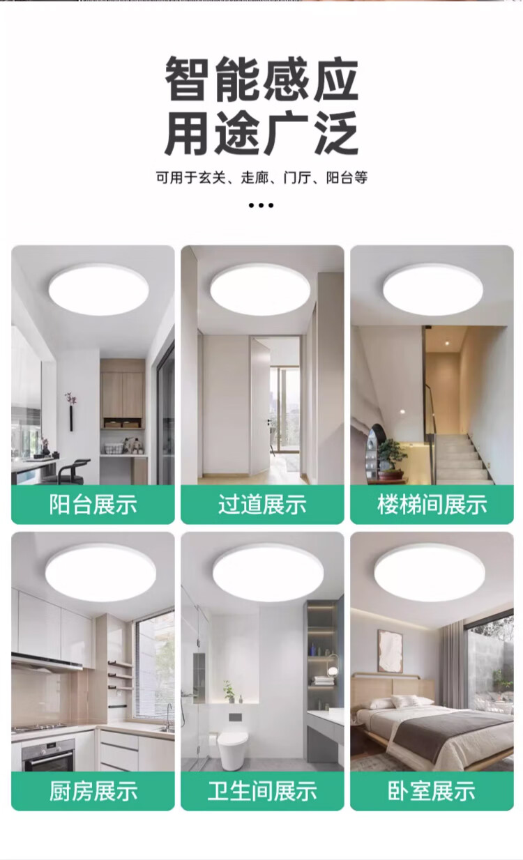 Biuyum human body sensing ceiling lamp LED three-proof ceiling lamp engineering stair aisle corridor corridor light ultra-thin smart lamp 24W-diameter 37cm-human body sensing