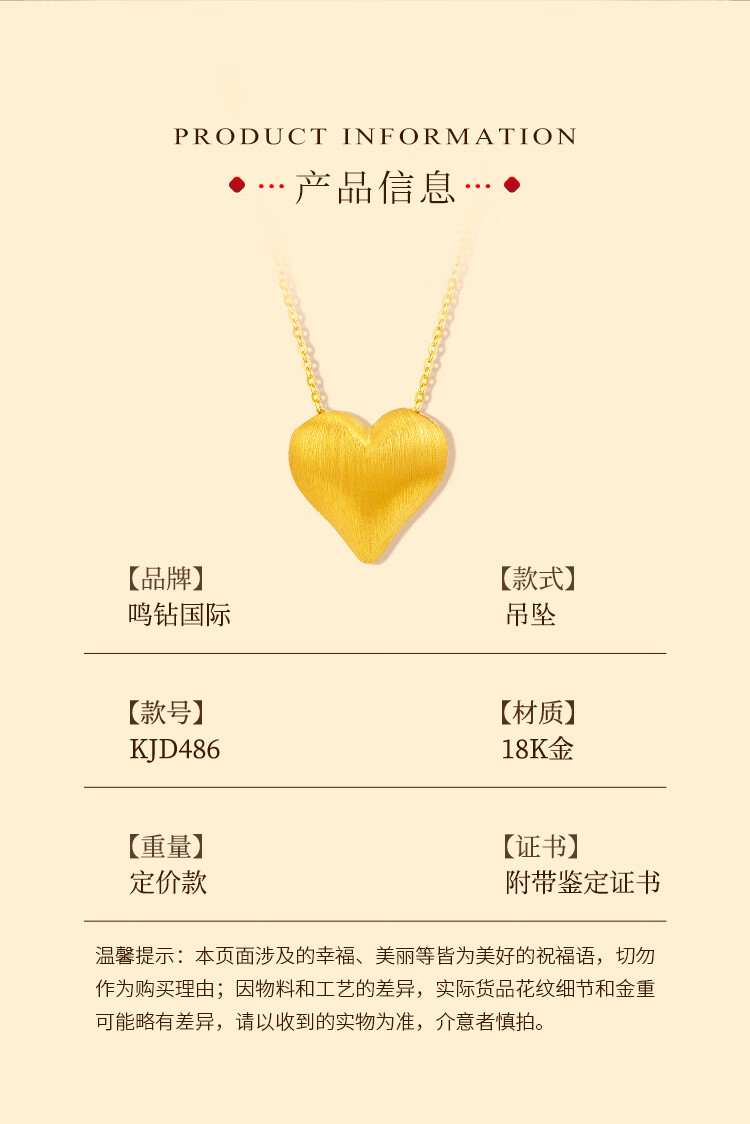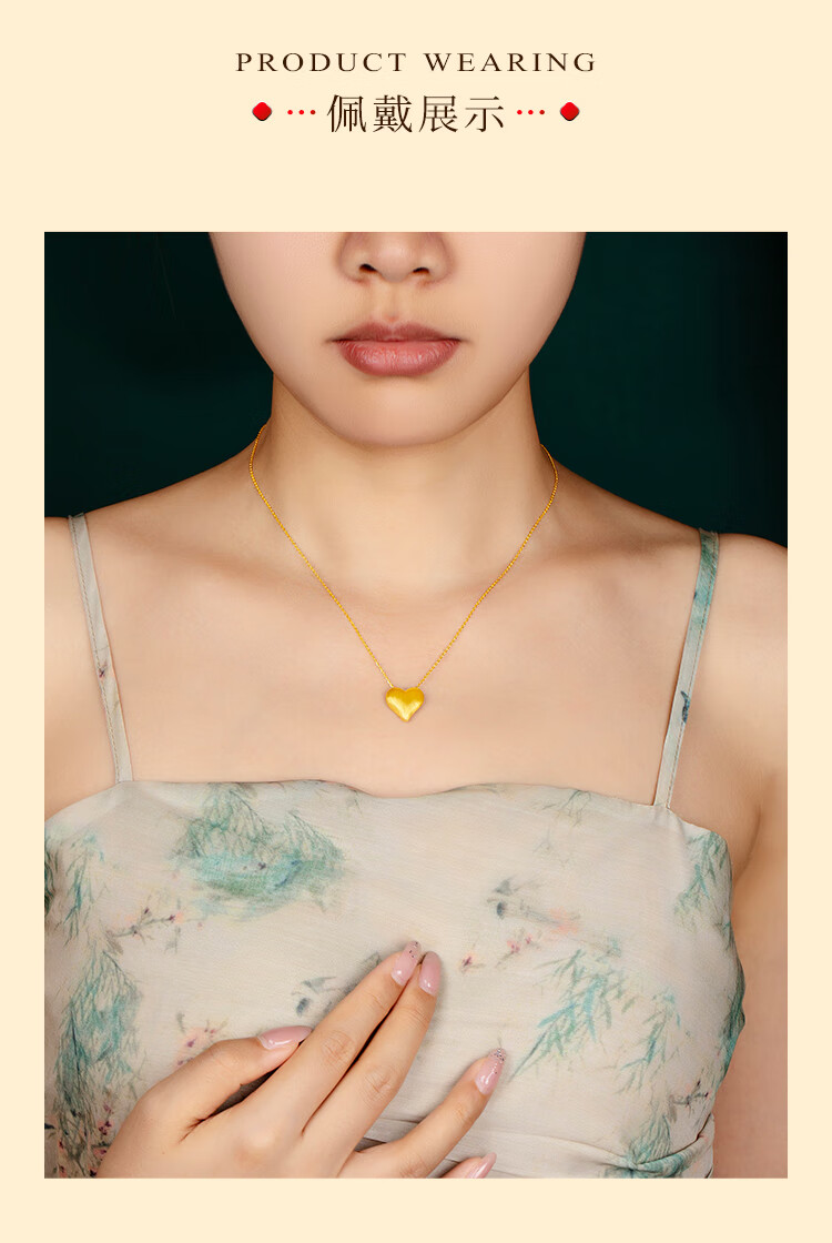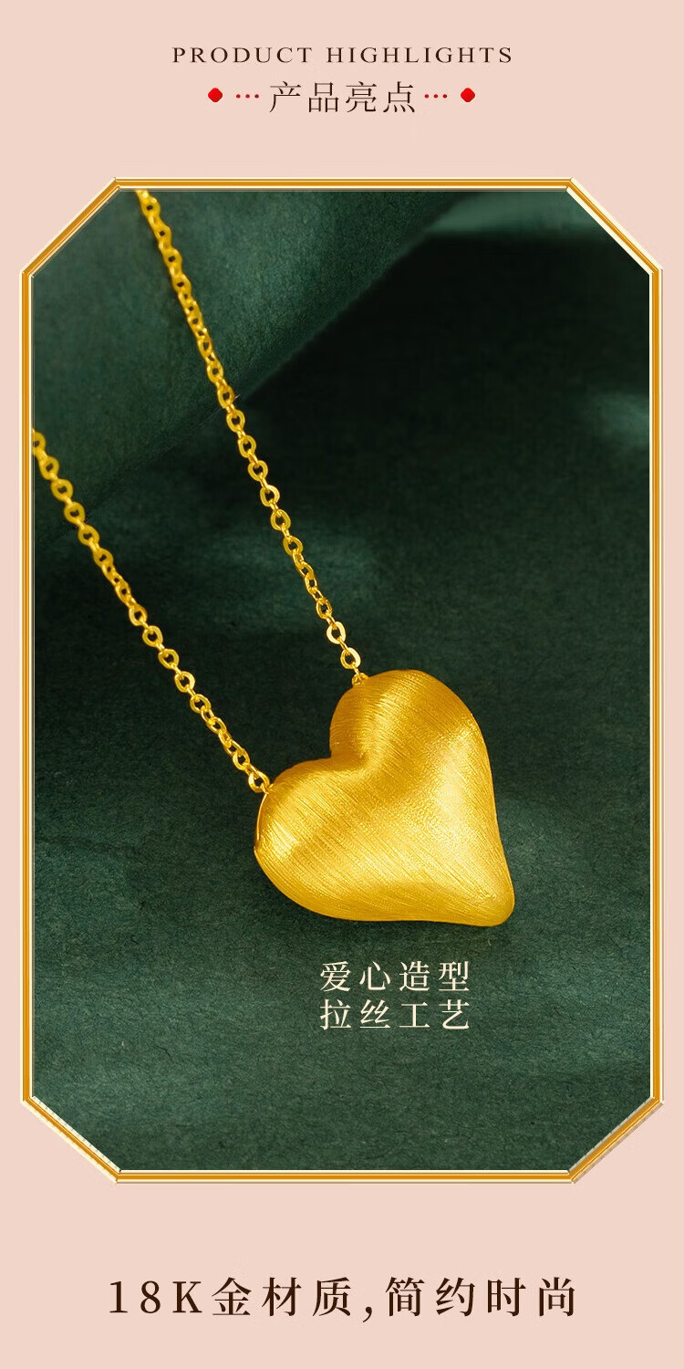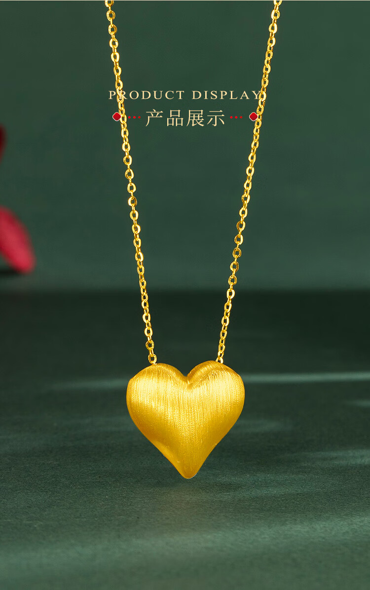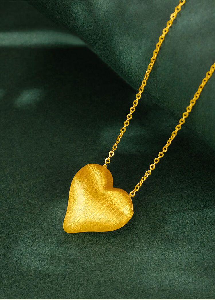Mingzuan International 18K gold brushed love pendant for women, simple, fashionable and sweet heart-shaped neck necklace as a birthday gift for girlfriend