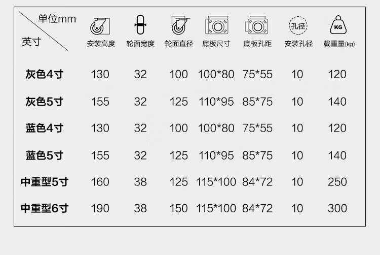 Gulihuang 5-inch rubber universal wheel blue caster trolley trolley special wheel load-bearing wheel load-bearing 280Jin Jin is equal to 0.5kg industrial casters and single wheels