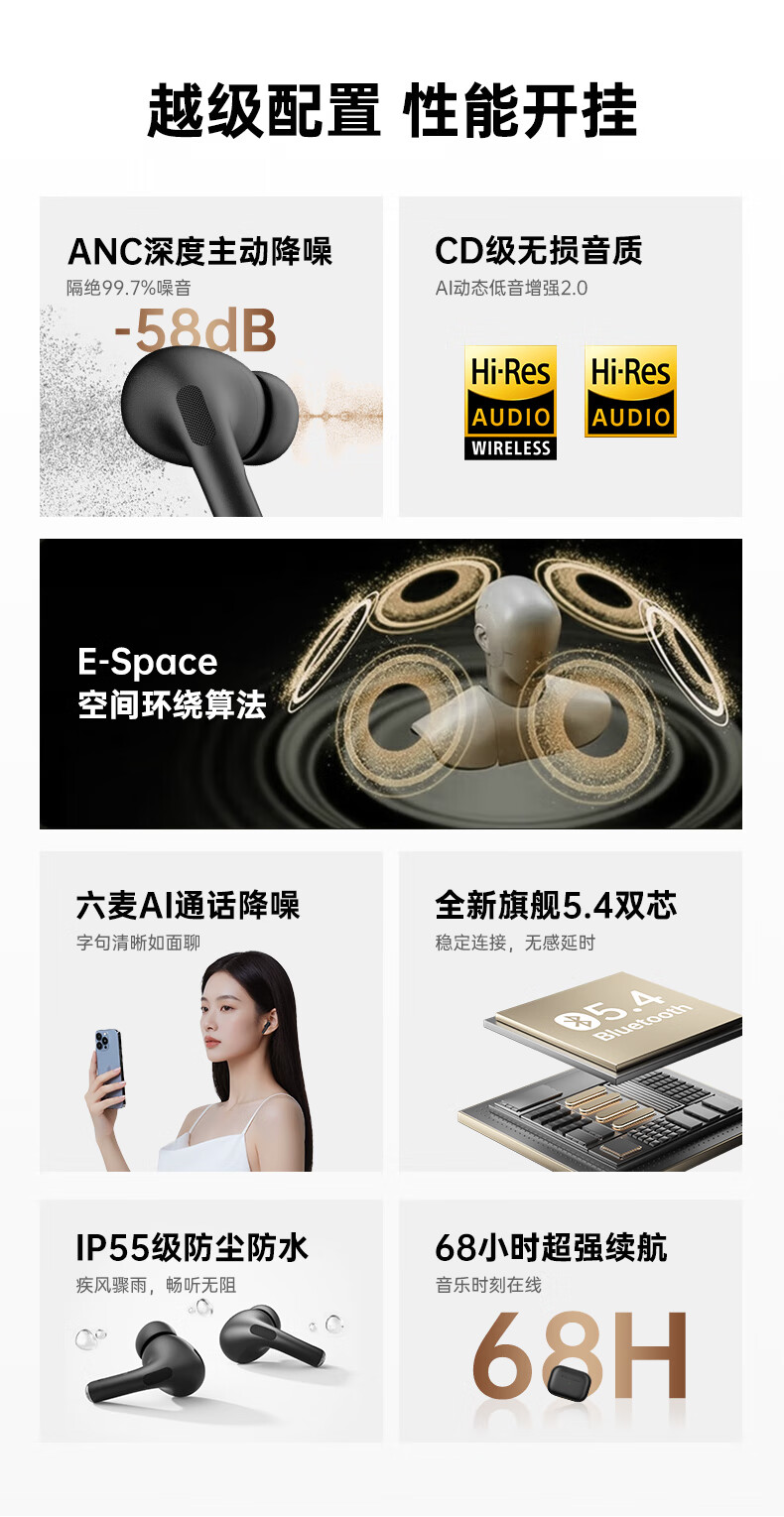 PVF 2025 latest model丨No. 1 Voice of Berlin Noise-cancelling Bluetooth headset in-ear suitable for Sony deep active noise-cancelling headset Bluetooth call ultra-long battery life