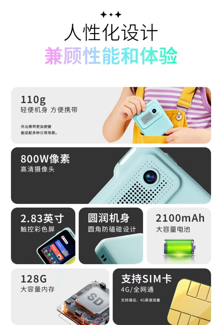 Mozhi Planet AI Outdoor Learning Machine Children's Phone Watch Mobile Phone Conversation Story Machine Camera Learning Machine Accompanying Learning Machine Primary School Word Machine Early Education Toy Polaroid Birthday Gift 128G