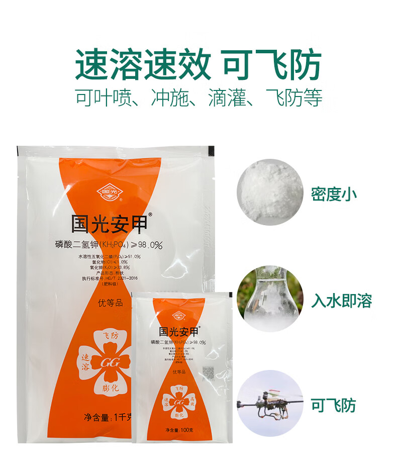 Guoguang Anmethyl Phosphate Dihydrogen Expanded Fly Control Agricultural Phosphorus Potassium Water-Soluble Fertilizer Fruit Tree Vegetable Flower Plant Universal Foliar Fertilizer