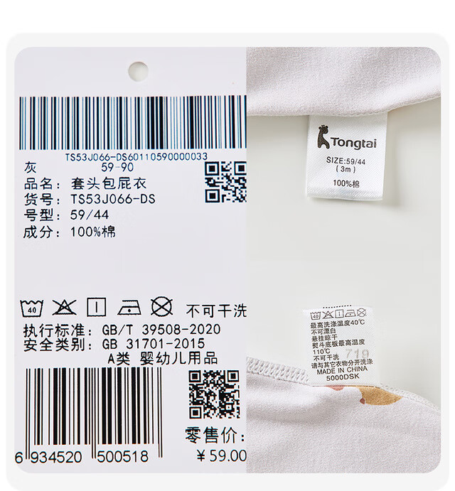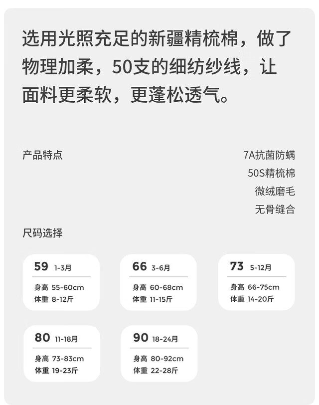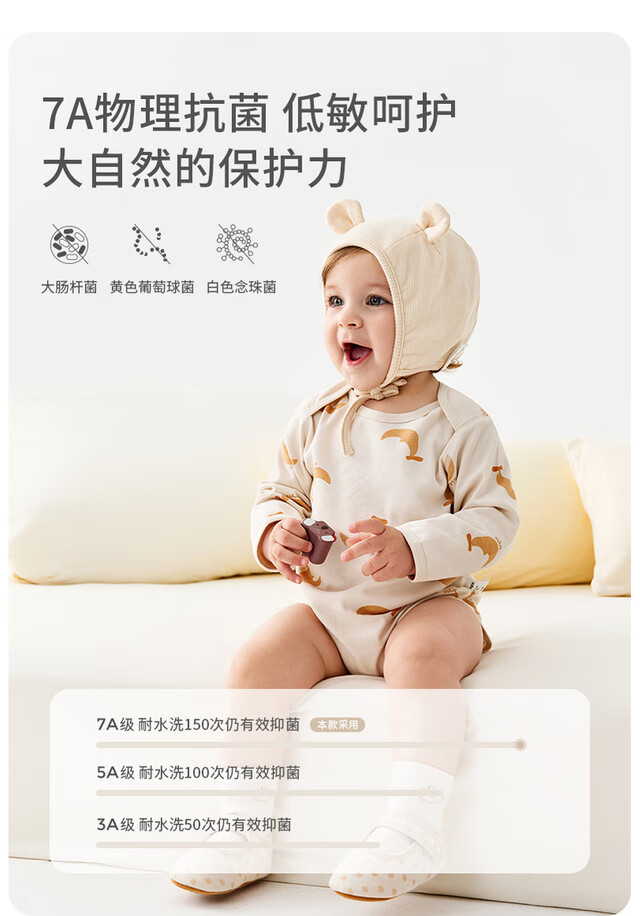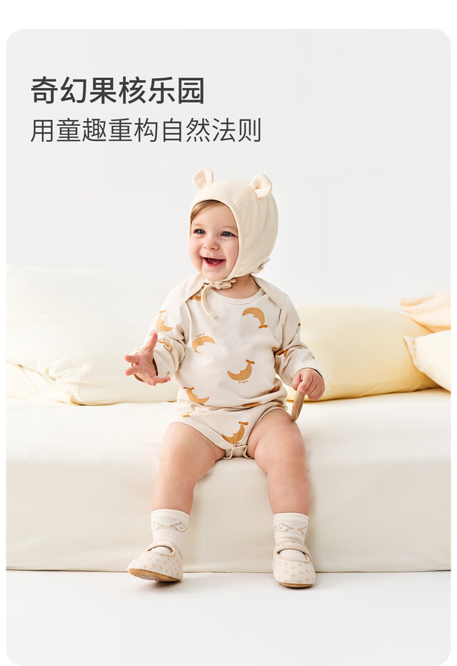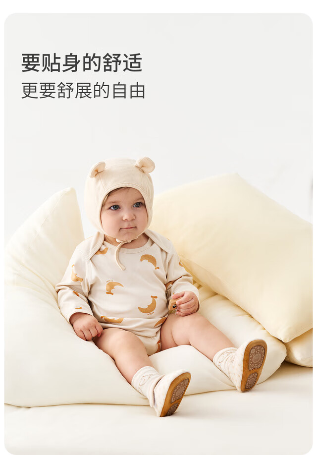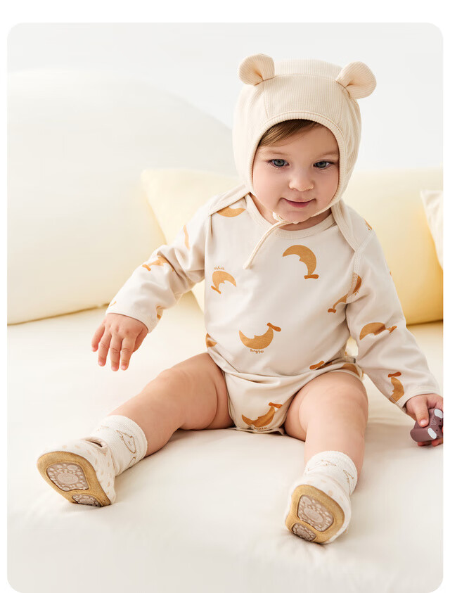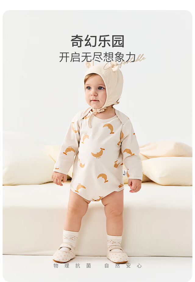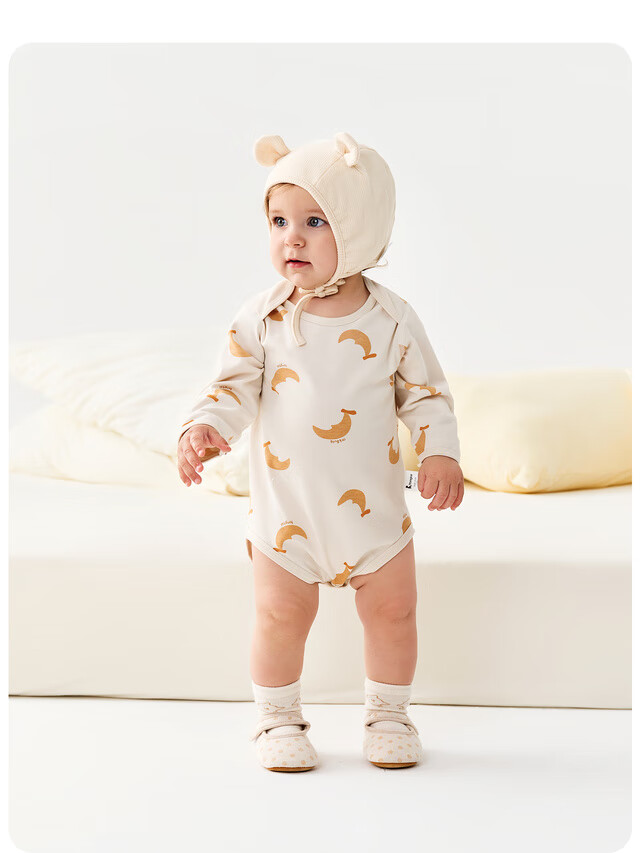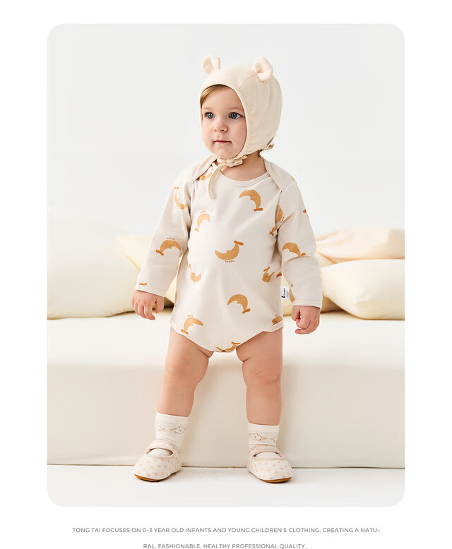 Tongtai (TONGTAI) baby underwear, spring and autumn pure cotton baby jumpsuit, newborn clothes, romper, pajamas, apricot color 73cm