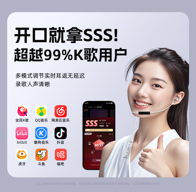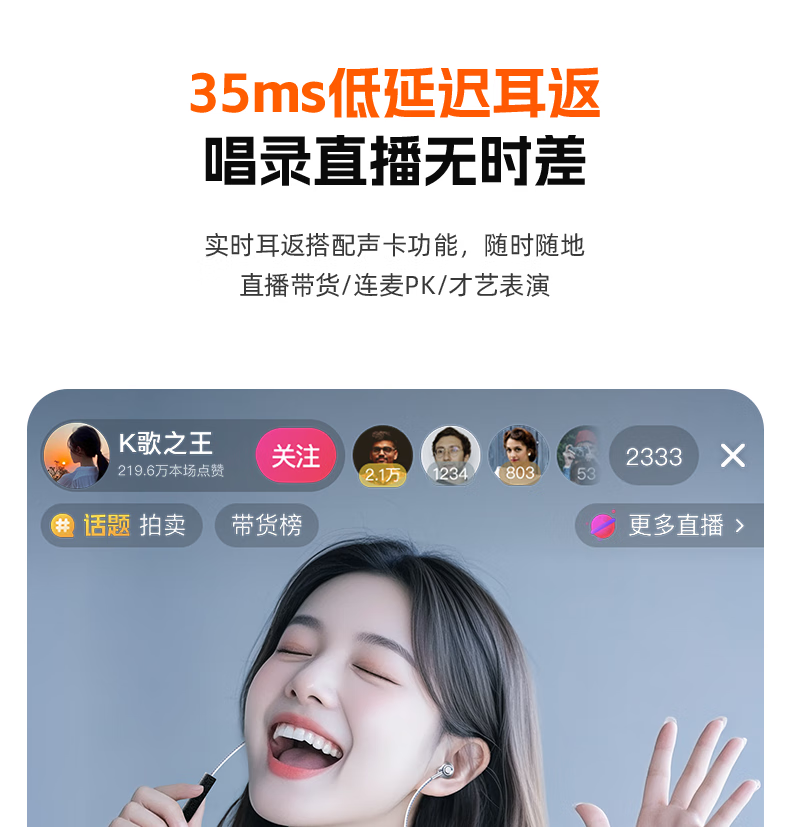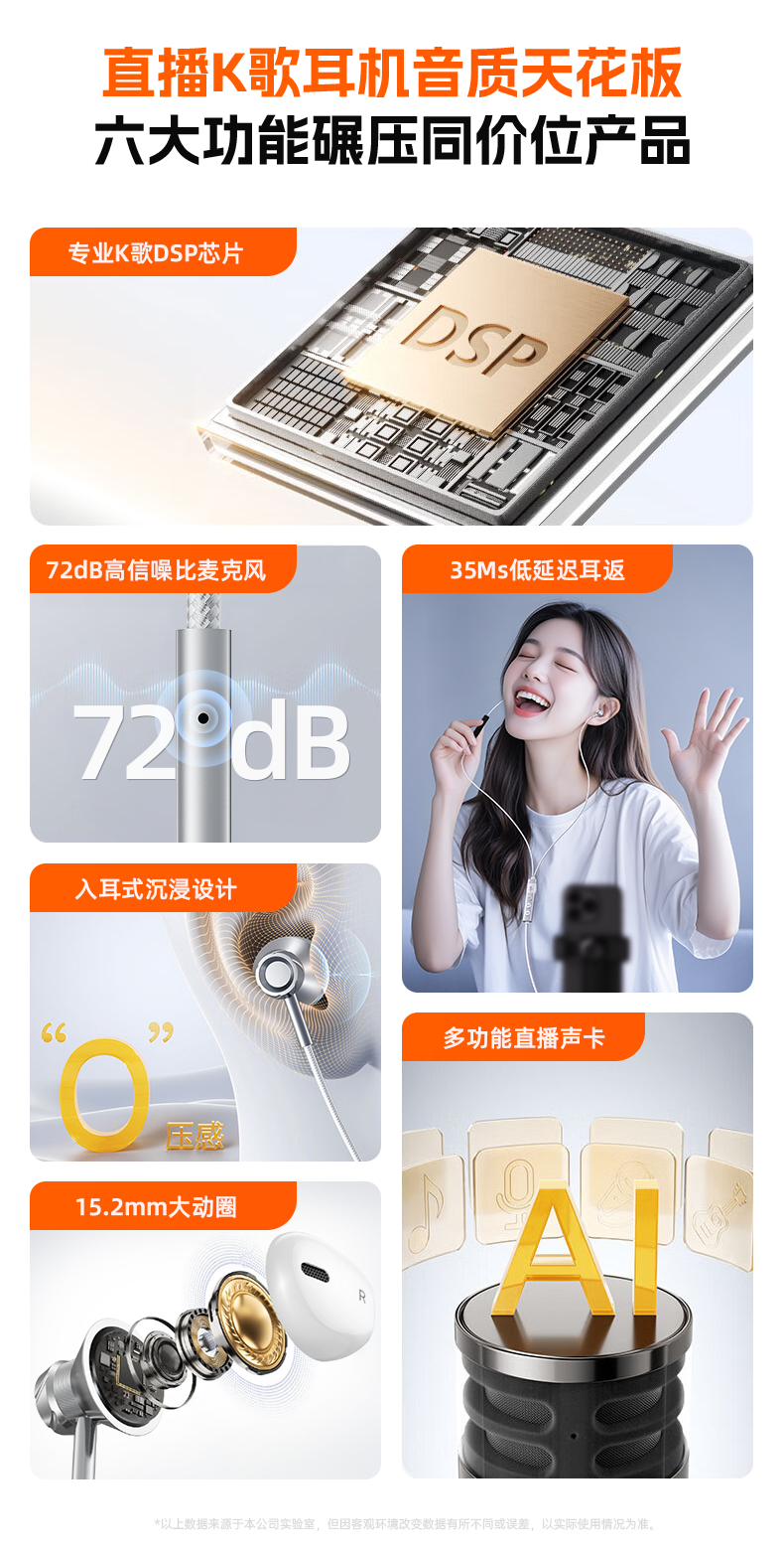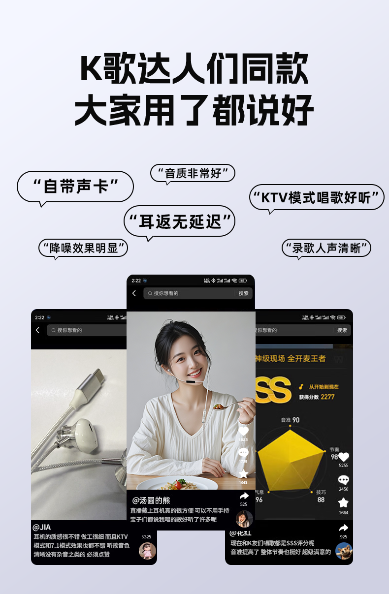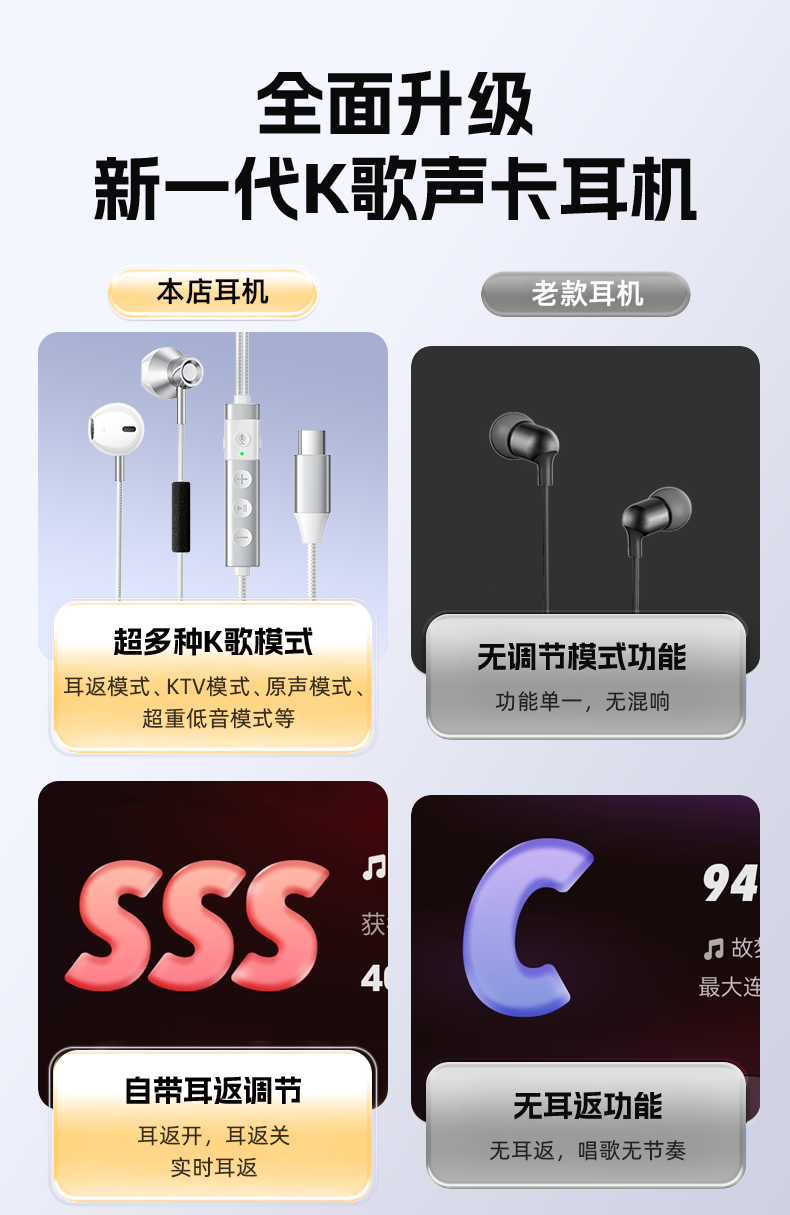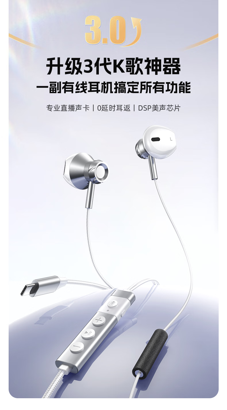 Kevo comes with sound card and ear return, national karaoke dedicated wired headset type-c singing headset, recording song, live broadcast anchor microphone, suitable for Apple 17/16 Huawei